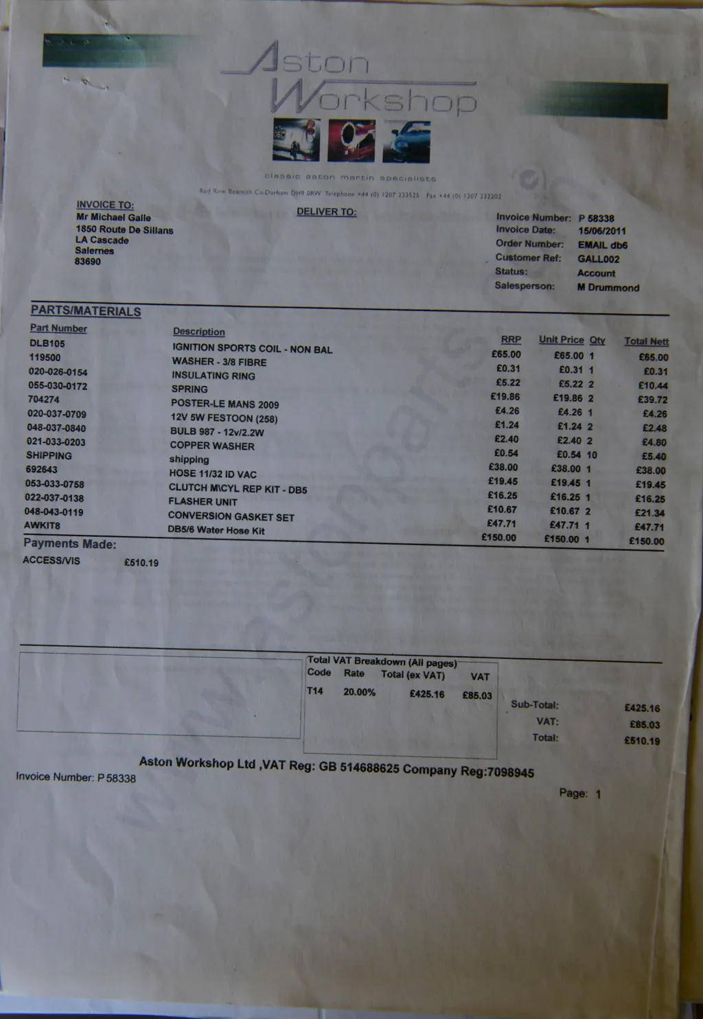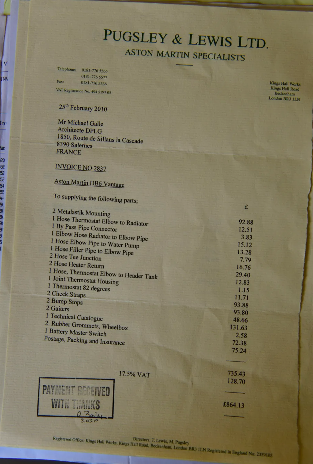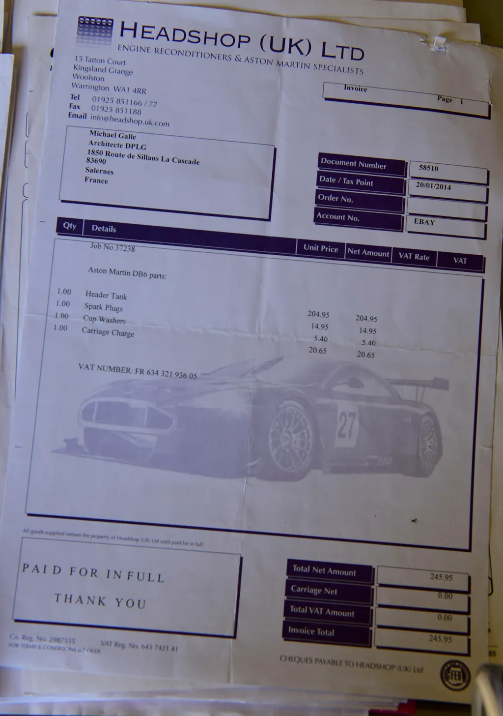 1966 Aston Martin DB6 Vantage RHD Manual Chassis number: DB6/2482/R Registration Number: DE-845-VX (French) Coming soon: New Photographs to follow. Residing with the current French onwer for a decade or so; He has during this time lavished time & money on the car to put it into tip top mechanical condition including a full engine rebuild by a specialist using all the right parts for which bills are on file. The engine is thus fresh & running beautifully with just a few thousand miles on it since the rebuild. THIS DB6 MANUAL Vantage WAS supplied new through HW Motors to Seven Dial Motors. Options: Vantage engine, chrome wheels with White Wall Tyres, HRW, 3.73:1 limited slip diff, Marchal Foglamps Two front seat belts. New car price £3332.0.0. The car has had a recent respray in silver birch so the paint presents beautifully. To the interior is original Black hide to the seats as fitted & supplied from the factory. The leather is in good lightly patinated condition as would be commensurate with the age & mileage indicated at 78,934 At the time of my visit the car was having a new master cylinder fitted so we were unable to take it out for photography. A full set of photographs will follow in due course. The car is is European taxes paid on French Plates & may be viewed by prior appointment not far from Aix En Provence in the south of France. Call Richard Biddulph. Mobile ++44 (0) 7967 260673 Simone Della Corte Mobile ++44 (0) 7377070943 Sales & Valuations Vintage & Prestige of Northampton Ltd. richard@vandp.net www.vandp.net Showroom: 2 Ryehill Ct, Lodge Farm Industrial Estate, Northampton NN5 7UA Viewings & Visits Strictly by appointment only please. We have on site long term storage for over 200 cars with 24 hour security & covered trailer delivery to customers anywhere in Europe.