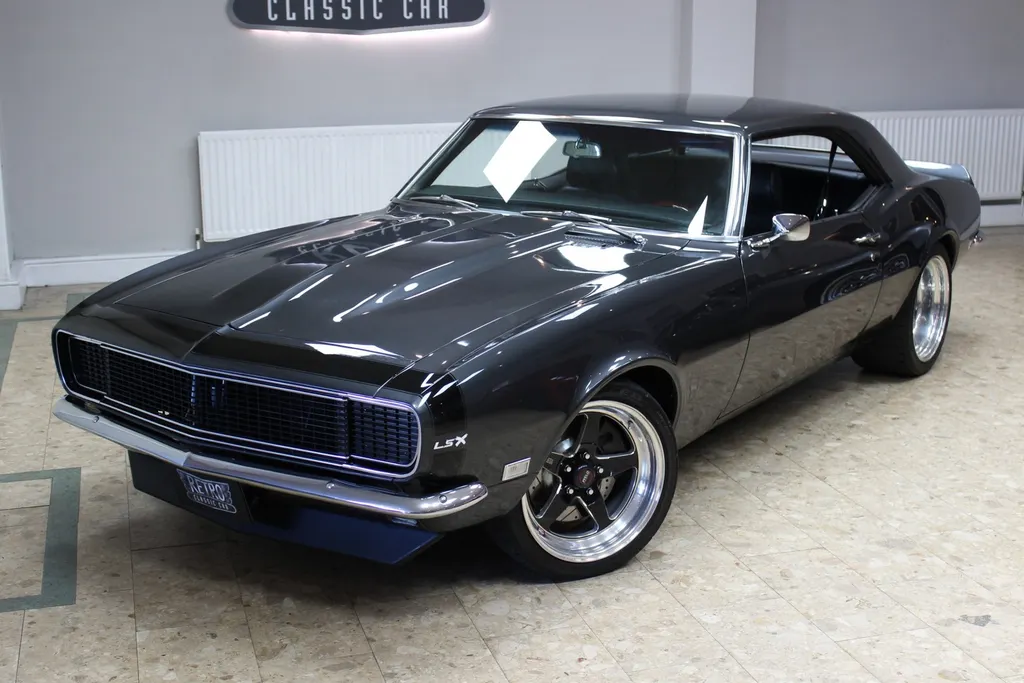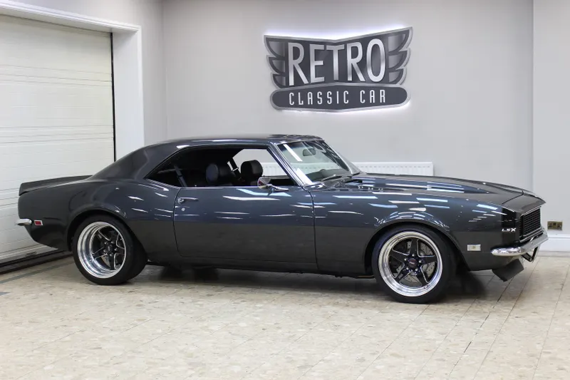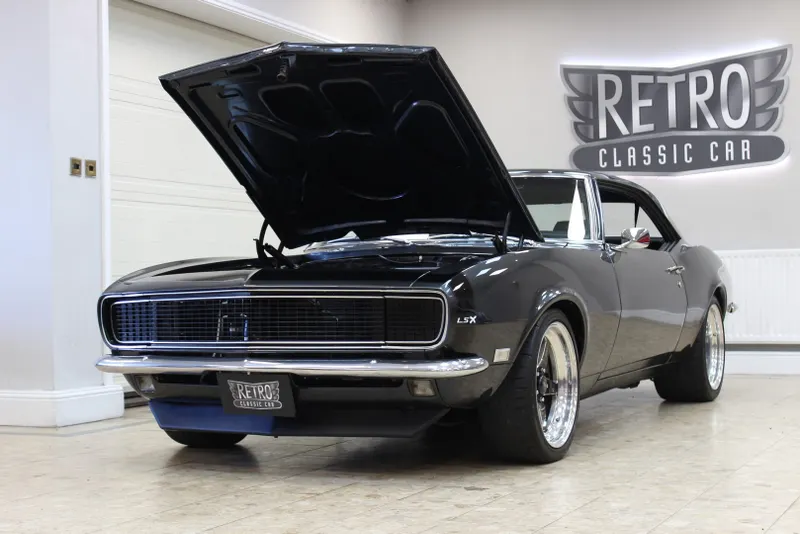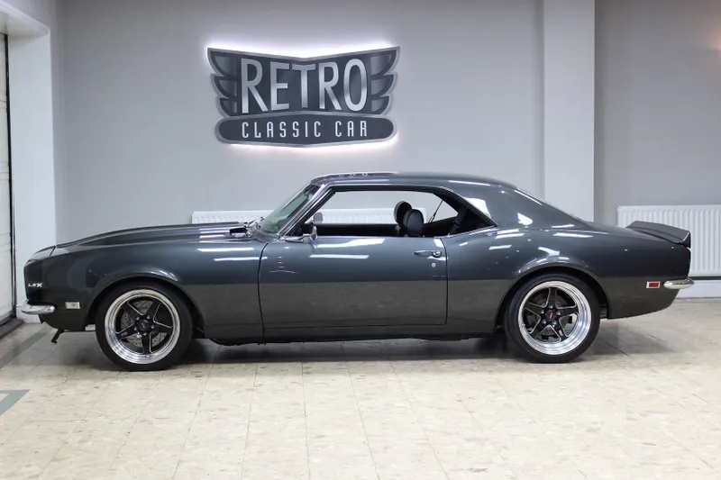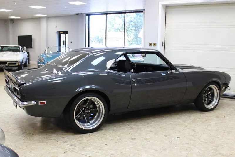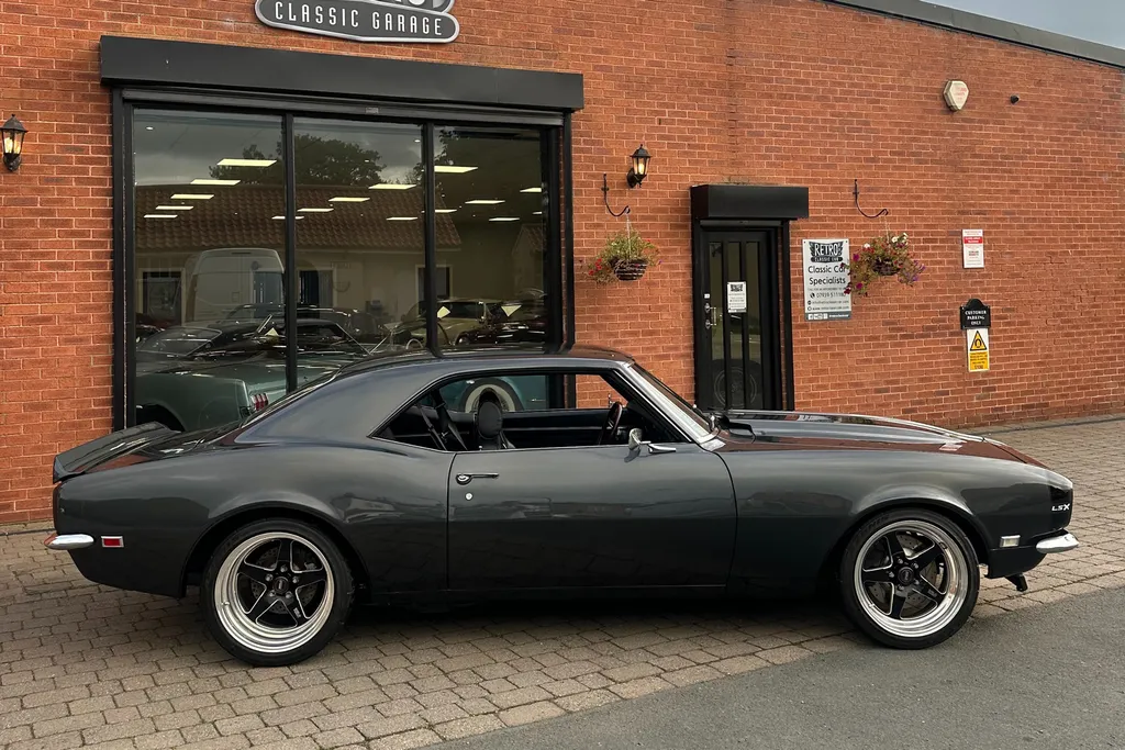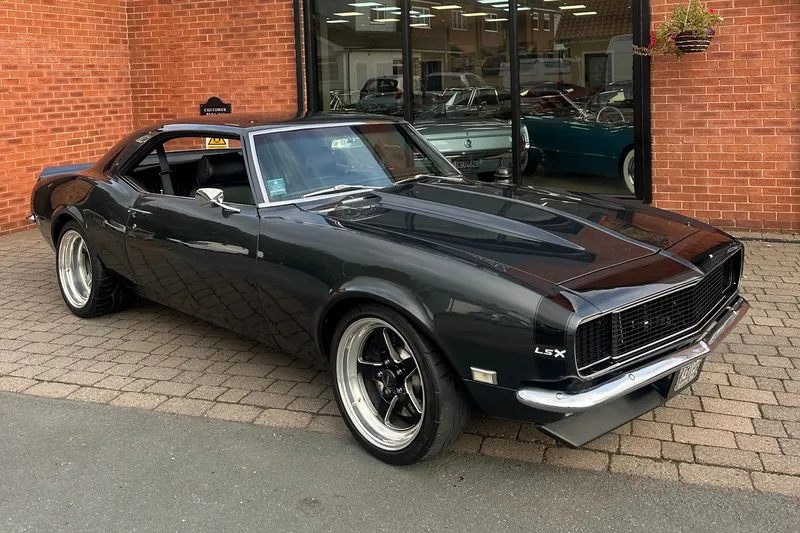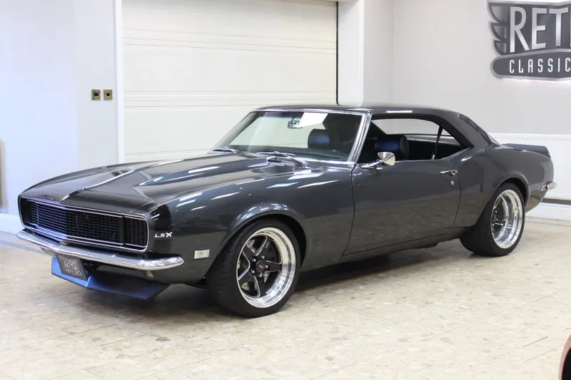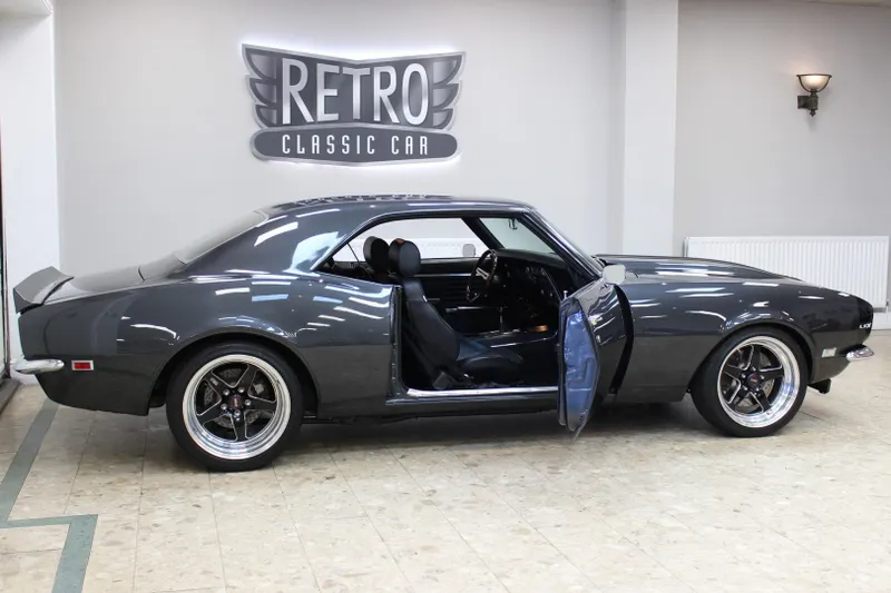 1968 Chevrolet Camaro LS3 6.2 V8 Restomod with 6-Speed manual T56 transmission. Finished in GM Ashen Grey Metallic with black Pro-Touring leather bucket seats and black interior. 18-inch Weld Racing wheels fitted with Falken Azentis RT tyres. This high-end quality restoration build was completed in the US and first registered here in March 25 showing just the one UK owner. Built to give this very special Camaro Restomod the benefits of a high-performance and more modern driving experience yet still retaining its fundamental Classic lines and impression. The specifications are as follows: 500 horsepower GM 6.2L LS3 Fast LSX-R 102 Intake Manifold Manual 6-Speed T56 Eagle Connecting Rods Eagle Forged Steel Crankshaft Diamond Forged Steel Crankshaft King XP High Performance Rod Bearings King XP High Performance Main Bearings ARP 2000 Rod Bolts 24 Tooth Reluctor Four Link Suspension System LED Halo Headlights LED Tail Lights Drilled & Slotted Rotor Disc Brakes all round Genuine Weld Racing Wheels Custom Centre Console Dakota® Gauges Vintage Air° Air Conditioning RetroSound® Bluetooth® Radio TMI trunk kit Fully adjustable coil-over suspension Panhard Rod Limited Slip Differential Presenting in stunning order and a truly one-off example of a first-generation Camaro you will just love to keep driving. A Camaro Restomod unlikely to be seen again in the UK, compared to similar high quality examples for sale in the States, we believe this Camaro presents a unique and outstanding opportunity. Whether you’re based in the UK or Europe, this iconic American classic offers great value. Please contact Adrian or Sam to book an appointment to view at our North Yorkshire showroom. Showroom Appointment’s | Our Showroom is open by appointment only – Please contact us before traveling to confirm the car you are interested in is still available and to make arrangements to have the showroom open.