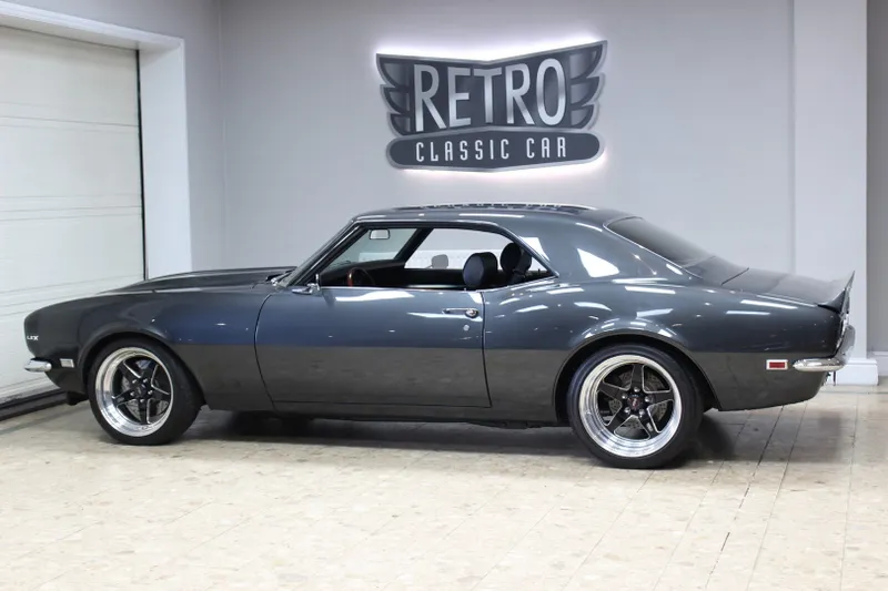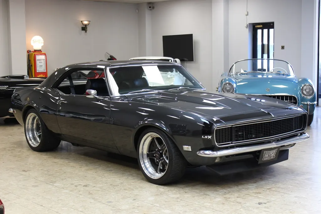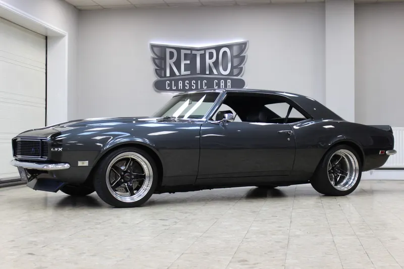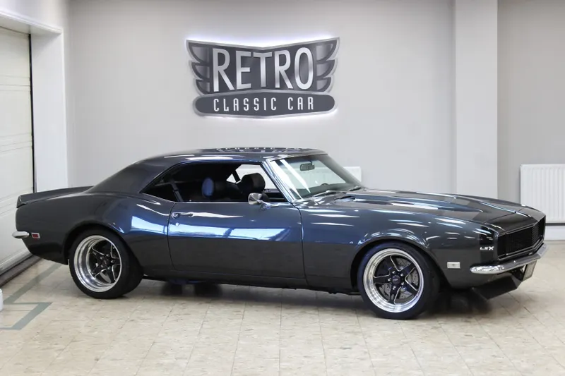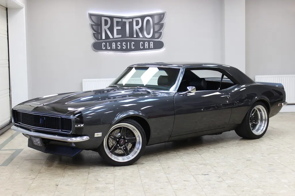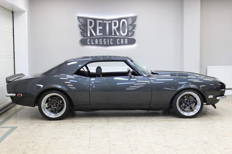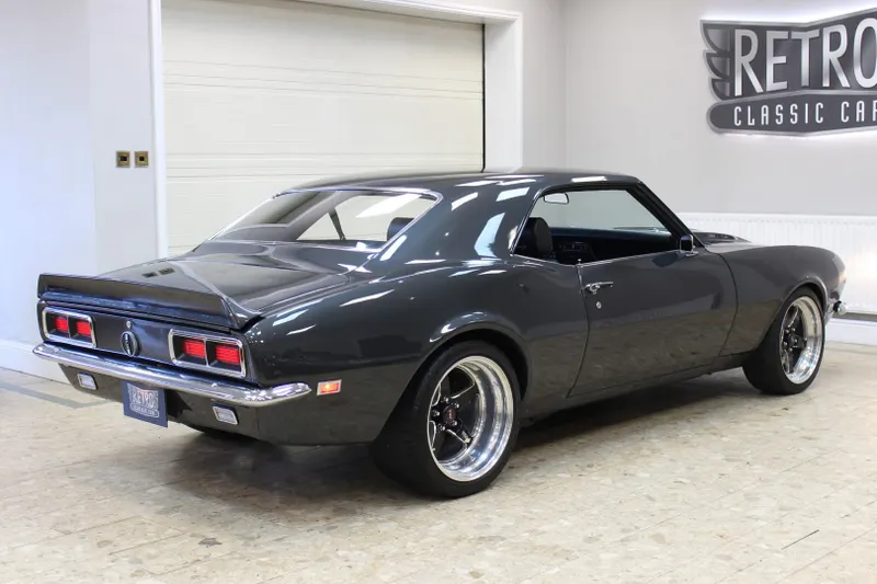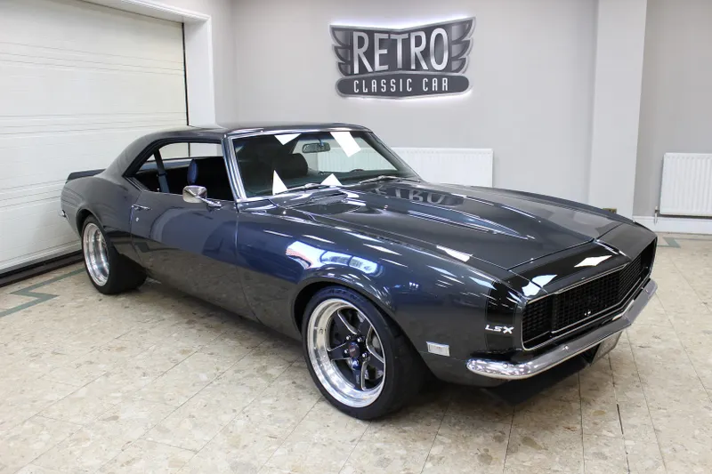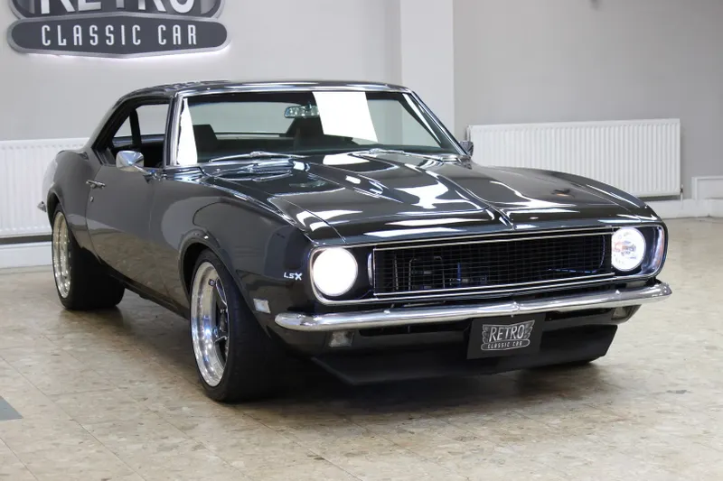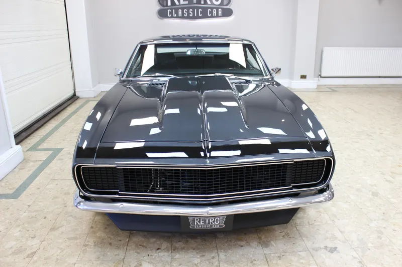 1968 Chevrolet Camaro LS3 6.2 V8 Restomod with 6-Speed manual T56 transmission. Finished in GM Ashen Grey Metallic with black Pro-Touring leather bucket seats and black interior. 18-inch Weld Racing wheels fitted with Falken Azentis RT tyres. This high-end quality restoration build was completed in the US and first registered here in March 25 showing just the one UK owner. Built to give this very special Camaro Restomod the benefits of a high-performance and more modern driving experience yet still retaining its fundamental Classic lines and impression. The specifications are as follows: 500 horsepower GM 6.2L LS3 Fast LSX-R 102 Intake Manifold Manual 6-Speed T56 Eagle Connecting Rods Eagle Forged Steel Crankshaft Diamond Forged Steel Crankshaft King XP High Performance Rod Bearings King XP High Performance Main Bearings ARP 2000 Rod Bolts 24 Tooth Reluctor Four Link Suspension System LED Halo Headlights LED Tail Lights Drilled & Slotted Rotor Disc Brakes all round Genuine Weld Racing Wheels Custom Centre Console Dakota® Gauges Vintage Air° Air Conditioning RetroSound® Bluetooth® Radio TMI trunk kit Fully adjustable coil-over suspension Panhard Rod Limited Slip Differential Presenting in stunning order and a truly one-off example of a first-generation Camaro you will just love to keep driving. A Camaro Restomod unlikely to be seen again in the UK, compared to similar high quality examples for sale in the States, we believe this Camaro presents a unique and outstanding opportunity. Whether you’re based in the UK or Europe, this iconic American classic offers great value. Please contact Adrian or Sam to book an appointment to view at our North Yorkshire showroom. Showroom Appointment’s | Our Showroom is open by appointment only – Please contact us before traveling to confirm the car you are interested in is still available and to make arrangements to have the showroom open.
