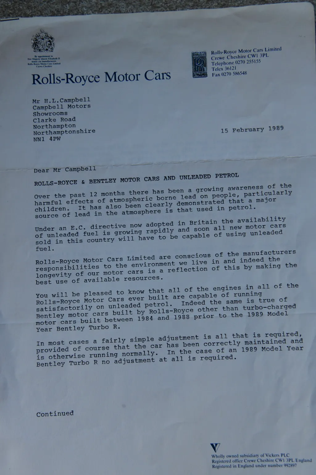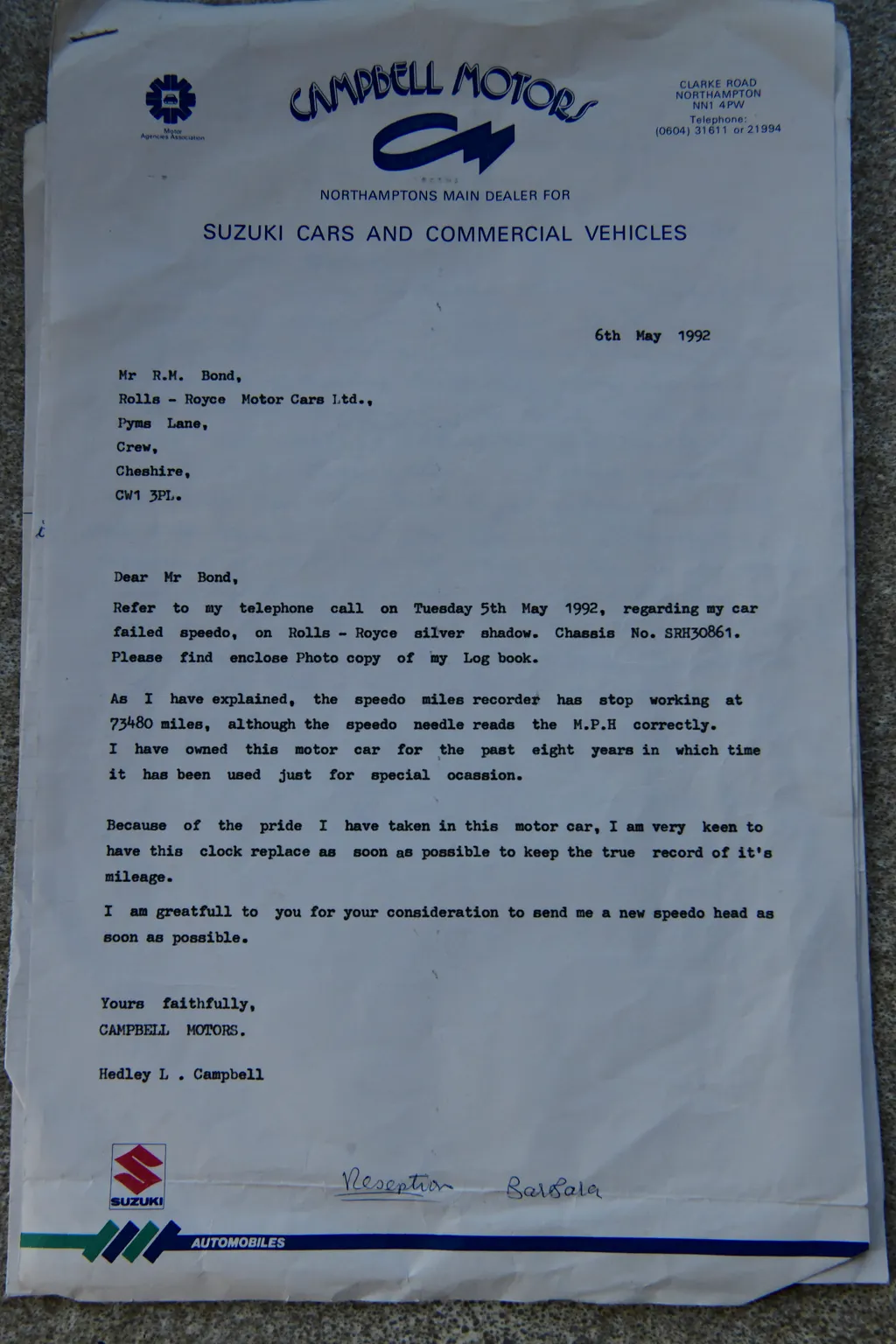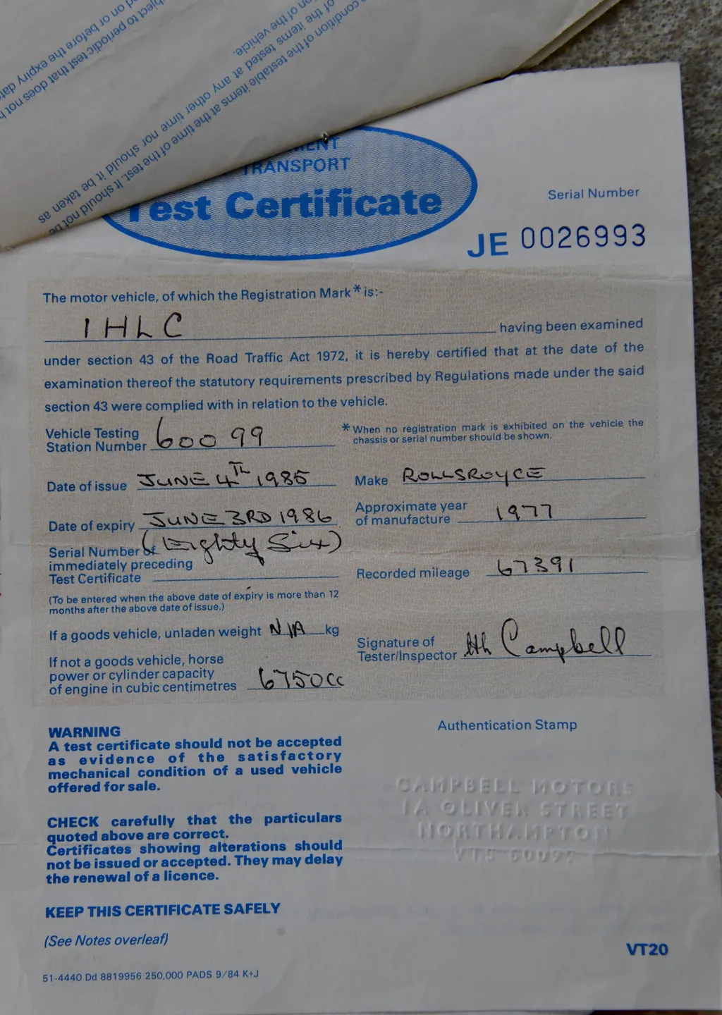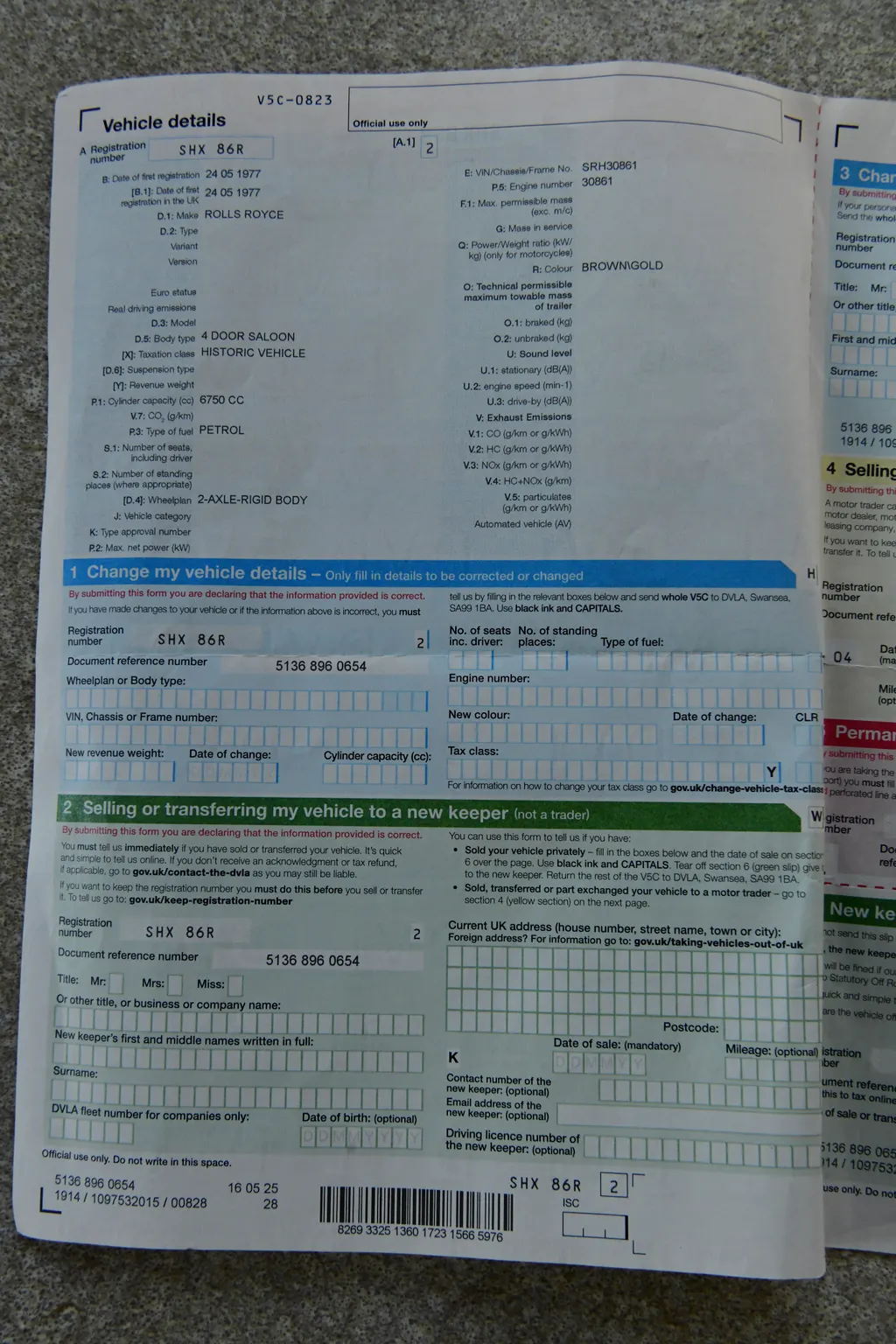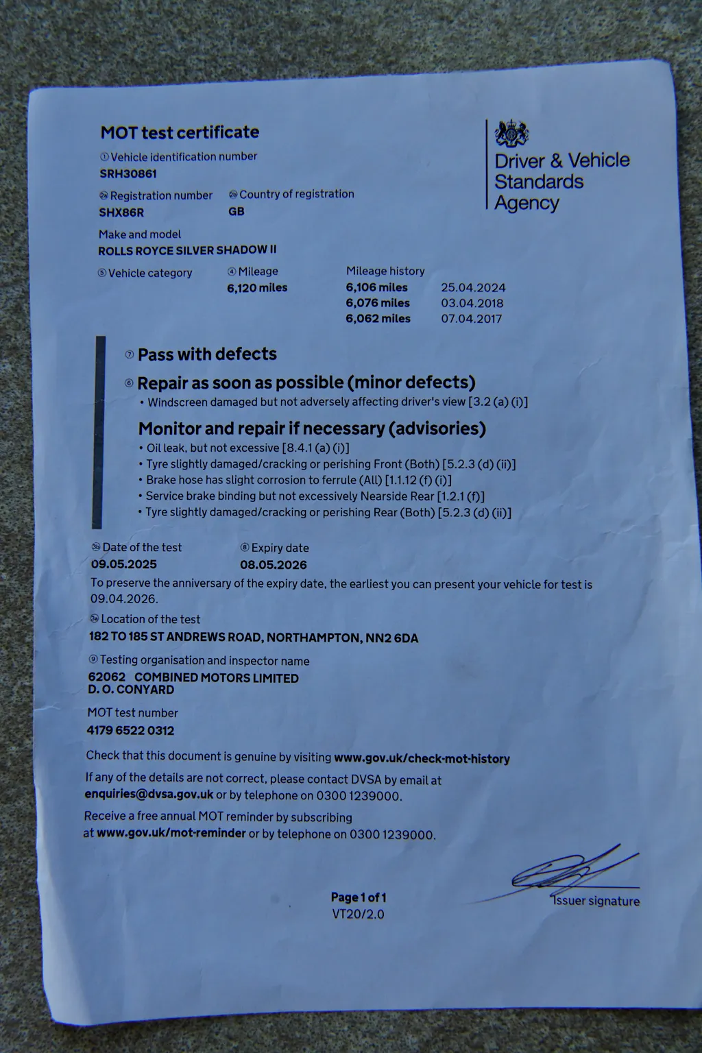 1977 Rolls Royce Silver Shadow 2 Chassis Number: SRH30861 Registration Number: SHX86R Purchased by the current octogenarian owner; a car main dealer, in 1984 when the car was just 7 years old. He used the car very sparingly putting on less then 10,000 miles during his decades long ownership & having the car serviced as required at his main dealer premises in Northampton. The car comes with its original operators manual & books & papers. This Silver Shadow has covered 78,000 miles from new with a speedometer head change at 72,000 miles fully documented with correspondence from Rolls Royce who also performed an unleaded fuel conversion upon the car. An unbroken chain of MOT certificates comes with the car warranting the mileage to be correct. A modern Kenwood sound sytem is fount in the centre Console. The car has been painted once some years ago & had a few minor touch-ups done in the intervening years so it presents very well. The bottom part of the car is metallic sand with chestnut brown to the roof; a combination that suits the car admirably. To the interior is champagne leather in good order thoughout. The car is currently away having a full valet including a deep clean of the interior leather & carpets. We will rephotograph it once it is back. The dashboard woodwork is in generally good order with just a couple of minor cracks in the Lacquer. This is a car that presents very well for its age & also drives beautifully. The engine is silent & powerful allied to seamless gear changes from the GM automatic gear box. It has an MOT though 2026 which it passed with minor advisories for assorted small items. It may be viewed by prior appointment in Northampton where it has resided since 7 years old. Call Richard Biddulph. Mobile ++44 (0) 7967 260673 Simone Della Corte Mobile ++44 (0) 7377070943 Sales & Valuations Vintage & Prestige of Northampton Ltd. richard@vandp.net www.vandp.net Showroom: 2 Ryehill Ct, Lodge Farm Industrial Estate, Northampton NN5 7UA Viewings & Visits Strictly by appointment only please. We have on site long term storage for over 200 cars with 24 hour security & covered trailer delivery to customers anywhere in Europe.