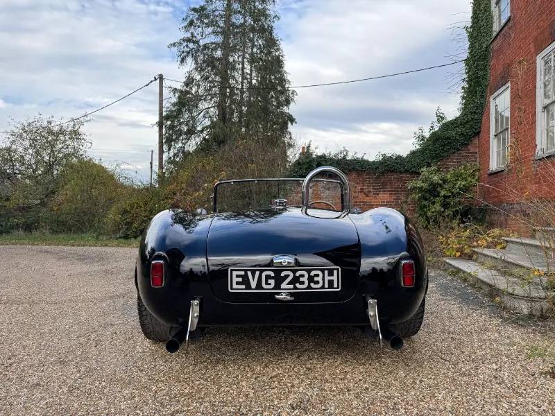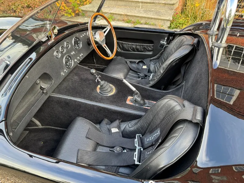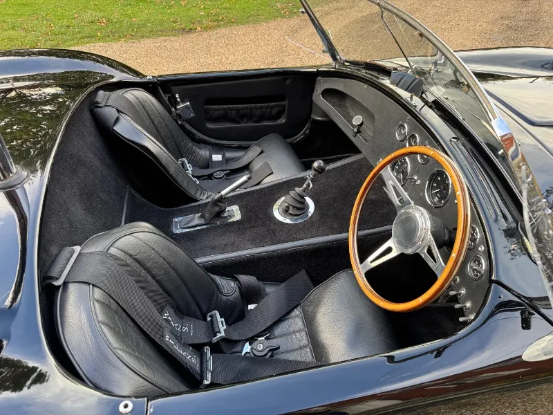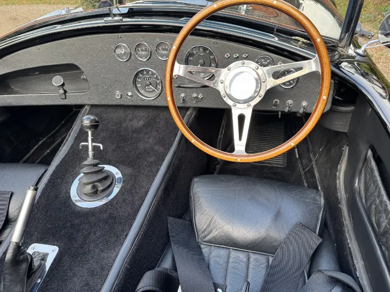 RAM SC Cobra This Classic RAM SC Cobra is correctly registered 01/07/1996 Retains Historic Vehicle status / Tax Exempt Only 7342 Recorded miles Removable colour coded Lemans style hardtop Finished in stunning Black coachwork Detailed with stainless steel lifter jacks, Cobra badges, P700 Headlamps, Chrome mirrors, Polished aluminium stone guards, Single hoop chrome roll bar, Chrome flip top fuel filler, Lucas rear tail lamps, etc. 15” Centreline alloy wheels in black Classic black leather with black carpets, Flat style dashboard with classic Smiths instruments and Lucas switches, Type 1 indicator, Moto-lita wood rim steering wheel, Black Willans harness seat belts Heated front and rear screens ! Powered by a 350ci 5700cc Chevrolet V8 engine Spec includes Edelbrock finned air filter, 4 Barrel Holley carb, Edelbrock performance inlet manifold, Tubular headers, Fame thrower ignition system, Polished MickyThompson rocker covers, etc Under floor exhaust system. 5 Speed Tremec manual gear box. Coil over shock adjustable suspension Jaguar differential and brakes Reynard backbone RAM chassis Wet weather Hood and Tonneau cover as well as the removable Hardtop. Detailed history file Maintained by Thunder Road cars £42995