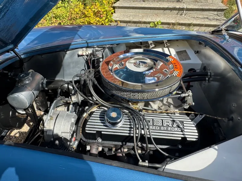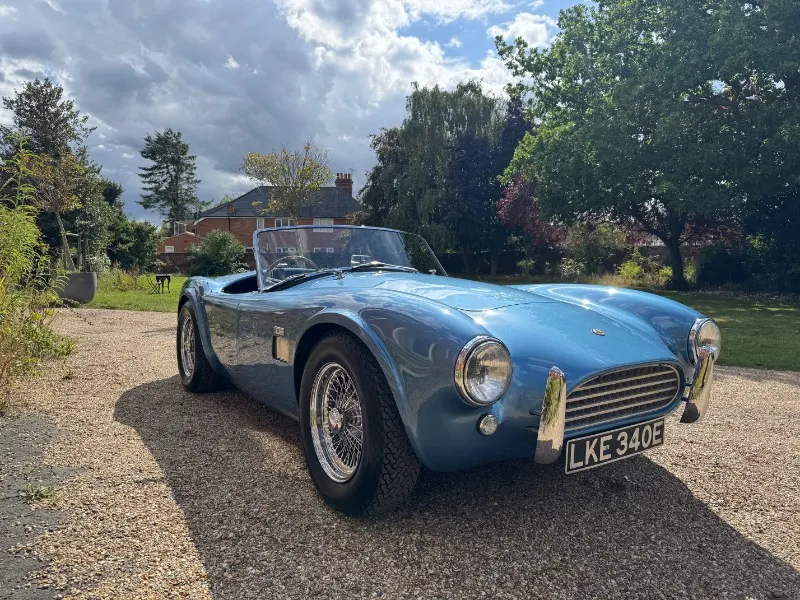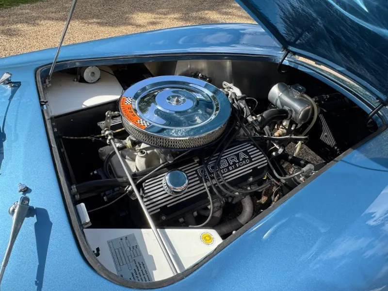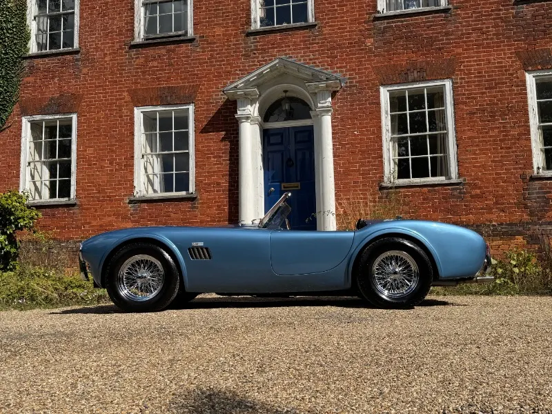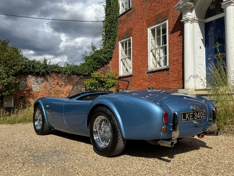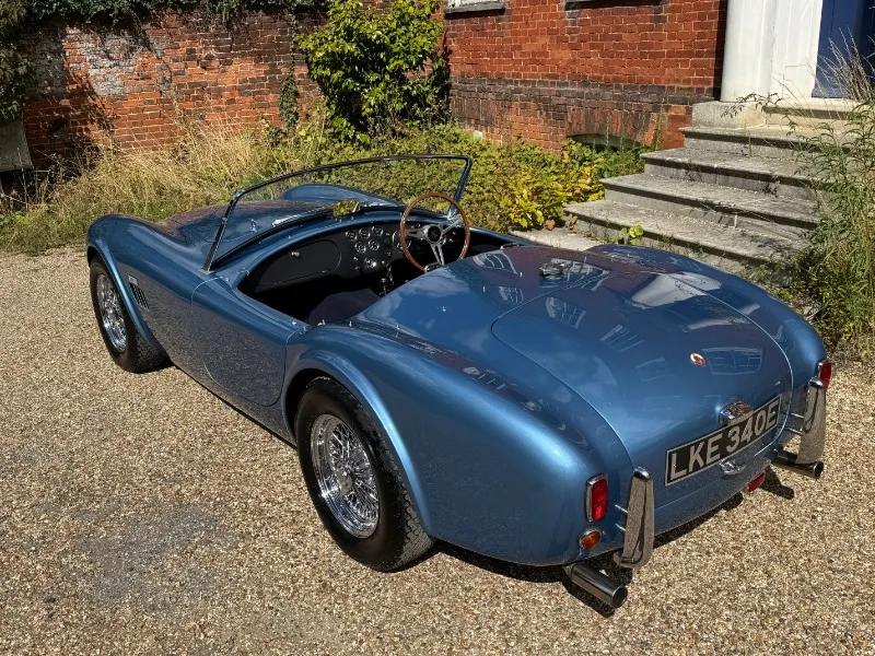 289 COBRA BY HAWK “Ford 289ci V8” This beautiful Cobra was factory built by HAWK Cars Correctly SVA/IVA Registered 01/05/2018 Shows as ULEZ Free 11577 recorded miles Finished in superb unmarked Guardsman blue coachwork Detailed with chrome over riders, Chrome headlamps, Clear indicators, Aluminium grill, Cobra badges, Aluminium side vents, Stainless steel wipers, Chrome fuel filler, Lucas rear tail lamps. 15” Knock on Chrome wire wheels with period look Brockley tyres Black leather seats, Period correct dashboard and Smiths instrument layout , Type 1 indicator, Wood rim steering wheel, Correct style Cobra gear lever, Chrome hand brake, Heater etc Powered by a 1966 Ford 289ci 4700cc V8 supplied by HAWK Spec includes Chrome air filter, Holley performance 4 barrel carburettor , Edelbrock Performance inlet manifold, “Cobra Powered by Ford’ rocker covers, Tubular exhaust headers, Electronic ignition, Aluminium radiator etc Stainless steel under floor exhaust system Tremec 5 speed manual T5 gear box Front Hawk tubular wishbones with coil over shock adjustable suspension. Uprated HAWK front brake callipers with servo assistance. MGC Rear Axle with LSD , Panhard rods and tie bars, adjustable dampers Stainless steel petrol tank history file includes build photographs, Hawk invoices, Engine dyno print out, SVA/IVA certificate £59995