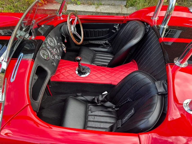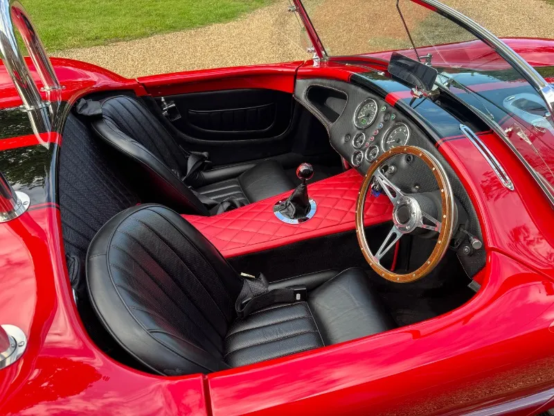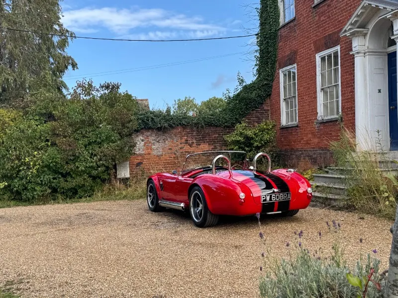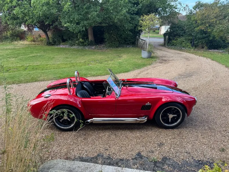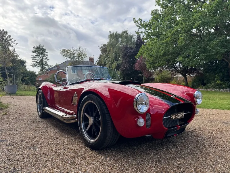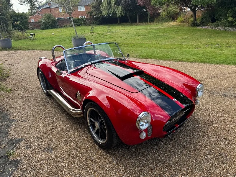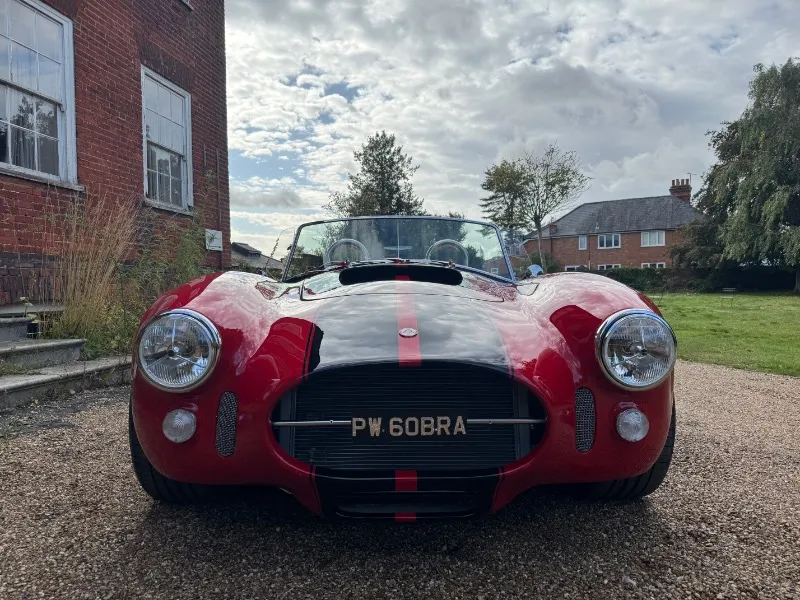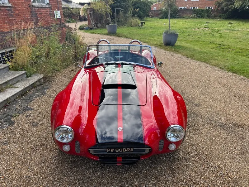 Cobra by AK Sportcars, Gen 3 Superlight chassis, LS3 V8. This absolutely stunning Cobra by AK Sportscars has the latest Generation 3 Superlight Chassis and was Correctly SVA/IVA registered 01/01/2018 . Only 1396 recorded miles Finished in beautiful Racing red coachwork with black lemans stripes . Detailed with P700 Headlamps , Clear indicators all around, Cobra badges, Triple stainless steel wipers, Chrome mirrors, Wind deflectors, Twin single hoop stainless steel roll bars, Large polished aluminium Aston fuel filler inset into the rear wing, Internal boot hinges etc 17” American vintage replica Hallibrand alloy wheels with Shelby aluminium faux spinners Continental tyres . 4 into 1 Stainless steel side pipes . High quality black perforated leather with red stitching, Red leather diamond stitched Transmition top , Leather rear bulkhead, Black luxury carpets, Smiths flight instruments, Chrome ended indication stalks , Wood-rim steering wheel, Bespoke gear knob (Black with red Shelby stripes) Willans harness seat belts, 12Volt power socket, Heater, Immobiliser etc . Hydraulic power steering . Powered by a Chevrolet LS3 6200cc V8 Supplied new by Roadcraft, 430bhp spec, OMEX tuneable ECU, Performance air filter, Silicone hoses, Stainless steel header tank, Aluminium radiator etc. Tremec 5 speed manual gear box . Battery cut off in boot Latest Generation 3 Superlight chassis by AK Sportcars. Number plate PW 60BRA included A superb condition super fast Cobra £59995