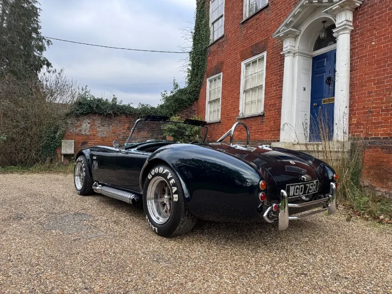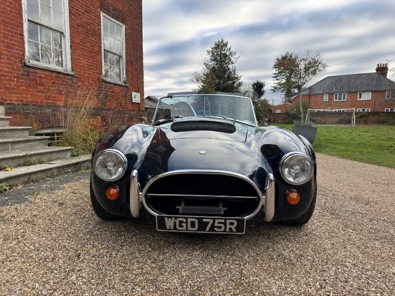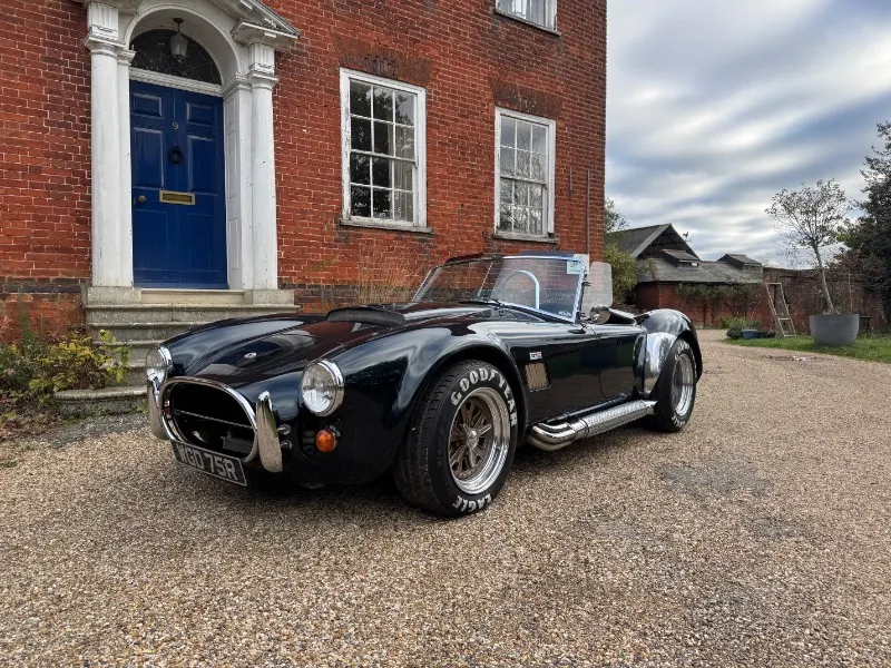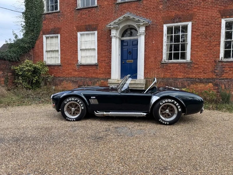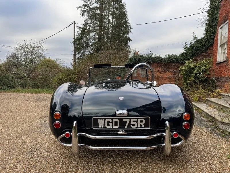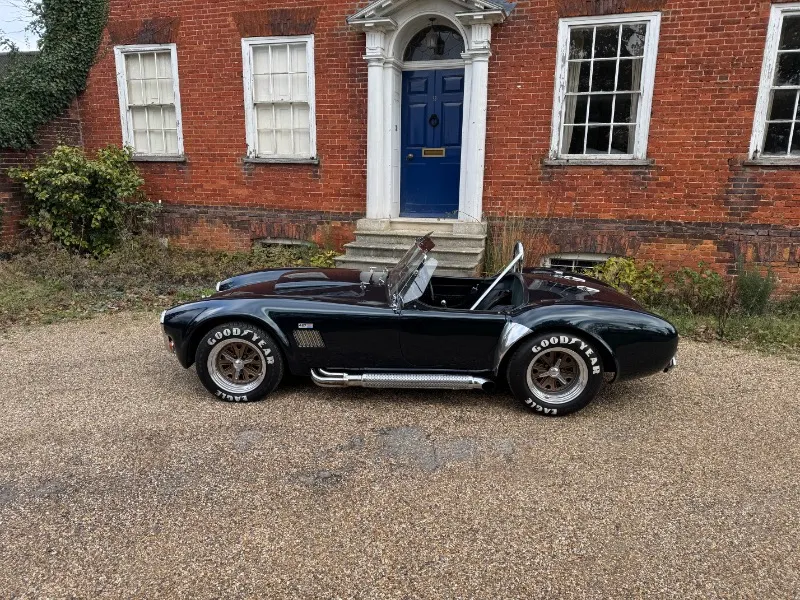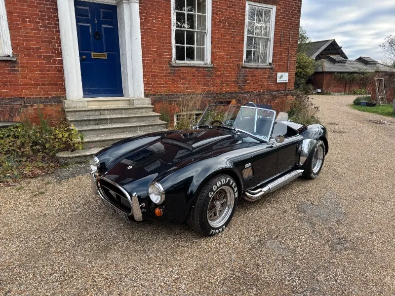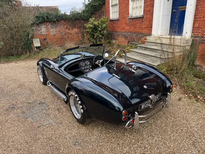 DAX Cobra This stunning Cobra is correctly registered 02/03/1977 Retaining Historic Vehicle status/Tax exempt Finished in stunning deep green metallic (Almost Black) Only 13658 Recorded miles Detailed with Chrome bumpers, Chrome headlamps, Stainless steel splitter in front nose cone, Cobra badges, Stainless steel wipers, Chrome mirrors, Wind deflectors, Smoked sun visors, Polished aluminium stone guards , chrome three leg roll bar , Chrome flip top classic fuel filler etc Chrome 4 into 1 side pipes with heat shields . 15” Hallibarnd alloy wheels with faux aluminium spinners Classic Black leather with dark green piping, Contrasting luxury green leather bound carpet set, Classic SW Instruments, Lucas switches, Leather Moto-lita steering wheel, Cobra gear knob, Willans Harness seat belts, immobiliser, Heater, etc Powered by a 5700cc 350ci Chevrolet V8, Spec includes Edelbrock finned air filter with performance element , Holley 4 barrel carburettor , Performance inlet manifold, Polished aluminium rocker covers , Tubular stainless steel exhaust headers, Mallory distributer , Aluminium pulleys, etc Coil over shock adjustable suspension Jaguar brakes and differential Tojiero DAX chassis Battery cut off switch Full wet weather Hood, Side screens and Tonneau cover in black mohair. A superb classic DAX Cobra £41000