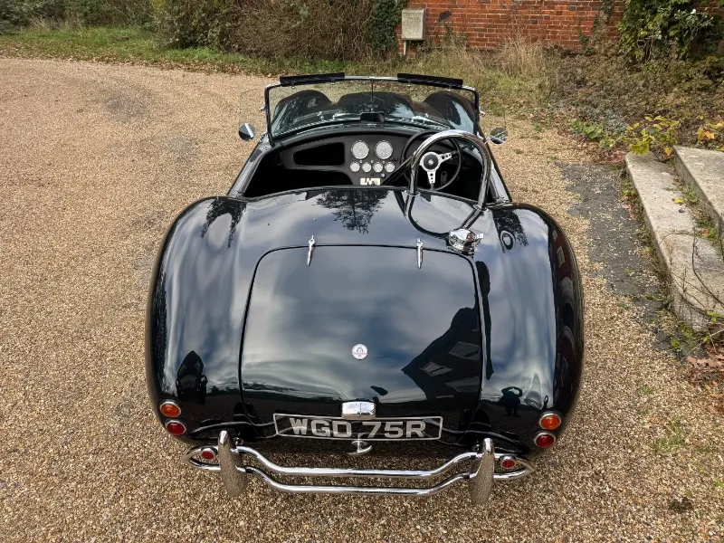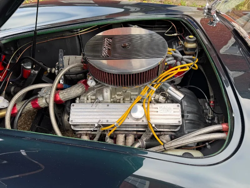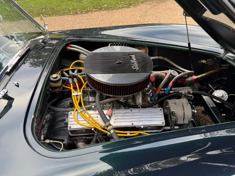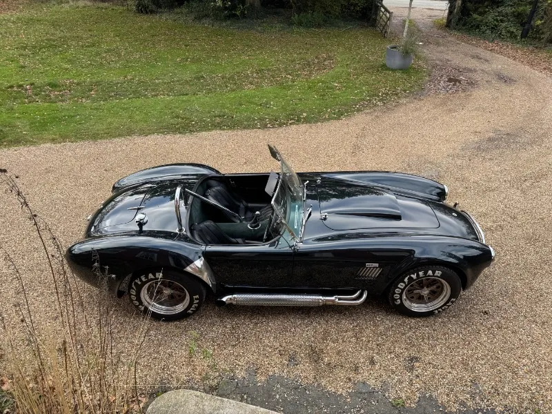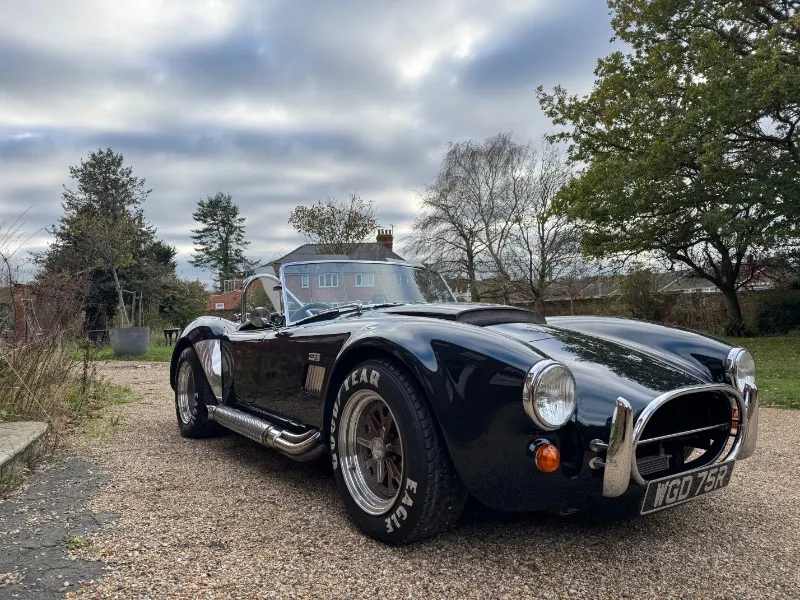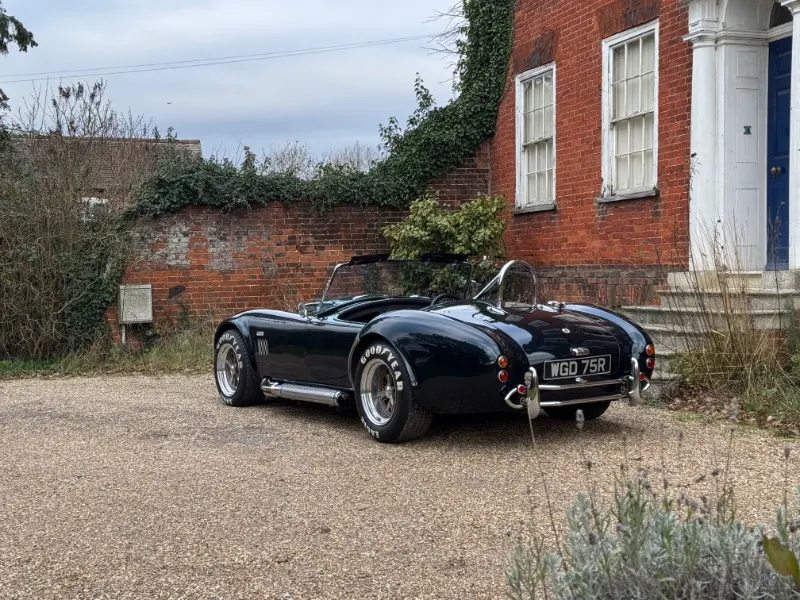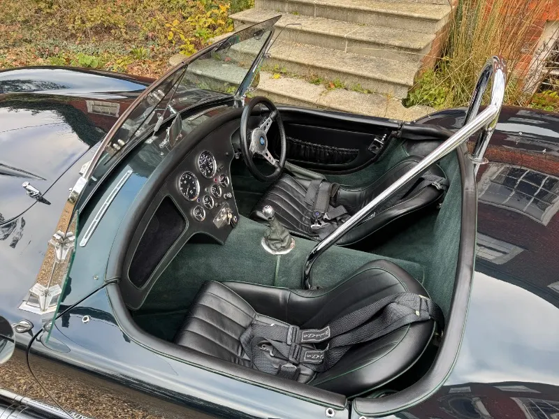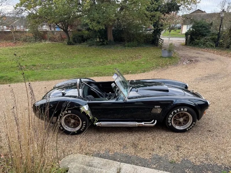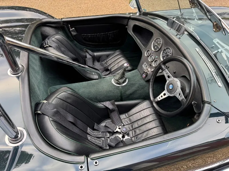 DAX Cobra This stunning Cobra is correctly registered 02/03/1977 Retaining Historic Vehicle status/Tax exempt Finished in stunning deep green metallic (Almost Black) Only 13658 Recorded miles Detailed with Chrome bumpers, Chrome headlamps, Stainless steel splitter in front nose cone, Cobra badges, Stainless steel wipers, Chrome mirrors, Wind deflectors, Smoked sun visors, Polished aluminium stone guards , chrome three leg roll bar , Chrome flip top classic fuel filler etc Chrome 4 into 1 side pipes with heat shields . 15” Hallibarnd alloy wheels with faux aluminium spinners Classic Black leather with dark green piping, Contrasting luxury green leather bound carpet set, Classic SW Instruments, Lucas switches, Leather Moto-lita steering wheel, Cobra gear knob, Willans Harness seat belts, immobiliser, Heater, etc Powered by a 5700cc 350ci Chevrolet V8, Spec includes Edelbrock finned air filter with performance element , Holley 4 barrel carburettor , Performance inlet manifold, Polished aluminium rocker covers , Tubular stainless steel exhaust headers, Mallory distributer , Aluminium pulleys, etc Coil over shock adjustable suspension Jaguar brakes and differential Tojiero DAX chassis Battery cut off switch Full wet weather Hood, Side screens and Tonneau cover in black mohair. A superb classic DAX Cobra £41000