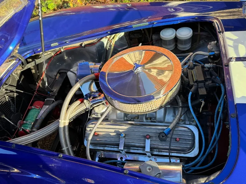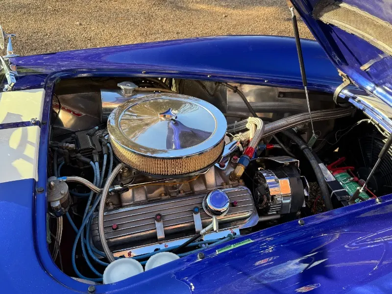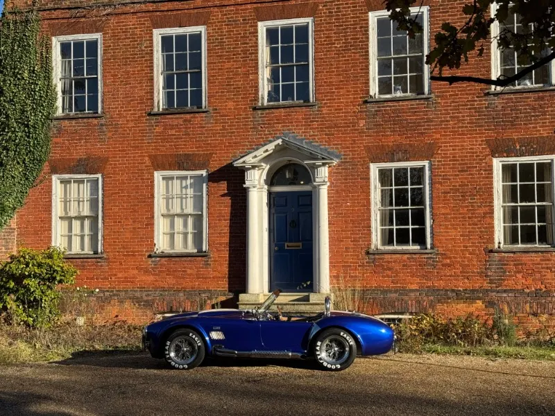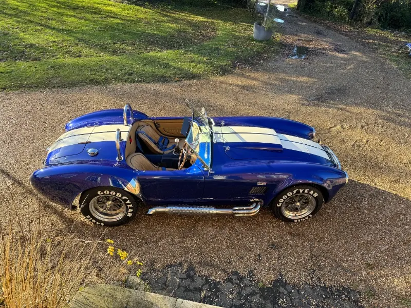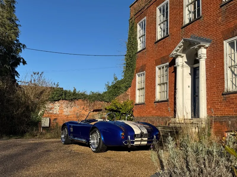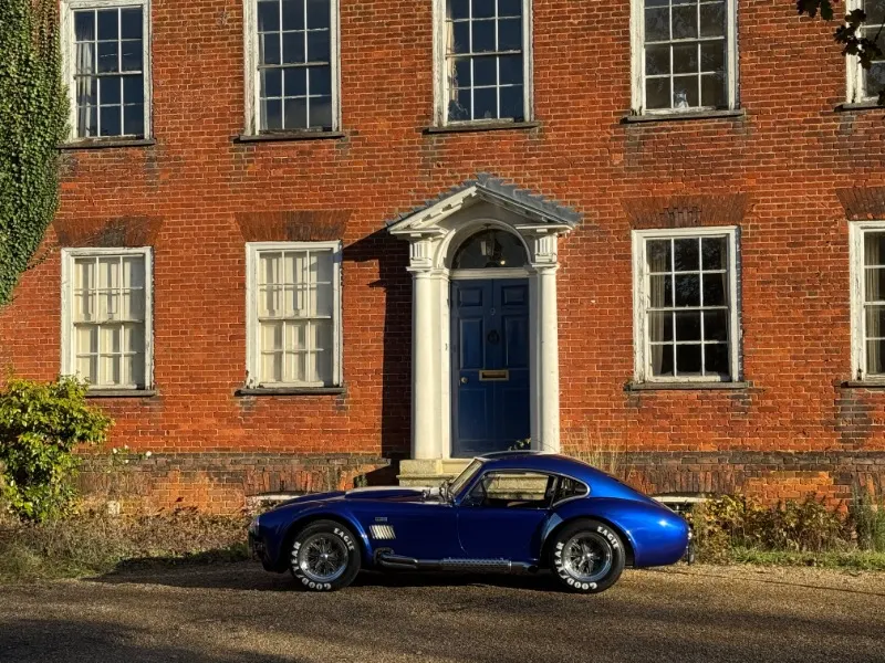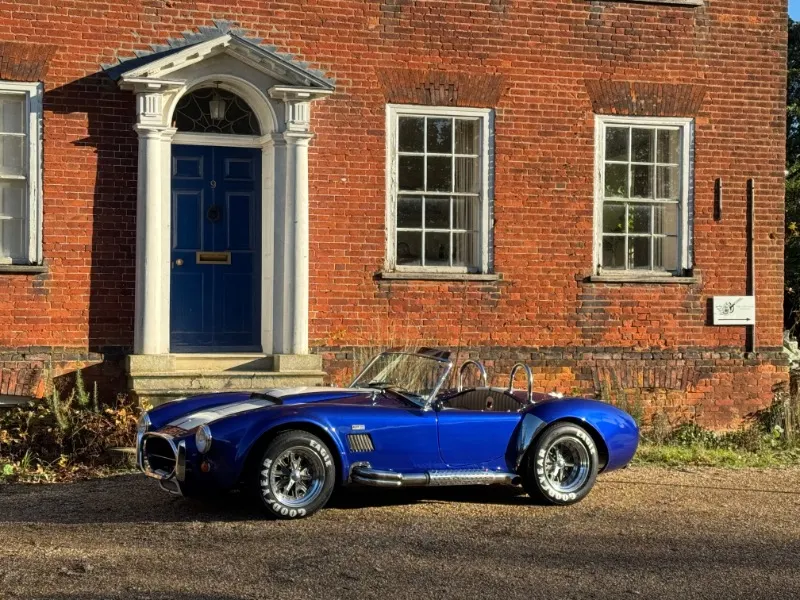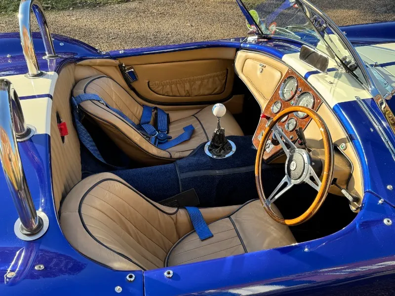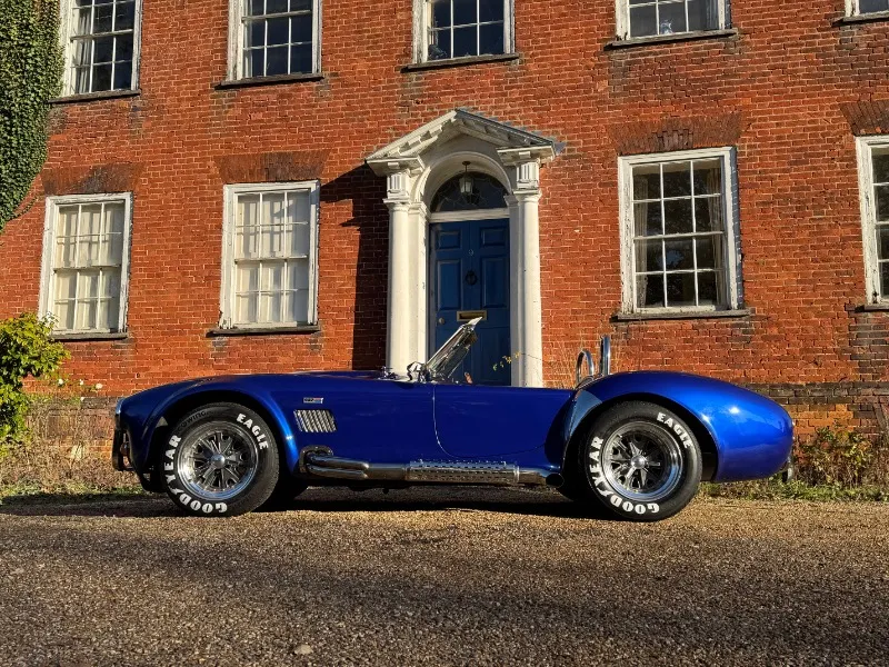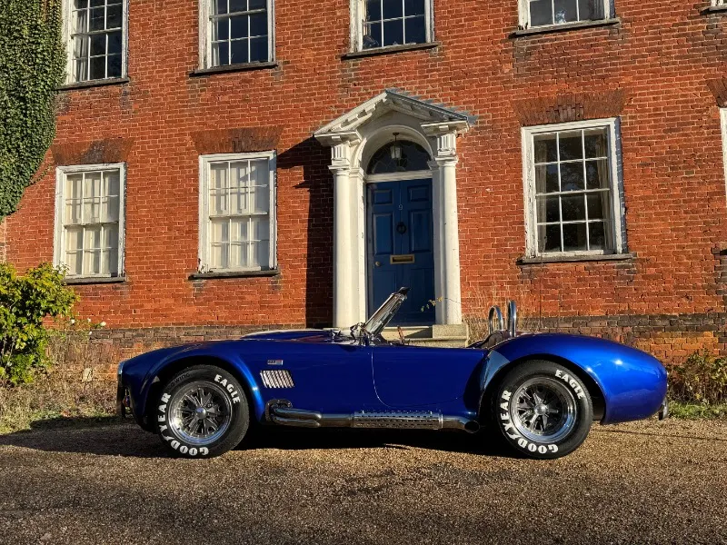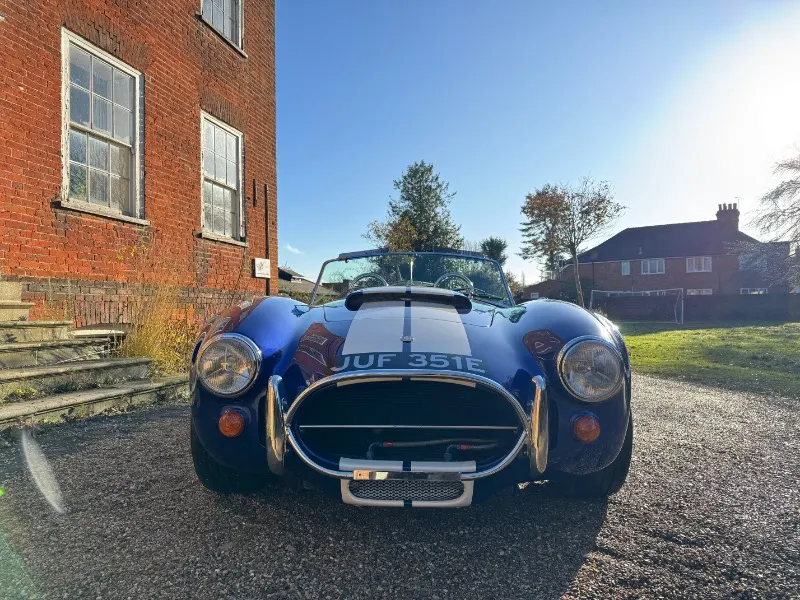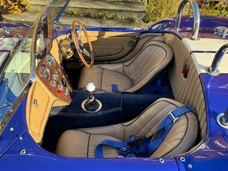 DAX COBRA + 427Hardtops fastback This superb DAX Cobra was correctly registered 21/12/1993 Only 19035 miles Finished in Imperial blue with Wimbledon white stripes Colour coded removable fastback hardtop by 427Hardtops, Grey flocked headlining, Side windows and wind deflectors. Detailed with Chrome bumpers, Stainless steel front splitter, PL700 Headlamps, Cobra badges, Chrome mirrors, Stainless steel wipers, Smoked sun visors, Chrome stone guards, Two single hoop roll bars, Chrome flip top fuel filler. 15” Compomotive Hallibrand alloy wheels with faux aluminium spinners. Tan leather interior with blue piping, Wood dash inlay, Blue wilton carpets, Moto-lita wood rim steering wheel, Smiths instruments, Lucas switches, Cobra gear knob, Willans Harness seat belts. Battery cuts off switch, Fire suppression system . Powered by a 5700cc 350ci H/O Chevrolet V8, See includes Chrome air filter, Holley 4 barrel carburettor, Performance inlet manifold, Aluminium heads, Finned polished aluminium rocker covers, HEI Distributor, Chrome alternator, Chrome pulleys, Braided hoses, Aluminium header tank, Remote oil filter and front oil cooler. Polished aluminium lined engine bay. Stainless steel headers and 4 into 1 stainless steel side pipes with heat shields, 4 Speed top loader manual gear box Powder coated DAX Tojiero chassis Jaguar differential and disc brakes all around Adjustable coil over shock suspension Large history folder with servicing and build recipes including original DAX invoices and registration paperwork Ideal for export as over 30 years since build £44995