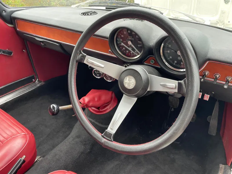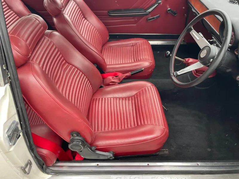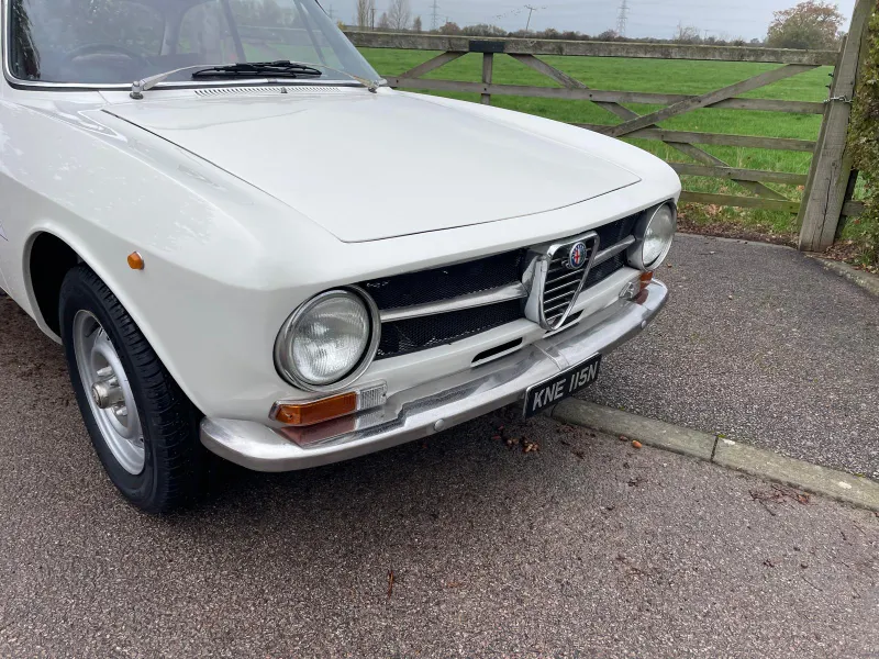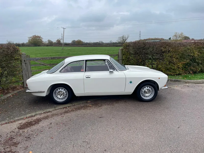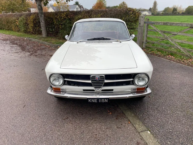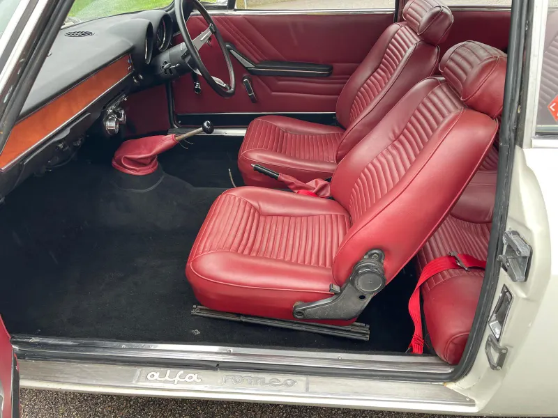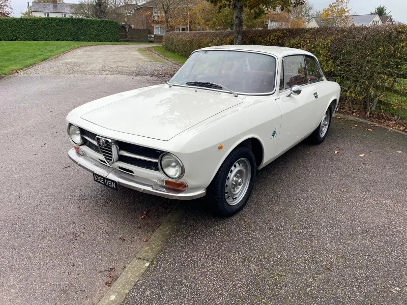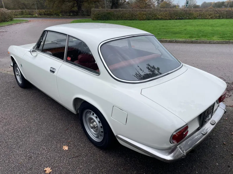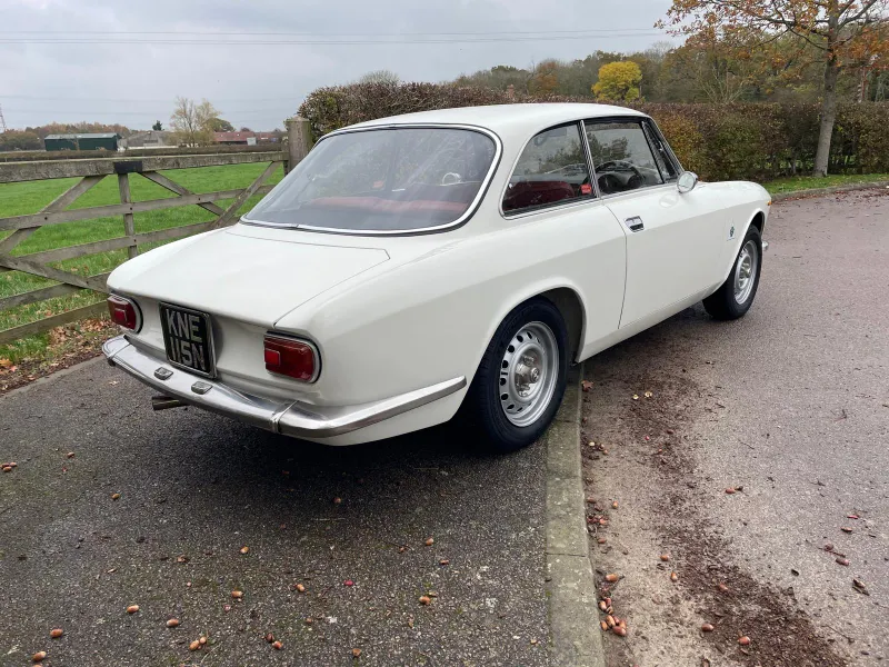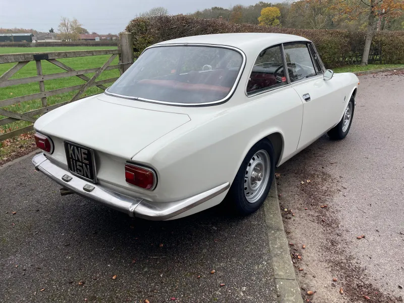 The Alfa Giulia Coupe range styled by Bertone caused a real stir when it was introduced in 1963, with its stunning looks and range of twin-cam power plants it was soon clear that they drove beautifully and road tests of the day extolled their virtues. Powerful lovely sounding engines, slick five-speed gearboxes and nimble well-balanced handling meant that they drove better than most of their contemporaries including competitors from Stuttgart and Modena! The production run carried on until 1977 when Alfa eventually bowed to the trend of wedge-shaped cars and introduced the Alfetta Coupe. This beautiful Series one example was first registered and assembled by Alfa Romeo South Africa in 1975 and imported to the UK in 2024 She began a documented restoration around 2022 and was stripped to the bare metal and a rebuilt 2 litre engine fitted with stainless sports exhaust,alfaholics propshaft ,123 ignition etc This GT drives so well with an incredible rorty bellow from the carbs and twin cam chatter, the gearbox is smooth with absolutely no synchro issues providing the driver with a delicately balanced driving experience. Supplied fully inspected, serviced with 12 months warranty.
