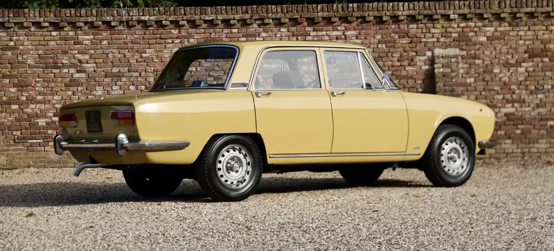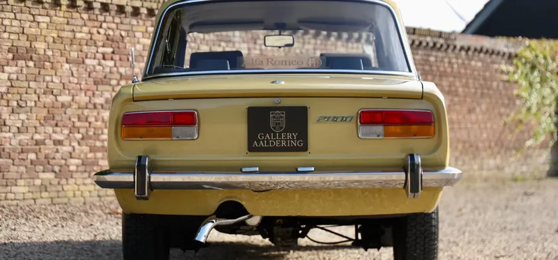 Alfa Romeo 2000 Berlina “54,000 kilometers” An exceptionally well-preserved Alfa Romeo 2000 Berlina, in truly sublime original condition. This rare sporty sedan exudes class and authenticity, and is a perfect example of Alfa Romeo’s refined design and engineering from the 1960s. The Alfa Romeo 2000 Berlina was introduced in 1962 as part of the Giulia series, quickly earning praise for its combination of elegance, sporty performance, and reliability. The Berlina featured a 2.0-liter four-cylinder engine delivering smooth and responsive performance, while the carefully designed chassis and streamlined body offered an exceptional balance of comfort and driving pleasure. The interior, crafted with attention to detail and high-quality materials, provided a luxurious feel ahead of its time. This model quickly gained a reputation among enthusiasts seeking a stylish yet practical sedan with authentic Alfa Romeo character, and today is considered one of the brand’s most desirable classics. The car was newly delivered in Europe by Alfa Pac in Sweden and has had only one European owner since. With a low mileage of just 54,000 km, this Berlina remains almost entirely in original condition, with 80% of the paint still in its first original finish. The Berlina is presented in the original and characteristic color “Giallo Ocra” with a dark gray fabric interior – a timeless and elegant combination that perfectly complements the Berlina’s graceful lines. It comes complete with the service booklet and original dealer brochures, providing full documentation of its history and careful maintenance. This is a unique opportunity to acquire a rare and authentic Alfa Romeo sporty sedan, or to enjoy a car that seamlessly combines classic design, originality, and driving pleasure. Gallery Aaldering is Europe’s leading Classic Cars specialist since 1975! Always 400 Classic and Sportscars in stock, please visit www.gallery-aaldering.com for the current stock list (all offered cars are available in our showroom) and further information. We are located near the German border, 95 km from Düsseldorf and 90 km from Amsterdam. So easy traveling by plane, train, taxi and car. Transport and worldwide shipping can be arranged. No duties/import costs within Europe. We buy, sell and provide consignment sales (selling on behalf of the owner). We can arrange/provide registration/papers for our German (H-Kennzeichen, TÜV, Fahrzeugbrief, Wertgutachten usw.) and Benelux customers. Gallery Aaldering, Arnhemsestraat 47, 6971 AP Brummen, The Netherlands. Tel: 0031-575-564055. Quality, experience and transparency is what sets us apart. We look forward to welcoming you in our showroom.