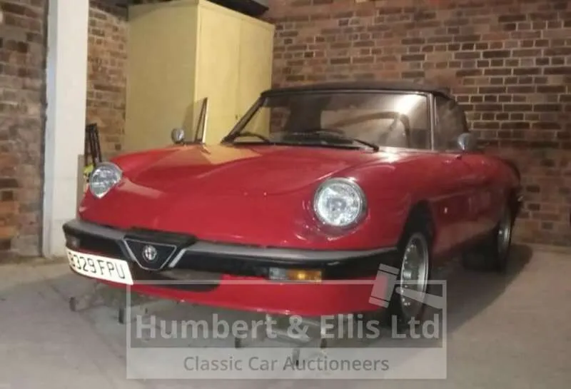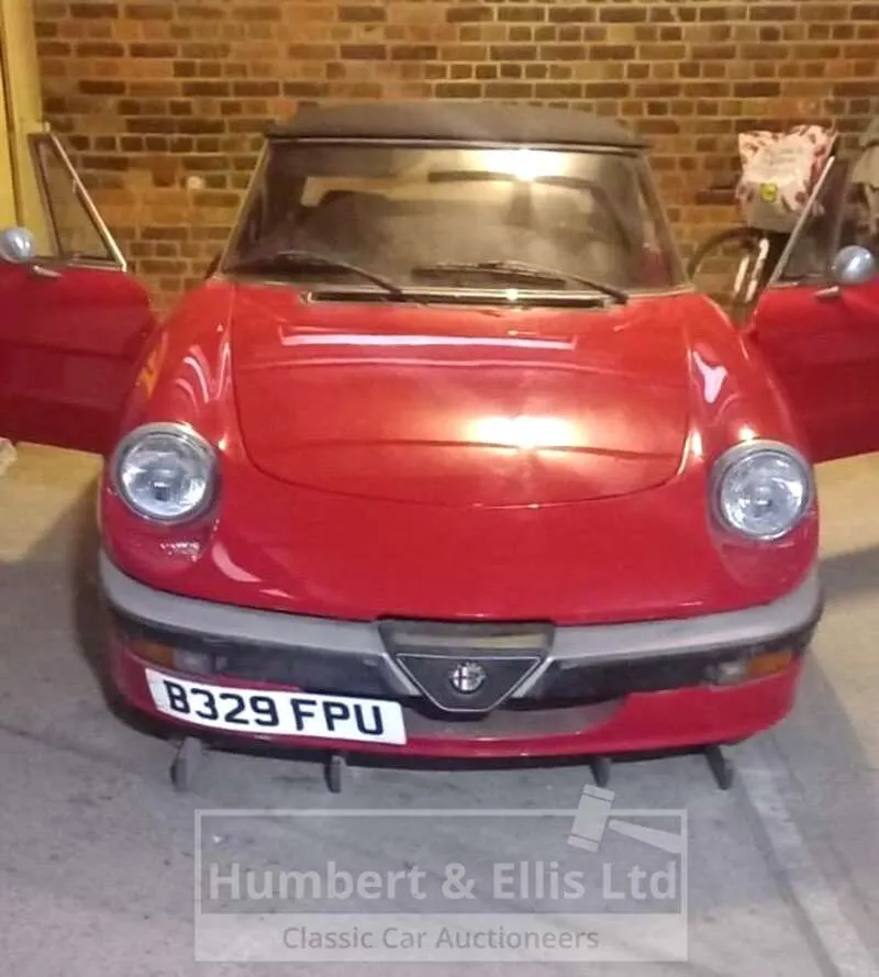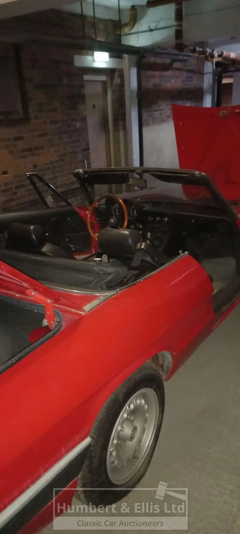 1984 ALFA ROMEO SPIDERMake: ALFA ROMEO Model: SPIDERRegistration Plate: B329FPUYear of Manufacture: 1984Mileage: 164221Mileage Type: MilesMOT: Historic VehicleV5: PresentDrive: RHDTransmission: ManualFuel Type: PetrolEngine Size: 1600CCEngine Number: AR00526Body Type: ConvertibleChassis Number: 06672Weight: 2140Registered Former Keepers: 1Interior: BlackColour: RedDoors: 2Seats: 2SORN Registered: YesThis vehicle is located near Hounslow, London TW5 from where it will need to be collected.Videos available on request. Please see 'Additional Documents' above for Motorscan Report.Viewing is by appointment, please contact the office to arrange. n/a