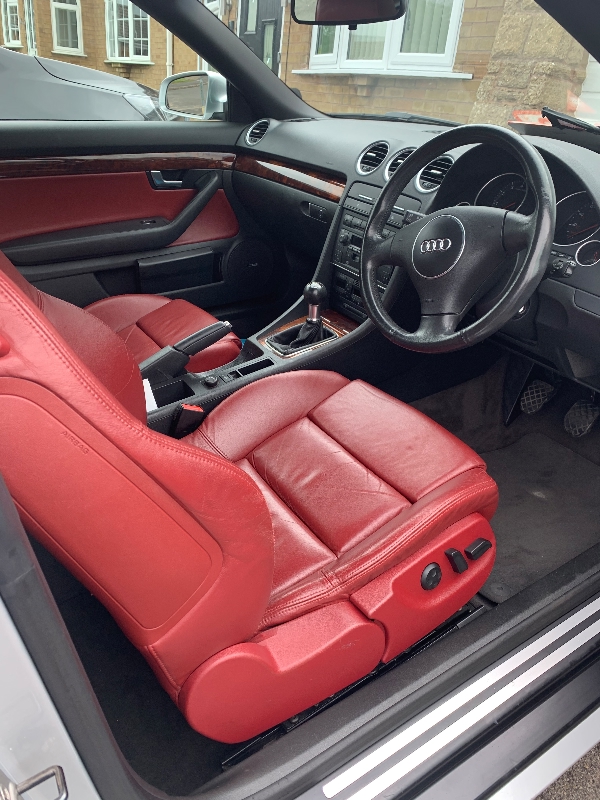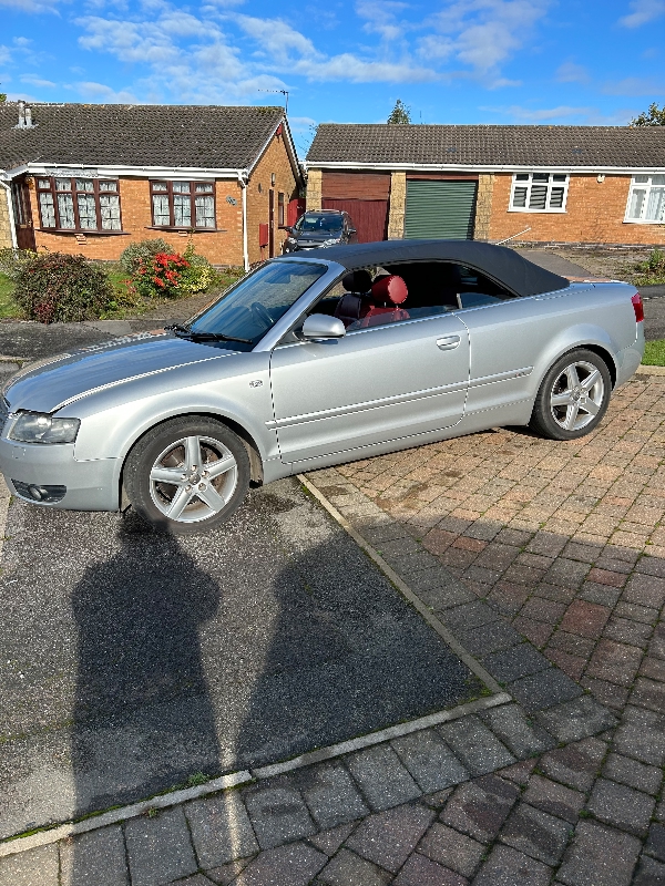 Audi A4 S-Line convertible 3.0 V6 petrol with manual gearbox. Rare combination of metallic Silver/Red leather trim and Blue power hood which operates correctly. Very clean condition and smooth drive, MoT to July 2026. My car since 2020, only for sale as not getting enough use.