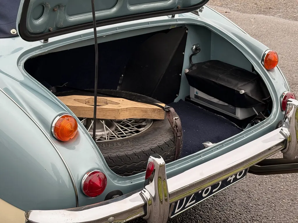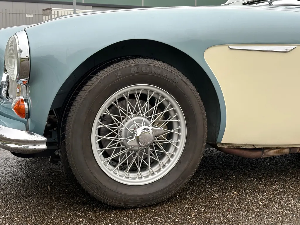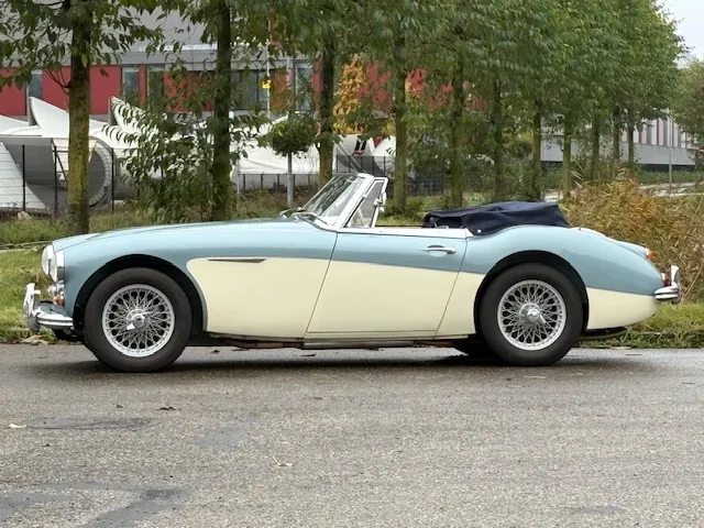 Austin Healey 3000 Mk3 from 1966. Healey Blue with Ivory White. The interior is finished in blue Alcantara with white accents. It also includes a blue vinyl soft top and a mohair hood cover. This Big Healey was fully restored and overhauled between 2015 and 2018. This restoration, with numerous photos, was featured in the Austin Healey Owners Club magazine. Very little has been driven since the restoration, so this BJ8 remains in excellent condition. A very attractive Austin Healey 3000 Mk3. We can install new chrome spoke wheels for you at an additional cost. We speak Dutch, English , German and French. Our cars can be delivered with Dutch, German or Belgium registration. We can assist with the French registration. Transport to your door is possible. We have our own workshop facility with 30 years experience with classic cars.