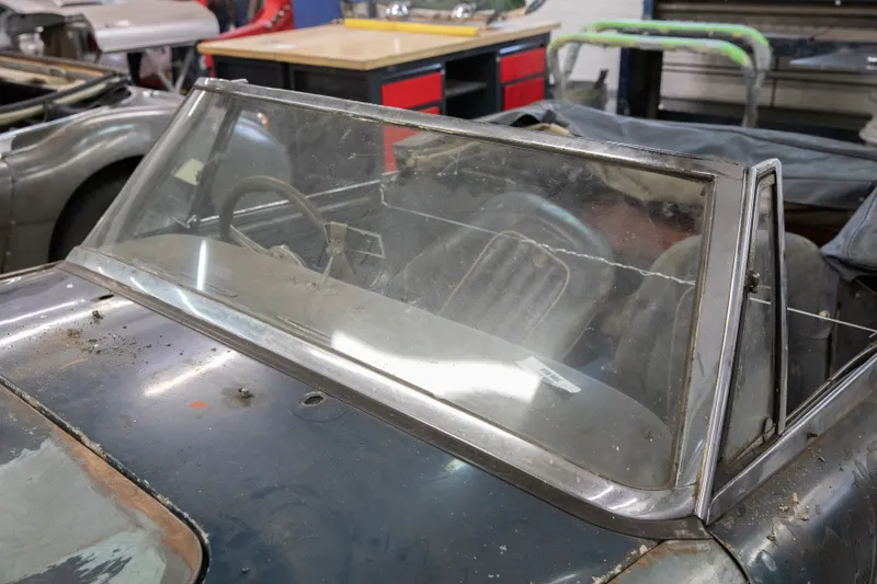 Here we have for sale a rare opportunity to purchase one of the 455 UK original right hand drive Austin Healey 3000 MKIIA BJ7s in the ultimate specification of Healey Blue Metallic over Navy interior, ready for restoration to your specification. The car shows just 58,000 miles from new and has been stored in a garage the last 35 years. This Healey – original registration 795 GRL – was built between 9th July – 8th August 1963 for delivery to Car Mart then then main Austin dealer of London fully loaded with options including wire wheels, heater, adjustable steering column, overdrive, servo assisted brakes and a laminated windscreen. This is a original Healey Blue metallic car which retains many of its original panels, retains its original engine with original head, original gearbox and overdrive, original rear axle, original chassis in very good solid condition, original dashboard and instrumentation, original windscreen and much more. The car is accompanied with boxes of further parts missing in the photos. All the important parts for restoration are present, some new BMC (Austin Healey original) repair panels are fitted but further repairs are needed for completion. We can restore this car to original or your upgraded specification in part or in full as required. Sold with British Motor Heritage Certificate, V5 and spare parts.