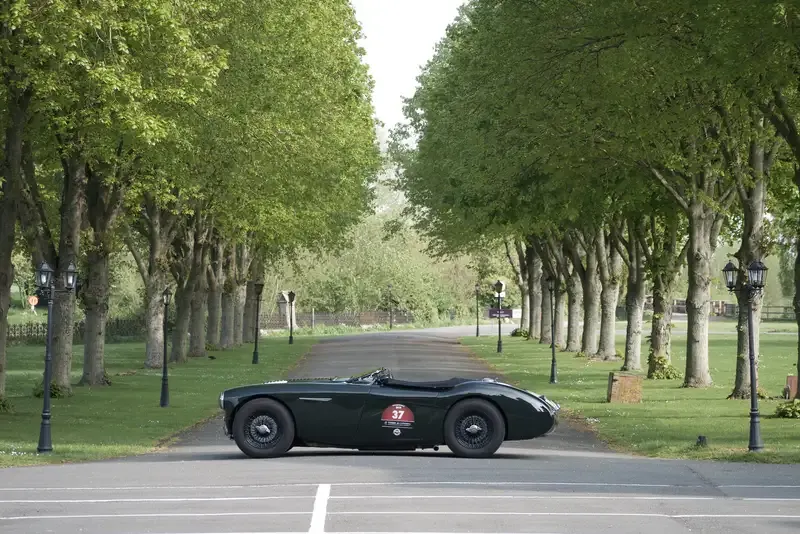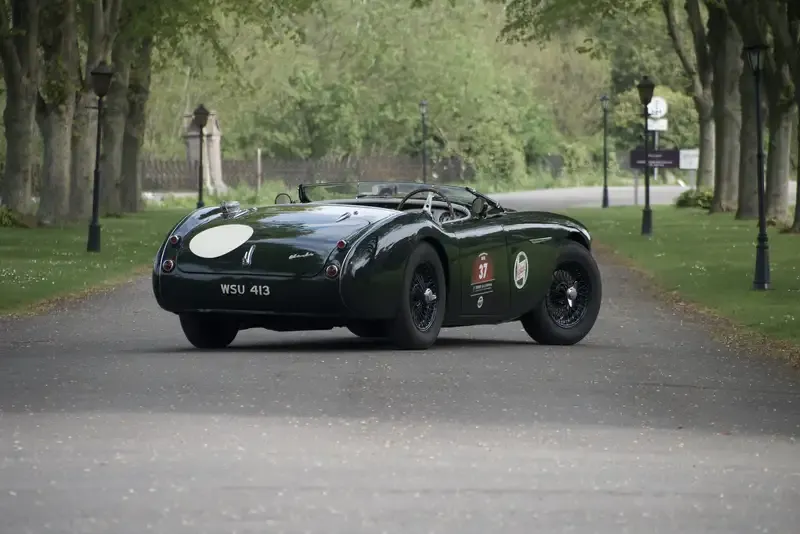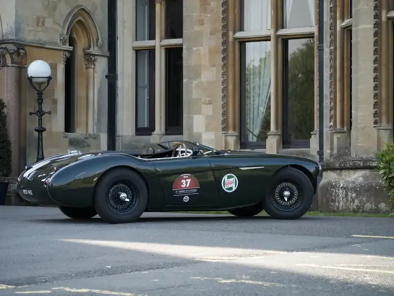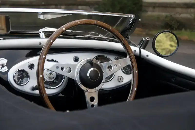 This lot will be auctioned via Iconic Auctioneers, The Iconic Sale at the NEC Classic Motor Show 2025 on Saturday the 8th of November, NEC, Birmingham, B40 1NT. Built in September 1954 and originally exported to the US, this BN1 returned to the UK in 1989 and was treated to a documented, photographic restoration and refinished in its current Dark British Racing Green between 1989 and 1993. Since then, it has been fastidiously maintained and sympathetically upgraded, creating an outstanding fast-road Healey with genuine long distance rally credentials. In current ownership since 2021, the car was entrusted to highly regarded marque specialists, JME Healeys, from 2018 onwards for ongoing maintenance and performance upgrades. The engine was fully rebuilt and converted to 100M ‘Le Mans’-specification in 2018 at a cost of £25,000 (invoice on file), including a DWR2 camshaft, 89mm high compression pistons and performance tuning. At the same time, the original 3-speed gearbox was replaced with the superior BN2 4-speed with overdrive, significantly improving drivability. A large core radiator and electric fan were added for better cooling, along with a 123 electronic distributor, high torque starter, tubular manifold and side-exit exhaust. Avon racing tyres were fitted (although the car has never been raced), and the brakes were upgraded from drums to discs, with the original components supplied with the car should the new owner wish to return it to standard. Further enhancements include a rear shroud-mounted fuel filler, front spot lamps, and 72-spoke wire wheels finished in body-colour. The underside remains structurally excellent and painted to match the body, reflecting the quality of the restoration. The car has successfully completed events such as the Canossa and Bassano road-rallies in Italy and an extended tour to Greece, proving both its reliability and dynamic capability. This Healey is accompanied by an outstanding history file containing every invoice from previous owners, a full record of restoration and upgrade works, its British Motor Industry Heritage Trust Certificate, past and recent service records, a pair of racing stopwatches, an original set of tools, a green protective cover and various certificates. It was previously FIVA-registered and all original parts required to obtain a fresh FIVA pass are included should the next owner wish to do so. An exceptionally well prepared and well documented BN1 that goes far beyond the ‘run of the mill’ Healey, combining period style with 100M performance, expert engineering and superb provenance. A rare opportunity to acquire a truly special fast-road Austin-Healey 100/4 that represents remarkable value in today’s market.