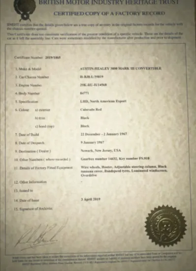 Available to be restored by Rawles Motorsport to your specification and colours. Built at Austin’s Abingdon factory and dispatched on 9th January 1967 this Austin Healey 3000 MkIII is an extremely solid basis to restore a late, final production specification Phase II car. Fully loaded from the factory with overdrive, a heater, wire wheels, adjustable column and a tonneau. This project Healey is fully complete with its original matching numbers engine, gearbox and rear axle. All body panels are originals and all important chrome pieces such as the windscreen, grille and cockpit trims are present and in good restorable condition as are the instruments. For more details about restoring this Healey please contact 01420 23212 or Sales@RawlesMotorsport.com