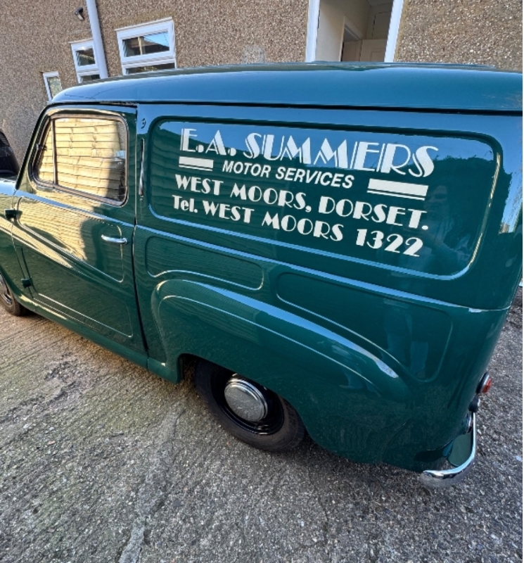 Beautiful example of previously restored A35 van, sign written on both sides and back door. Green...