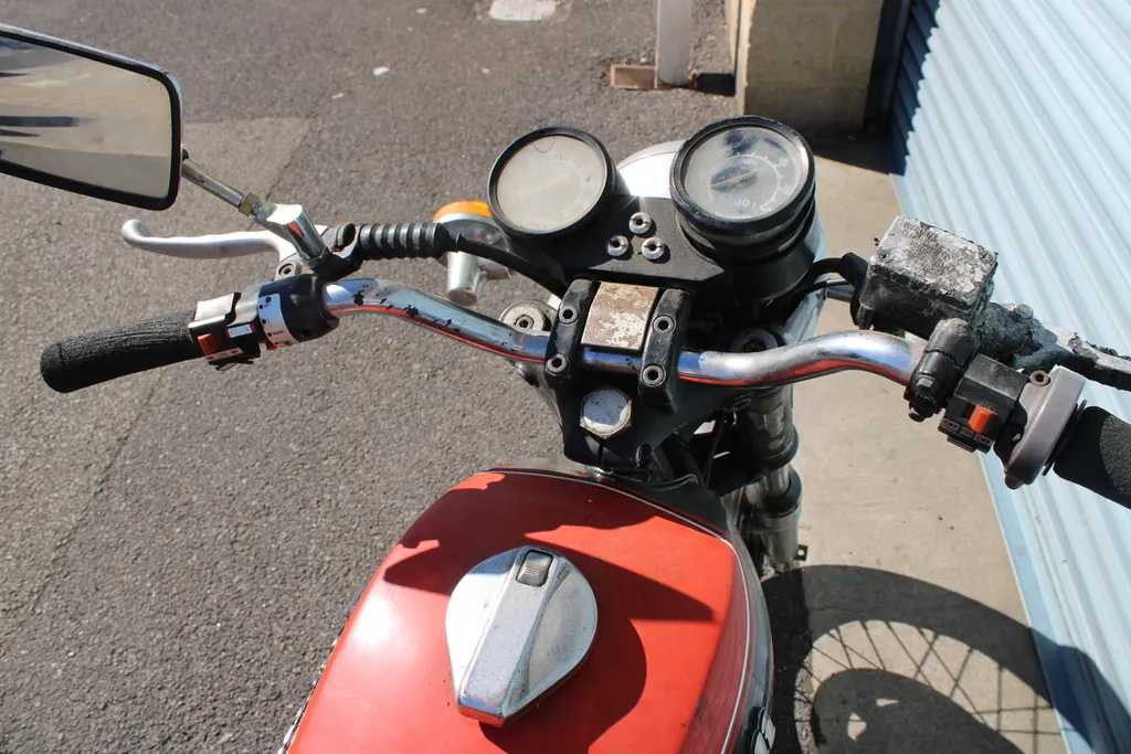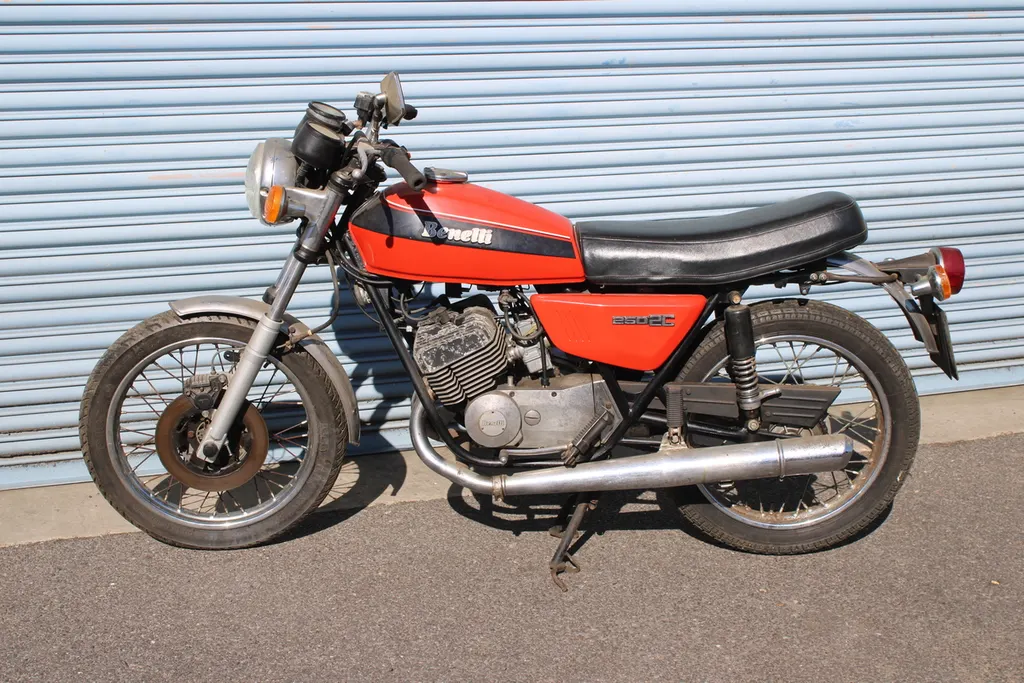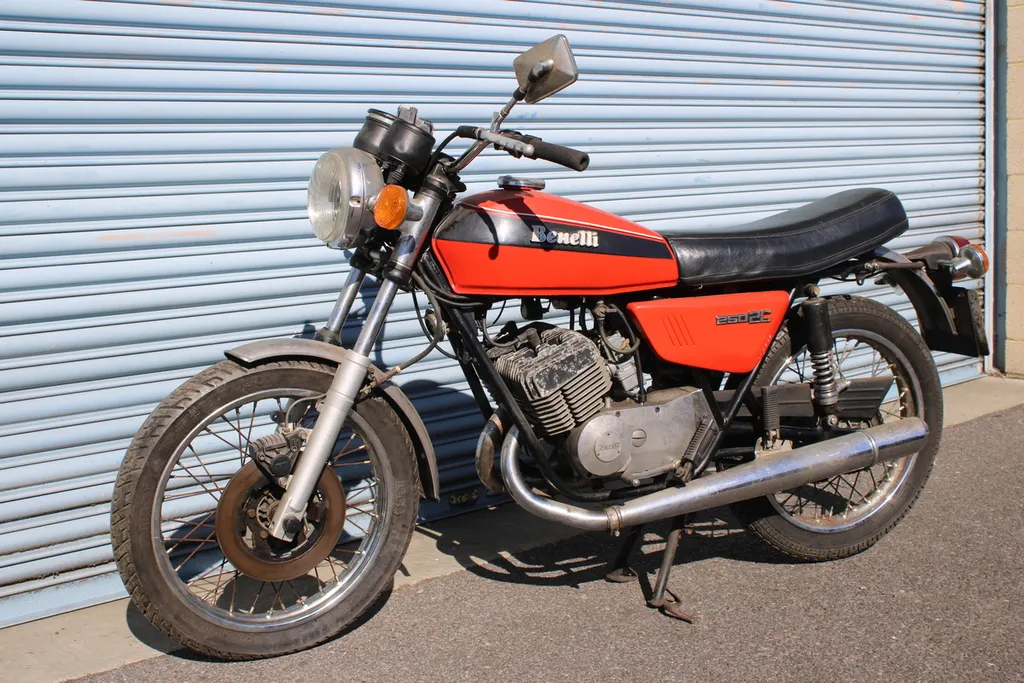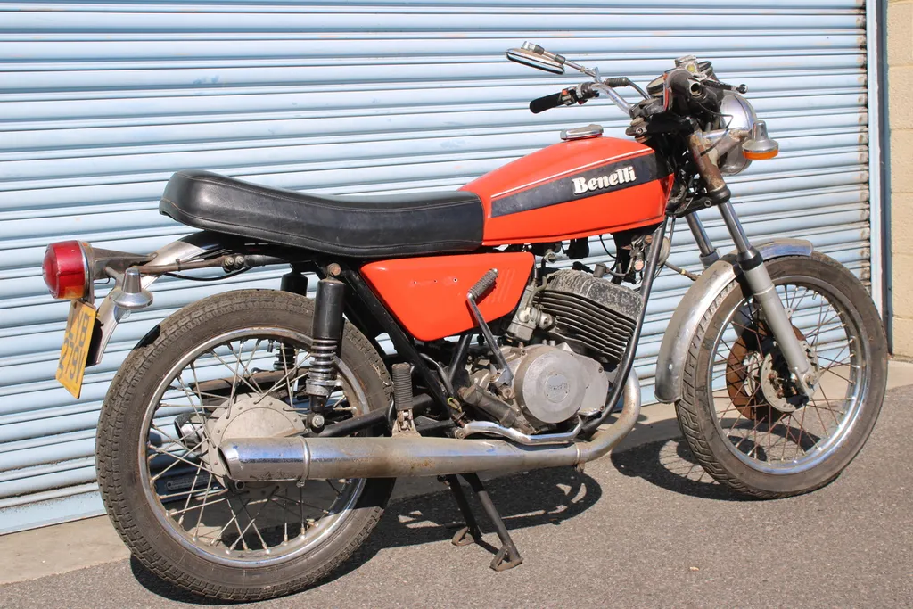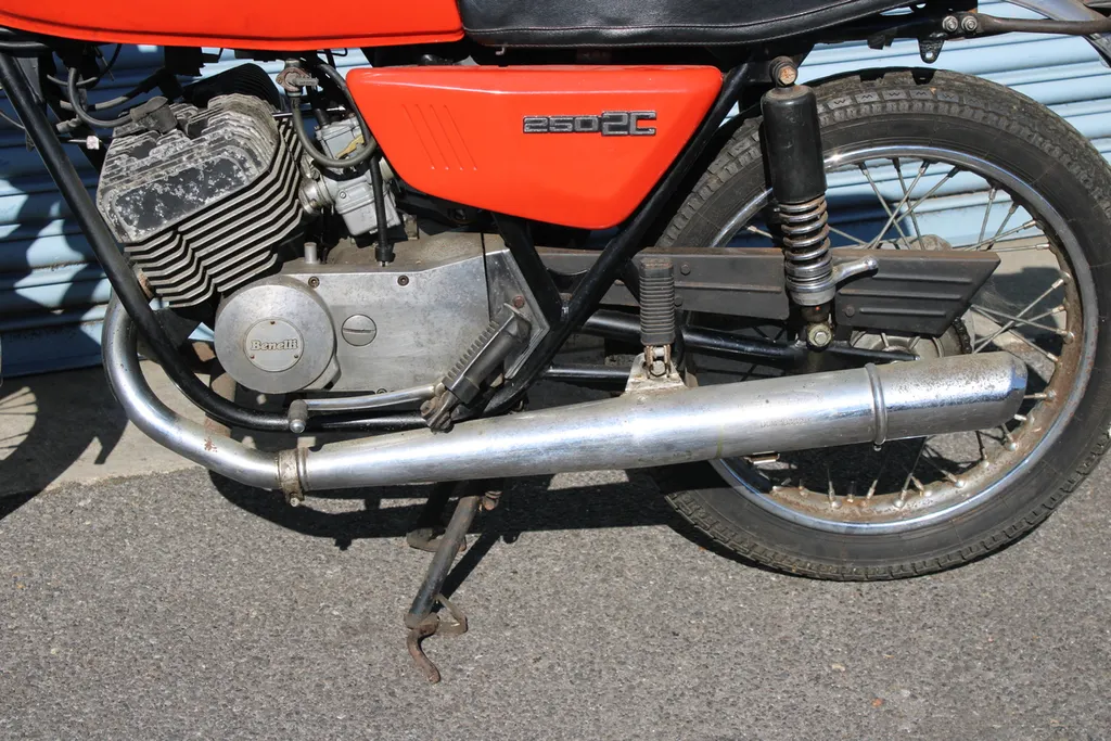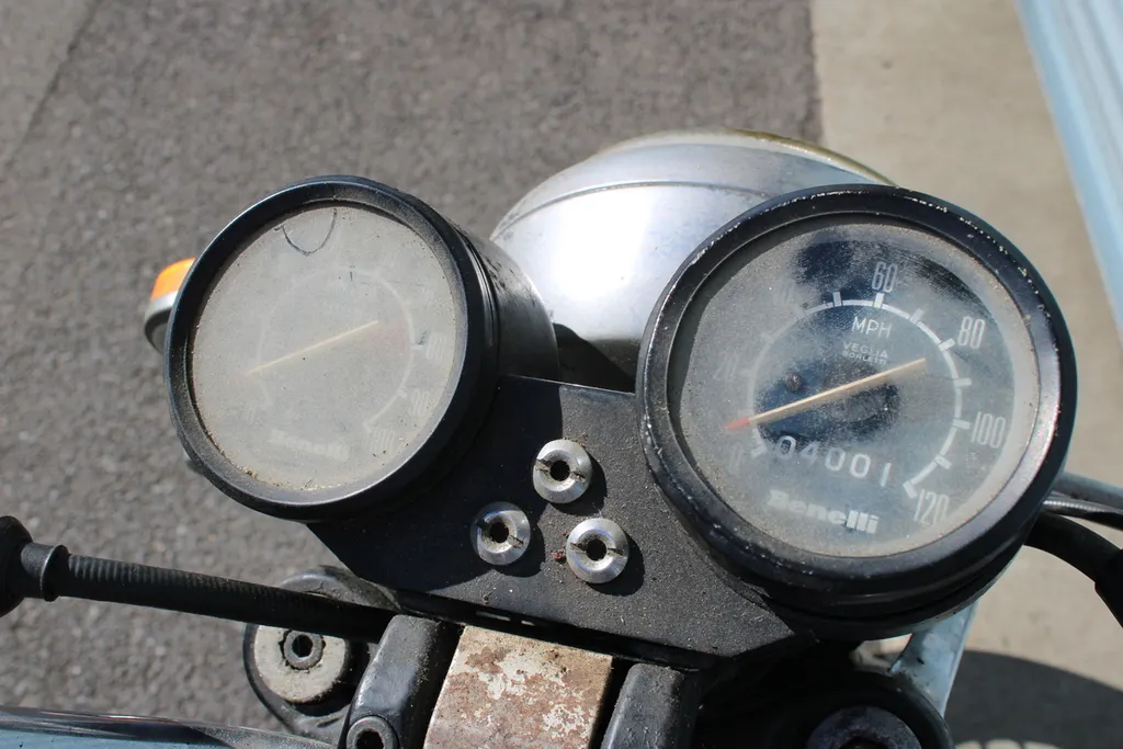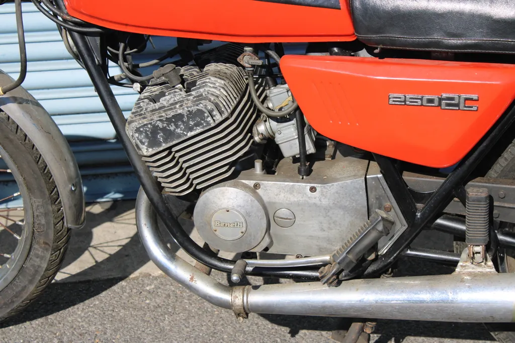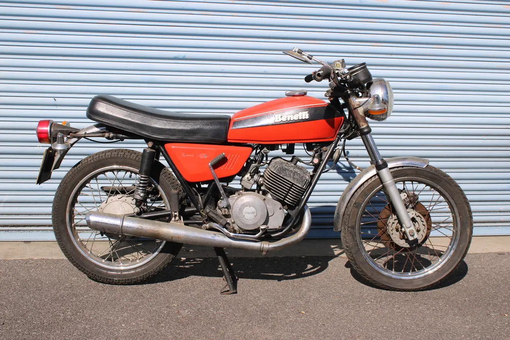 In current ownership since 2009. Vendor states the Benelli runs but needs a new battery. An old advert and data card are in the paperwork.