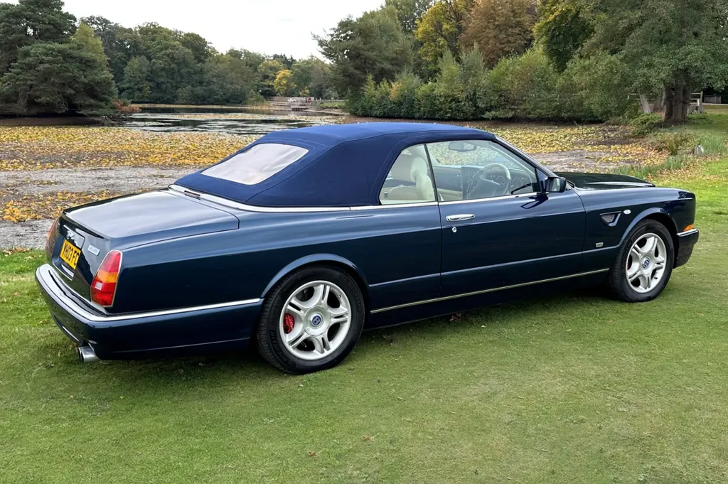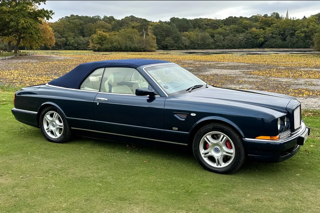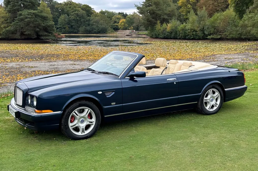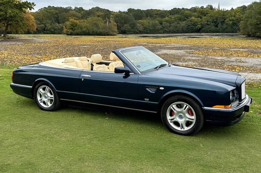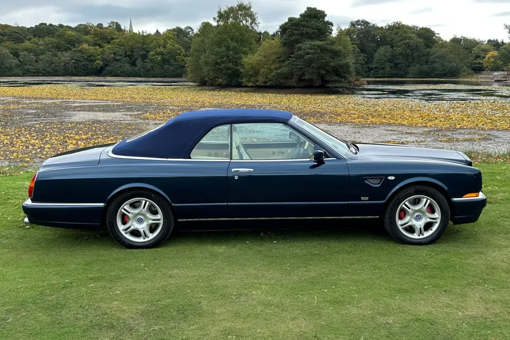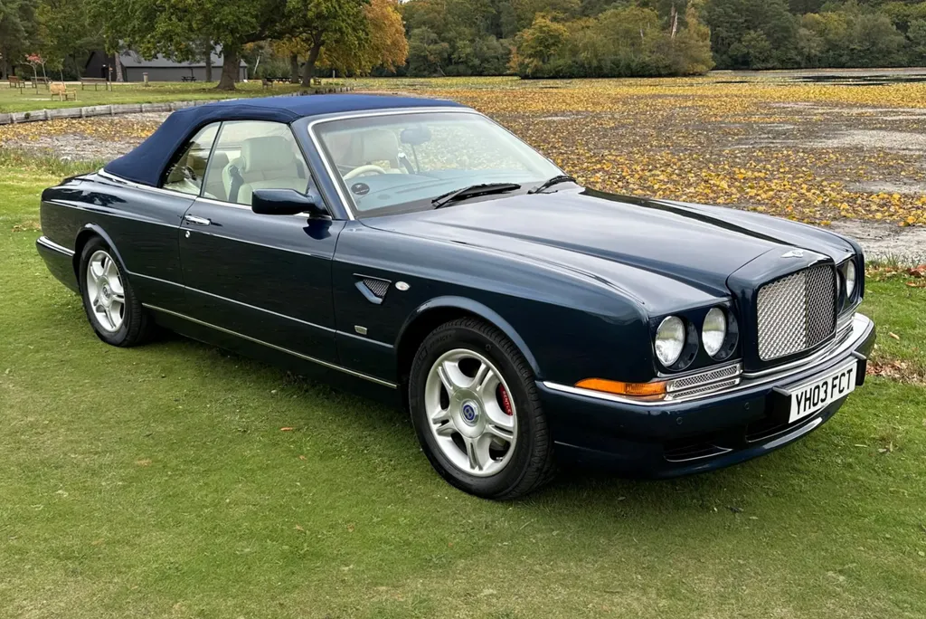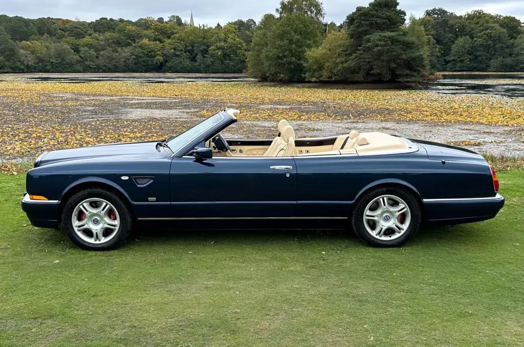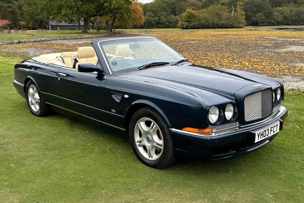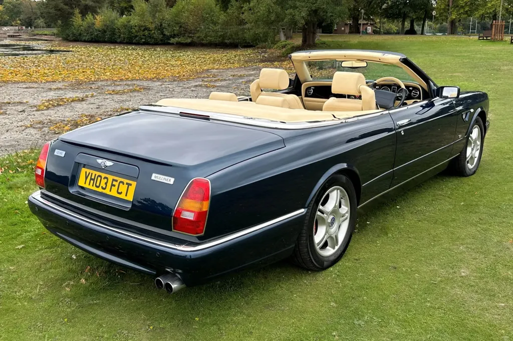 One of just fifteen right hand drive examples of this final variation Two private owners from new, the first from 2003 to 2023 Under 10,000 miles from new Very good main dealer service history and more recently maintained by us One of the most popular colour combinations available In excellent condition in every respect Fitted with wing vents, diamond quilted seats and a raft of special features A top class modern classic in the making and highly collectible. Chassis No SCBZK26EX3CH01203 was originally completed and registered in May of 2003 and supplied by Broughtons of Birmingham. It was specified in Royal Blue with a dark blue cloth hood and a magnolia leather interior. Being an Azure Mulliner Final Series Performance variant, it came with a number of special features which include but were not limited to diamond quilted seats, dark burr walnut woodwork, Bentley wings inlaid in the woodwork waist rails, a Continental T instrument layout, starter button, turbo boost gauge, five spoke alloy wheels, wing vents, Mulliner badges, chrome instrument bezels and drilled pedals. It was retained by the original owner from 2003 to 2023 and comes with excellent main dealer service history, with eleven stamps in the service book. The car was brought to us in late 2023 by the second and present private owner who instructed us to prepare the car for him, with a new set of tyres, plus a service and check over. We are now delighted to be offering this very rare late production for sale. It is one of just sixty-two examples built to this Final Series Performance specification, of which just fifteen were believed to have been built-in right-hand drive. It has covered just under 10,000 miles from new and is in excellent condition in every respect. A top class, low mileage, highly collectible modern classic in the making. The Bentley Continental R was unveiled in 1991 after six years of development and it became an instant success. Its stylish sports coupe coachwork captured the imagination of Bentley enthusiasts, and the orders flooded in. The success of the Continental R and the slightly sportier Continental T made it inevitable that a convertible variant would be developed and in 1995 Sergio Pininfarina was approached and given the task of styling the Bentley Continental R convertible which became known as the Azure. Between 1995 and 2003 just over 1,300 Azures were built, with improvements and modifications implemented as time went by. Several low production variants were made during this time, from the Jack Barclay Special, to the Mulliner Editions, to the Le Mans variant. The final hurrah for this model came in the form of the Azure Mulliner Final Series Performance in 2003.