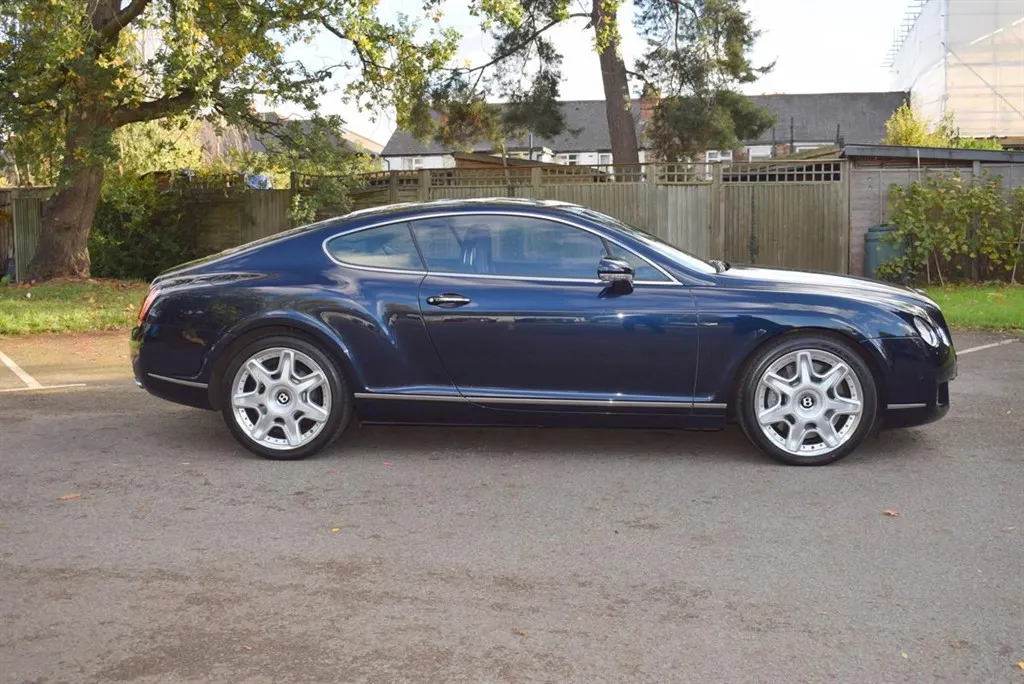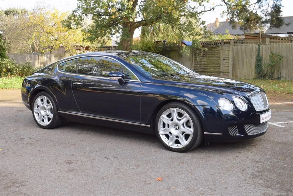 2008/58 (2009 Model) Bentley Continental GT Mulliner. Finished in Sapphire Blue with chromed lower front grilles and 20 inch split rim polished alloys. The interior is trimmed in Imperial Blue with embossed B’s in Portland on the headrests, Piano Black veneers and powered boot. Only 2 previous owners and just 49,000 miles with full history. Beautiful condition and fantastic value at only £24,950