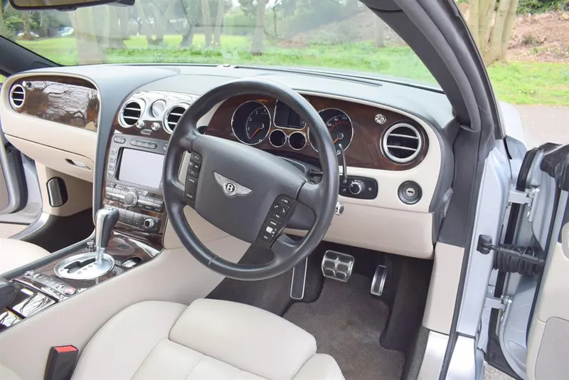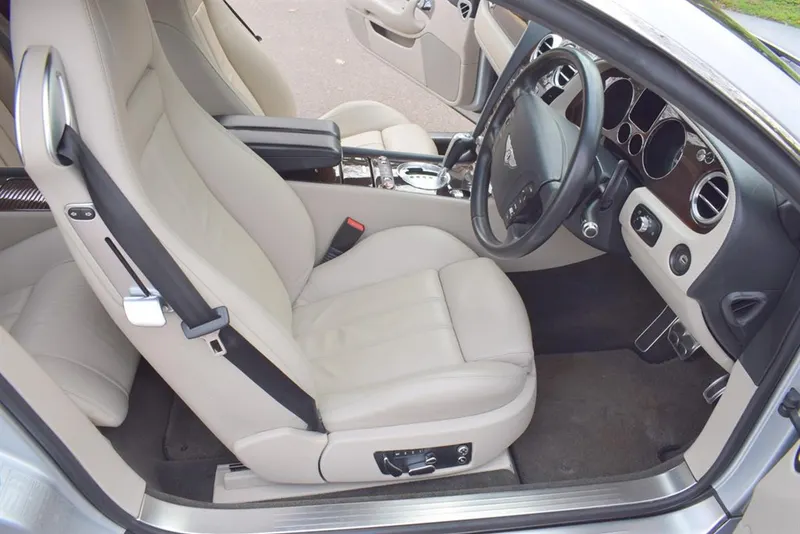 2005/05 Bentley Continental GT. Finished in Moonbeam Silver with Portland hide interior and Beluga carpets. With Dark Burr Walnut veneers including door and rear quarter inlays. Fitted with massage option to the front seats. Only 84,000 miles with Full Service History. Immaculate throughout.