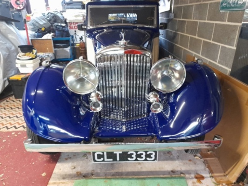 Manual gearbox with overdrive, Mann Egerton body, stainless steel exhaust, with 19945 recorded miles, a beautiful and striking Bentley Sports Saloon car in excellent condition, owned 19 years. Finished in Dark Blue and Cream with matching Dark Blue leather interior and Blue trim, this stunning looking car turns heads wherever it goes. Maintained and cherished this 1936 car. Was extensively renovated to a high standard before my ownership. This lovely fully working car stands up to close examination.