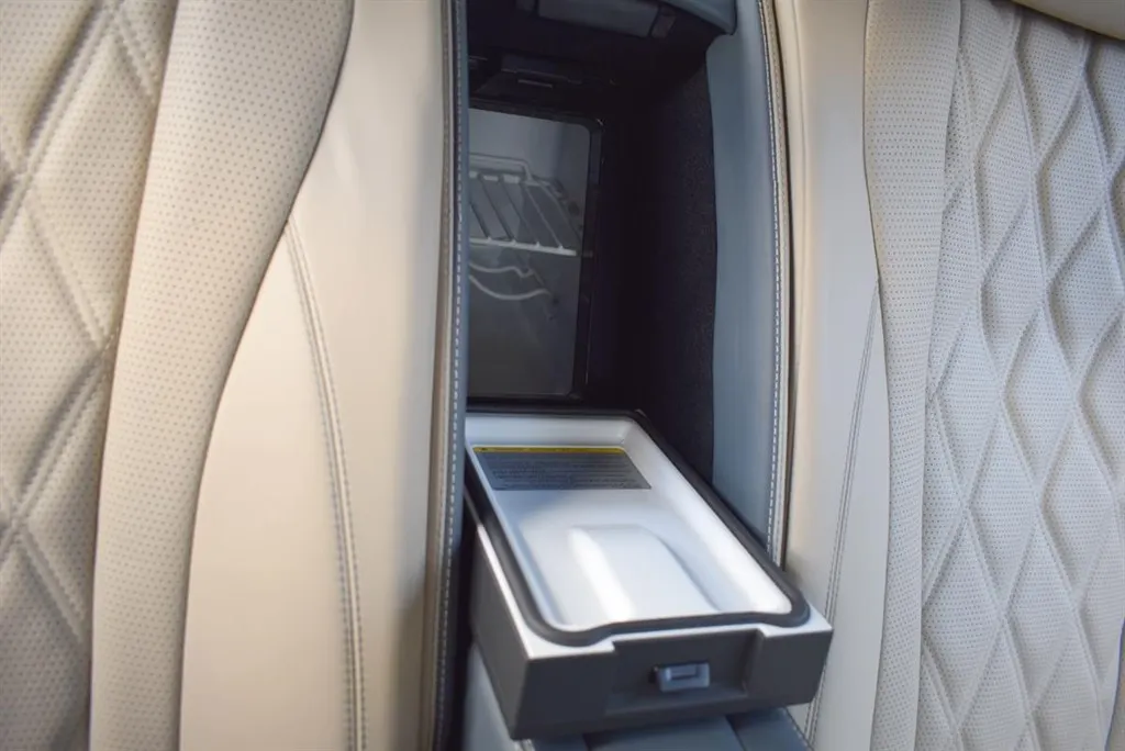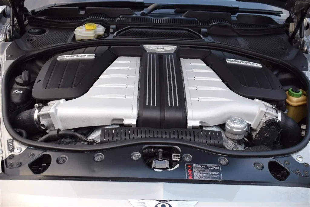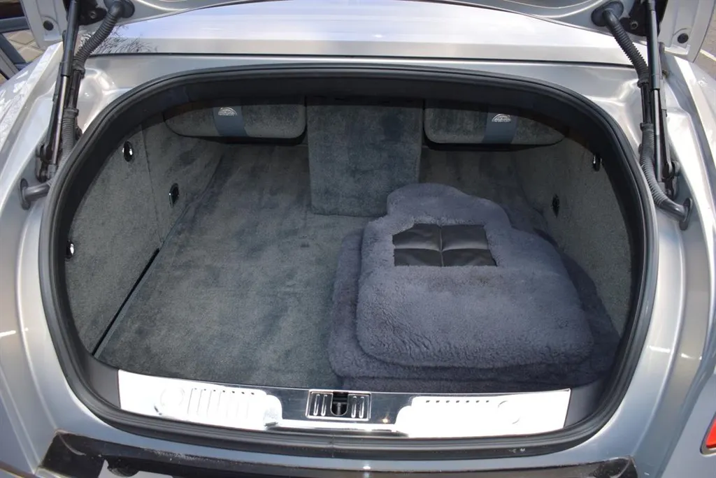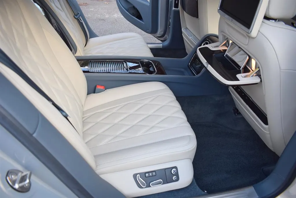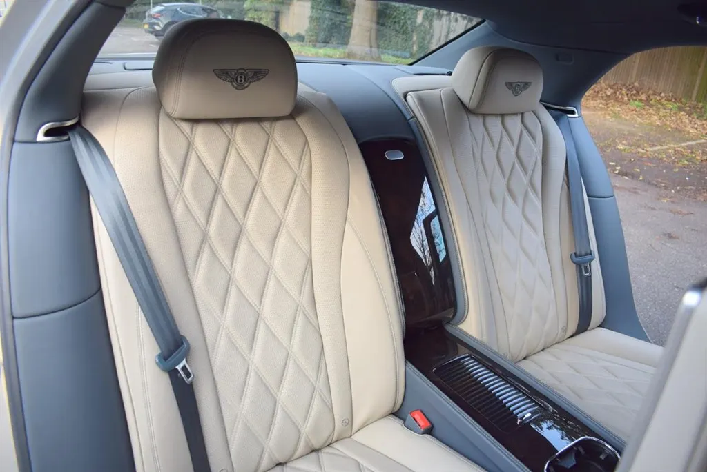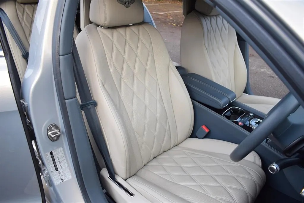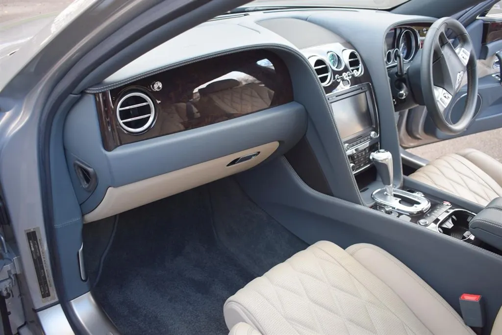 2014/64 (2015 Model) Bentley Flying Spur W12. Finished in unmarked Extreme Silver with ten spoke propeller alloy wheels. The interior is trimmed in Portland leather with Brunel Pale Grey secondary hide, with contrast stitching, embroidered Flying B’s to head restraints and dual trimmed three spoke steering wheel. Full Mulliner specifications including Comfort spec. and full length centre console. Fitted with rear screens, picnic tables, refrigerated bottle cooler and Naim Bentley sound system plus many other extras. Only 38,000 miles with full history. Immaculate throughout, outstanding value at only £41,950