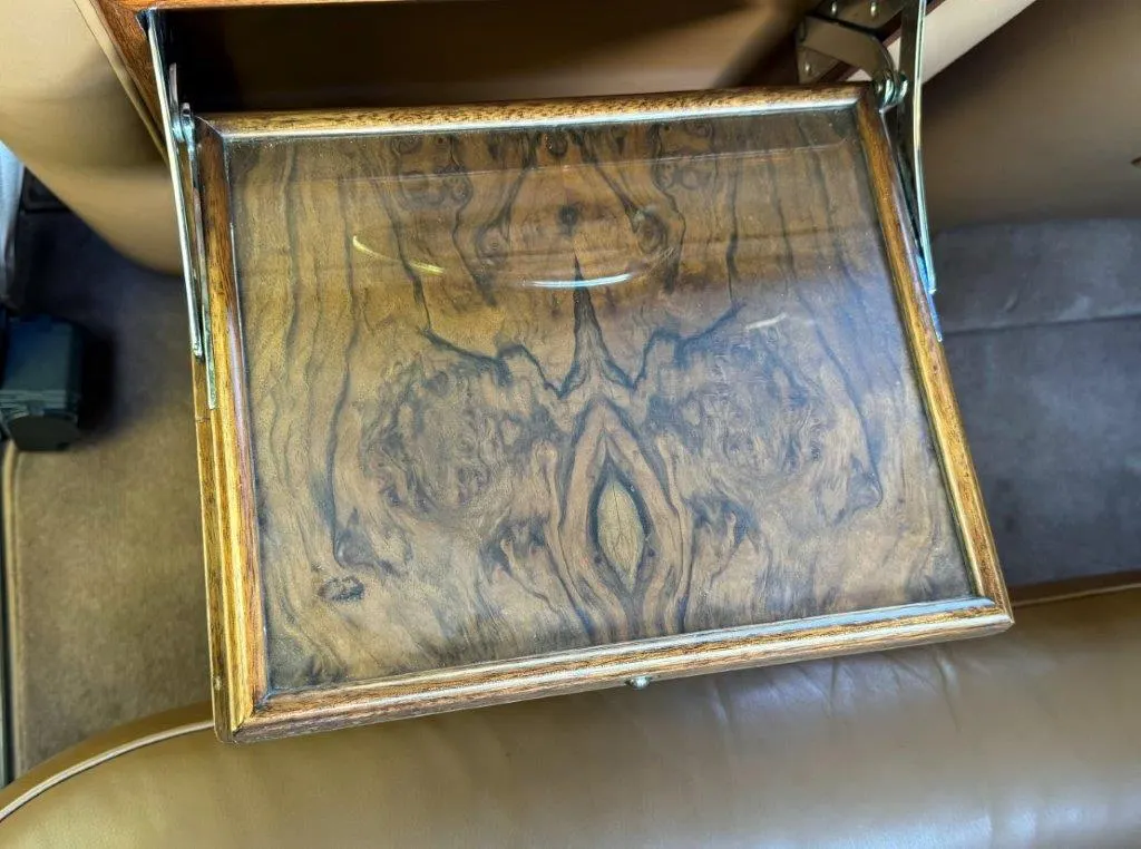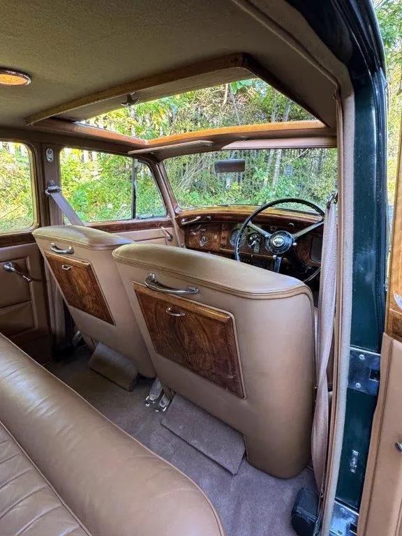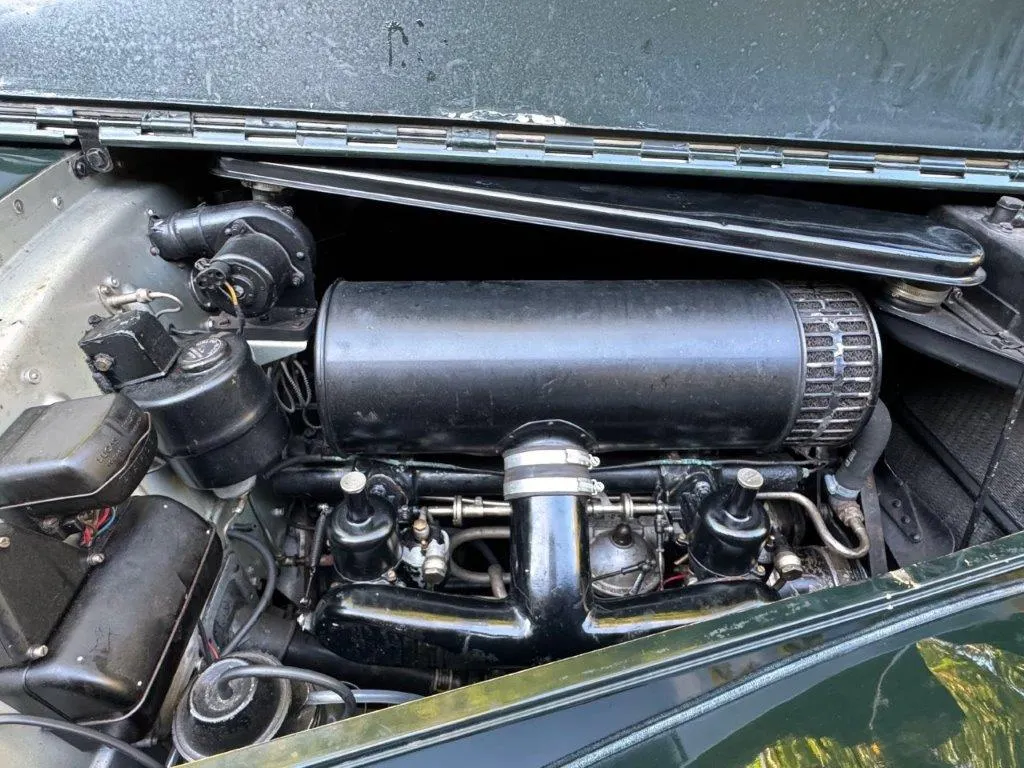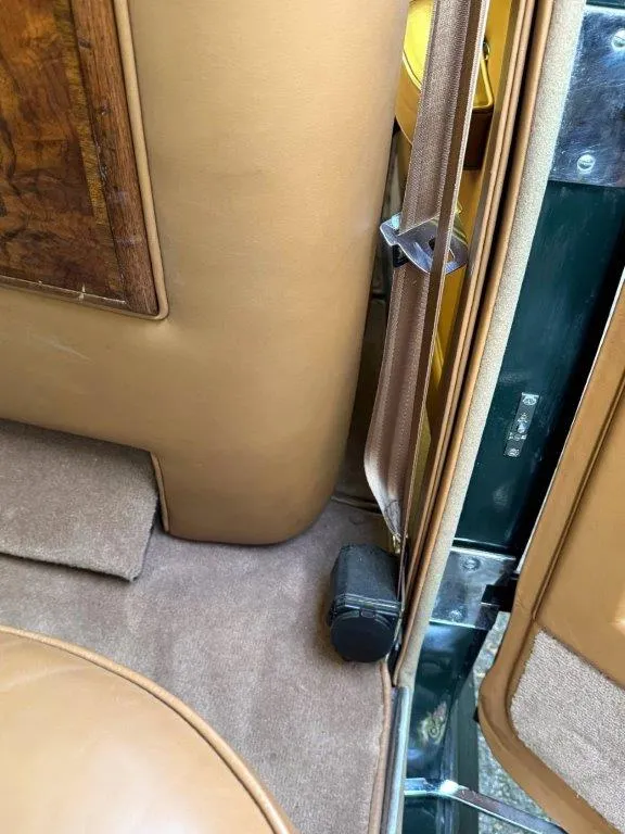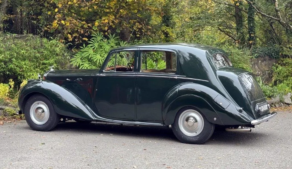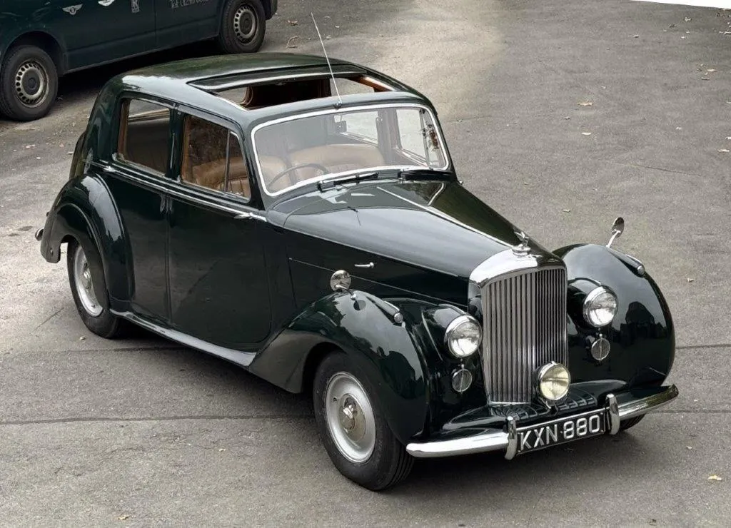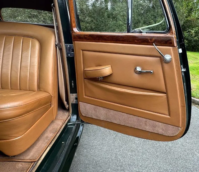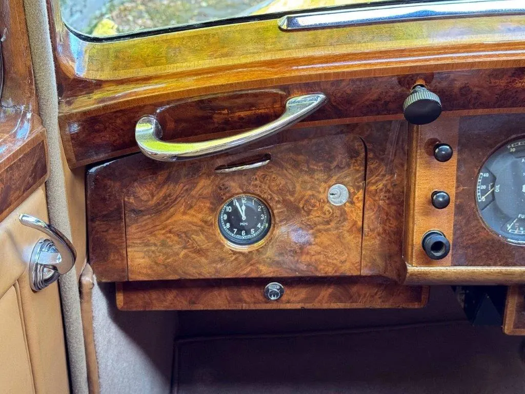 A smart and sound car, looking particularly attractive in very dark green with lovely tan leather interior, a colour scheme which we feel suits the car really well. The leather, carpets, headlining and woodwork are all fresh, correct and gorgeous. There are even colour-coded, inertia reel seatbelts, front and rear. Various correct tools, large and small, are included. The history file with the car confirms expenditure of about £53,000 on repairs and maintenance over the last couple of decades, all documented, several Jack Barclay invoices from the 1950s, and there is also written history from an earlier owner, MoT certificates, a buff logbook from 1960, and various other documentation, even including instructions for the HMV radio! As well as the original trafficator arms, still working properly, the car has been upgraded to flashing indicators, neatly incorporated into the existing side and tail lights, all working from the same switch. Driving nicely, performing well, and offered with a new set of radial tyres (not shown in the photos), serviced and MoT tested. Chassis No. B356FV Reg No. KXN 880
