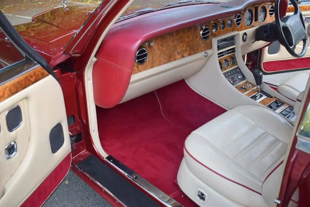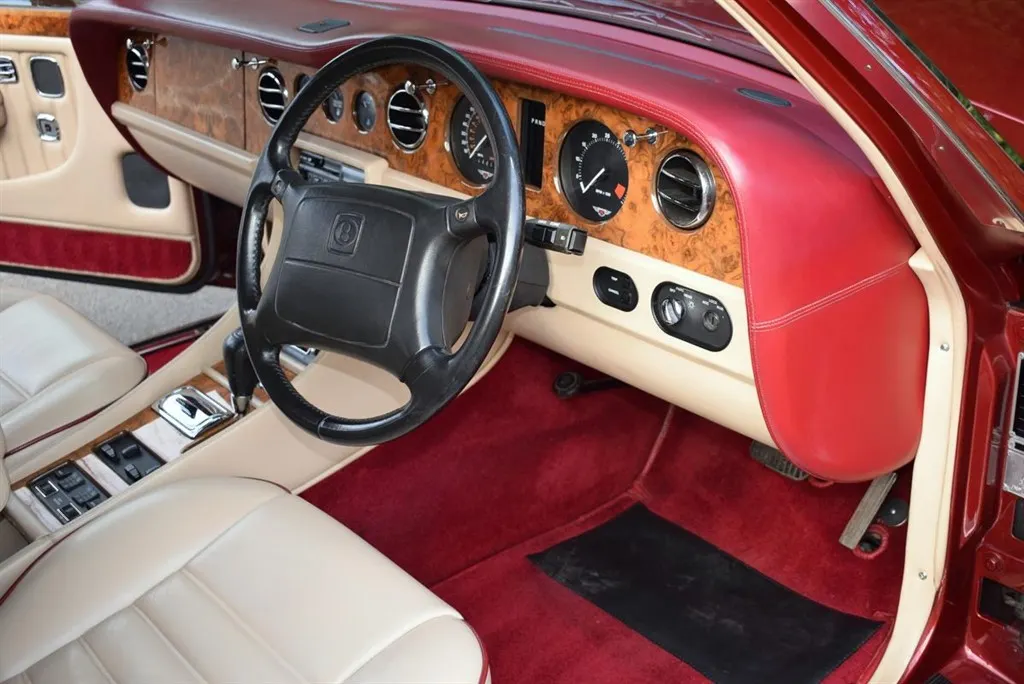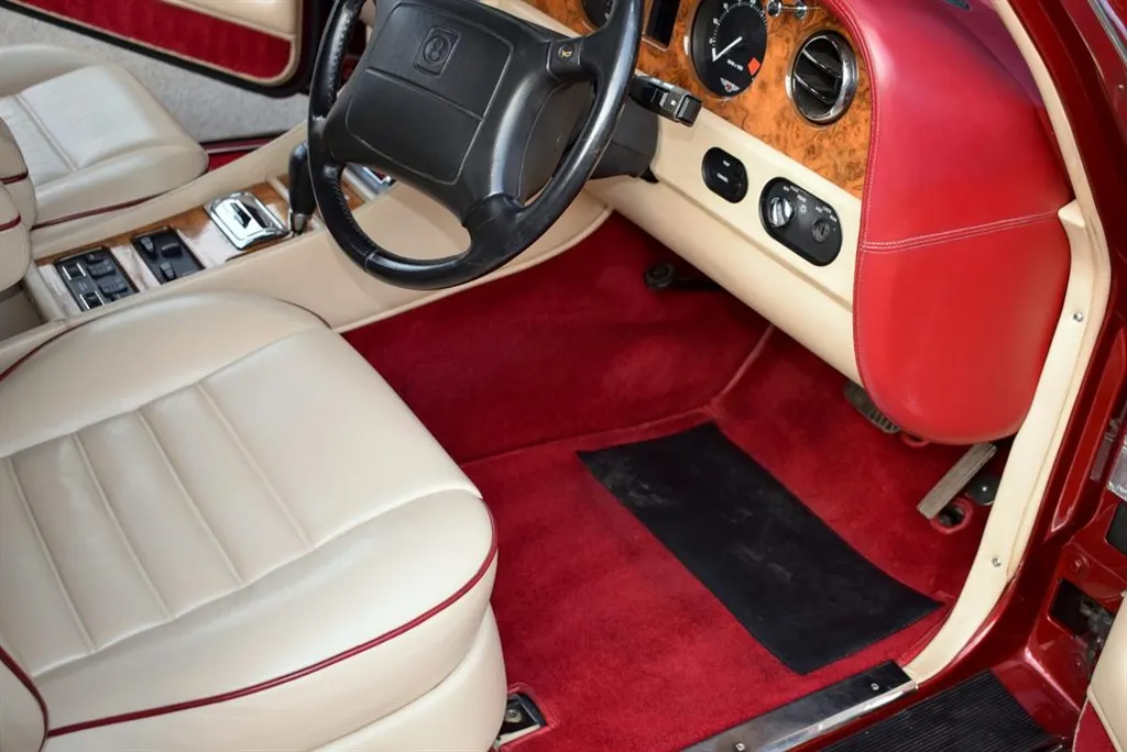 1994 M Bentley Turbo R. Finished in unmarked Red Pearl with 17 inch alloys, also fitted with attachment for a bike rack. The interior is trimmed in Magnolia with St James Red piping and contrasting seat belts, with St James carpets piped in Magnolia. Only 88,000 miles with history, plus the head gaskets were replaced by ourselves just 6 months ago. This is a stunning example with no rust. A proper show car, only £18,999