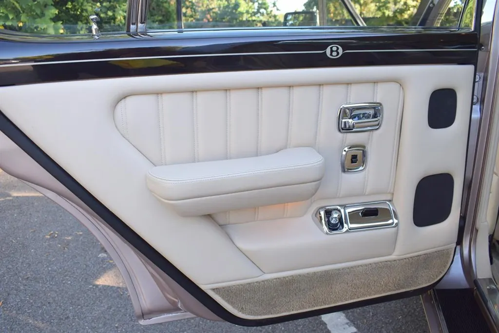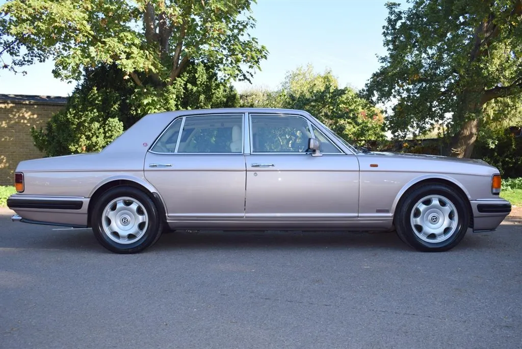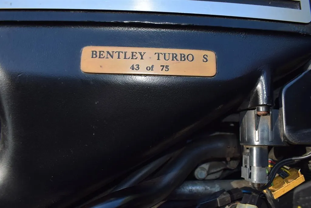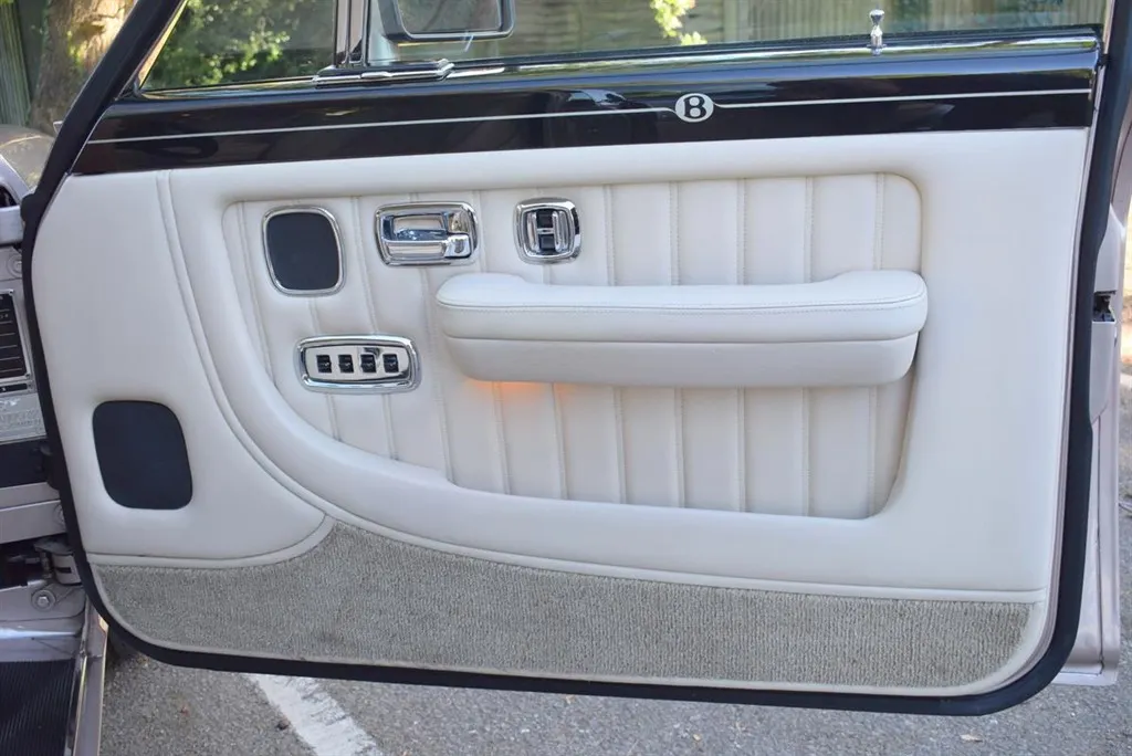 1995 Bentley Turbo S Limited Edition. This car is number 43 of 75, with only 15 cars produced for the UK. With over 402 BHP the spec. of the Turbo S includes wrap around bumpers, 17 inch alloys and Sports style seats to cope with the extra performance. This car is in stunning condition, finished in unmarked Silica, with Parchment interior with Tan piping, Cream carpets piped in Parchment and fitted with picnic tables to the rear. The wood veneers are in dark stained Walnut with embedded B’s. Only 3 owners from new and just 29,770 miles with a full documented service history with no expense spared. A must for the collector, only £36,950