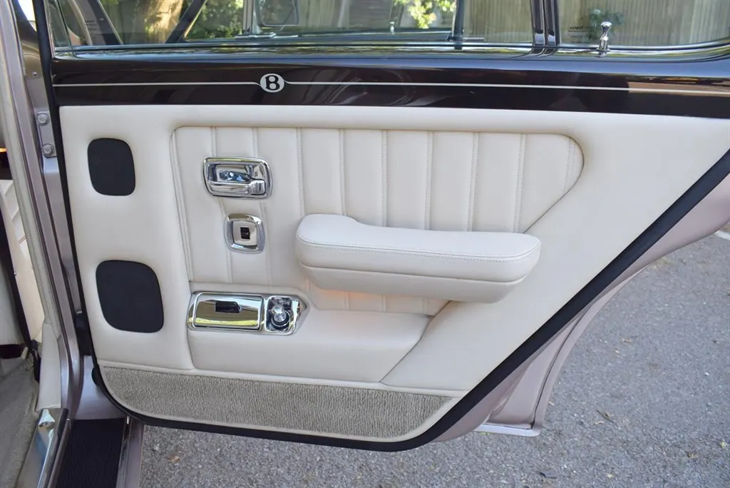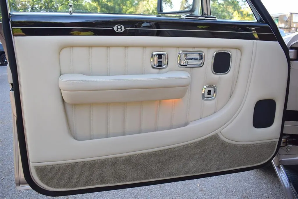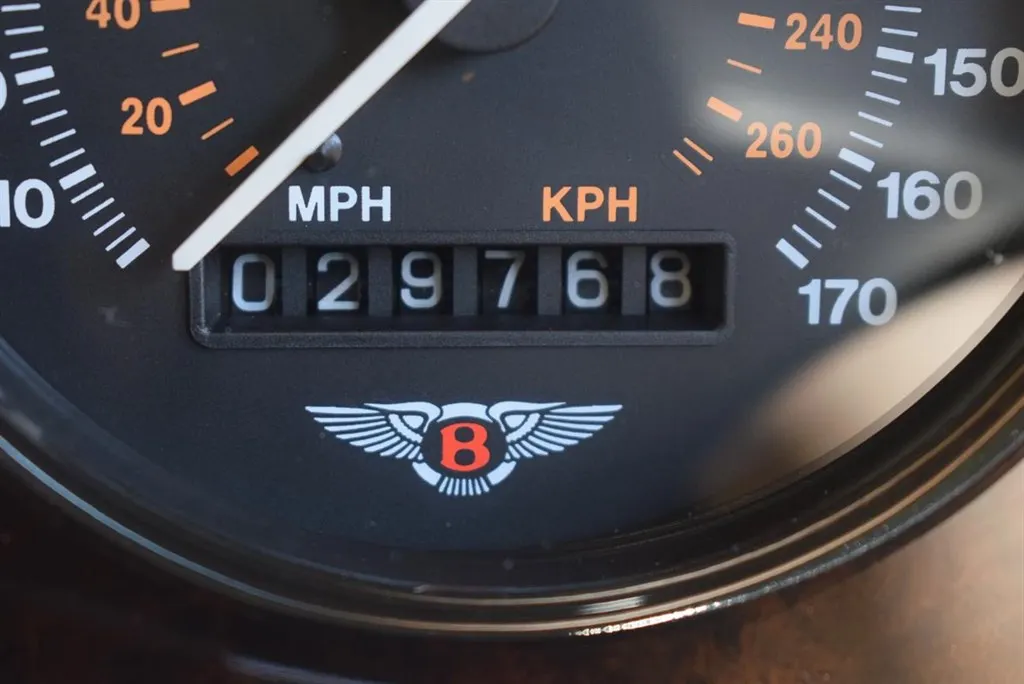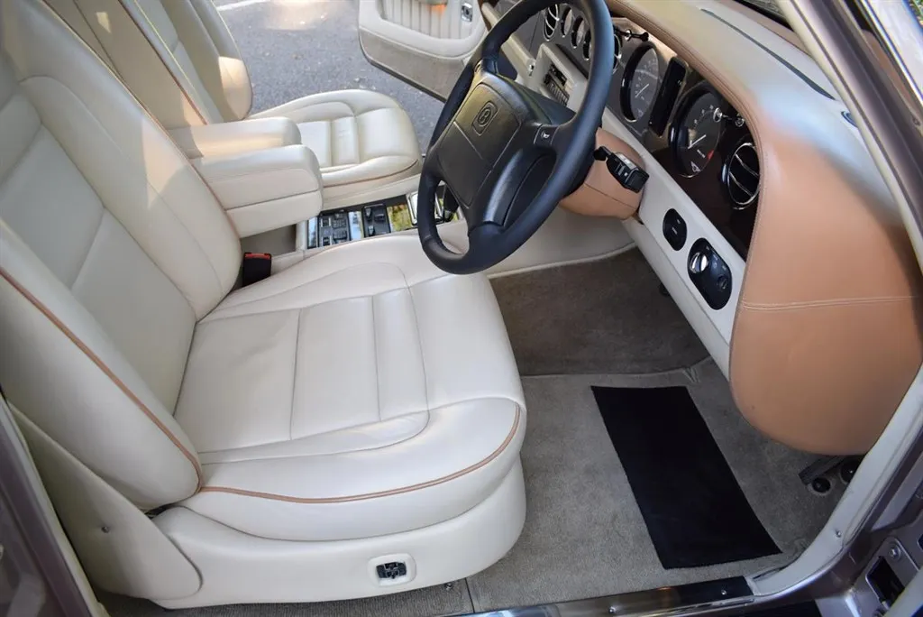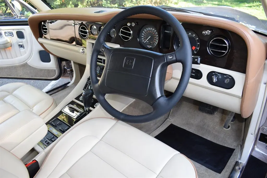 1995 Bentley Turbo S Limited Edition. This car is number 43 of 75, with only 15 cars produced for the UK. With over 402 BHP the spec. of the Turbo S includes wrap around bumpers, 17 inch alloys and Sports style seats to cope with the extra performance. This car is in stunning condition, finished in unmarked Silica, with Parchment interior with Tan piping, Cream carpets piped in Parchment and fitted with picnic tables to the rear. The wood veneers are in dark stained Walnut with embedded B’s. Only 3 owners from new and just 29,770 miles with a full documented service history with no expense spared. A must for the collector, only £36,950