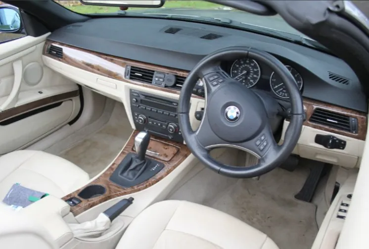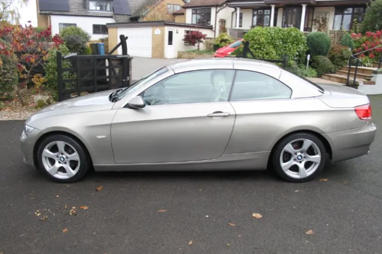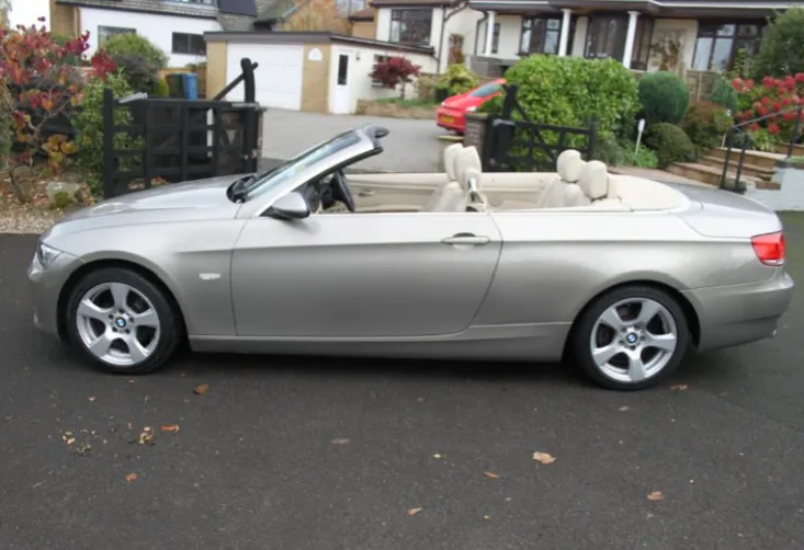 Here we have a delightful BMW 320iSE Auto Convertible finished in a Smoke Bronze with Magnolia Hide interior. The car has only covered 42000 miles and is showing three owners, the first two of which were husband and wife. The service book has 7 stamps in the book in accordance with miles travelled and will come with 12 months MOT. Everything works on the car. Electric Folding Metal Roof, Air Con. All Electric Windows. These are such good value now and at only £4995, what else can you get that’s as nice for that kind of money?