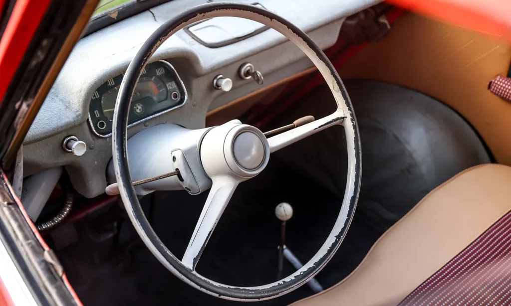 The BMW Isetta is one of the most iconic microcars of the 1950s, instantly recognizable for its unusual egg-shaped body and distinctive front-opening door. Originally designed by the Italian company Iso SpA, the Isetta was licensed by BMW in 1954. At the time, BMW was struggling financially, and the Isetta offered an affordable solution to Germany's growing demand for small, economical vehicles in the post-war era. Its compact size, low running costs, and quirky styling quickly made it a success. The car's design is unconventional compared to most automobiles. Instead of side doors, the entire front panel—including the steering wheel and dashboard—swings outward to allow access for driver and passenger. Its bubble-like form, large windows, and minimal footprint made it practical for city driving and parking on crowded European streets. The Isetta could seat two adults comfortably, with just enough room behind the seats for small luggage or groceries. Power came from a single-cylinder, four-stroke engine derived from BMW's motorcycle line. Early models featured a 247cc engine, producing around 12bhp. This modest output was enough to propel the lightweight car to a top speed of about 50 miles per hour (80 km/h). Fuel economy was one of its strongest selling points, often reaching over 50 miles per gallon, which was particularly appealing during a time when efficiency was more important than performance.