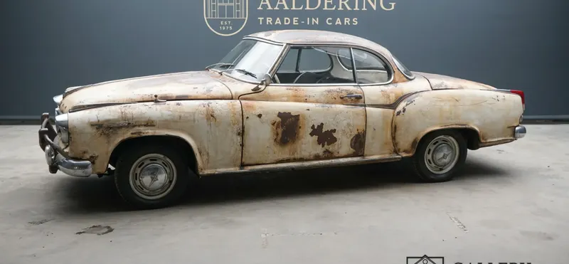 In 1954 Borgward presented the Isabella. Initially the 2-door saloon was to be called the Hansa 1500, but strong support from employees and the press swayed the company to use the test vehicle name of Isabella. The Hansa 1500 still persisted to be used in the first few years. In 1957 Borgward decided to produce a slimmer 2+2 coupé. Many Borgward enthusiasts believe it is the prettiest the brand ever made. The Borgward is no cheap car, being considerably more expensive than its Ford and Opel competitors but not quite as expensive as a Mercedes-Benz. The monocoque bodywork is unusual for its time and the press was full of praise. Under the bonnet we find a 1,493 cc four-cylinder engine producing 75 hp. This Isabella was initially supplied in June 1957, the first production year of the Coupé, making this early vehicle even more desirable. In 1961 the car arrived in the Netherlands before finally officially being registered in 1963. The best bit we can report on is the fact the one and only Dutch owner kept the car until 2023, an amazing 60 years! We can truly claim this special car has a unique provenance. That sole Dutch owner kept all documentation in tidy order with invoices going back to the 60’s. Other information has also been preserved featuring photos of the car’s restoration, original booklets, the Borgward register book with lot of stickers covering many years of active participation as well as other unique items normally lost in time. The car is an older restoration and the photos show it was taken back to bare metal. Following its restoration the car was only ever used recreationally. That has left us with a particularly fine vehicle. As the car was restored some years ago it gives the impression of the car being in original condition rather than being recently over-restored. That does not take away from the impression you get that this is a beautifully looking Borgward. The internal quality matches the exterior, not just the finish but also the absence of any damage and broken items. It gives one the feeling of being in a time-capsule. The Isabella is of course a fine place to be in with its swanky art-deco style dashboard. The seats have been tastefully upholstered in tow-tone finish and are very comfortable. The Borgward’s ride is tremendous. The comfortable seats, the easy to use gearstick navigates nicely through its four gears. The engine feels lively adding to your overall driving pleasure. The Isabella’s brakes and steering are all in great order thanks to the fine braking system and well-maintained suspension. If you are looking for a stylish classic, fully ready to tackle many a mile, then this coupé is an unusual but very good choice. Price reduction from € 49,950,- to € 44,950,- Gallery Aaldering is Europe’s leading Classic Cars specialist since 1975! Always 400 Classic and Sportscars in stock, please visit www.gallery-aaldering.com for the current stock list (all offered cars are available in our showroom) and further information. We are located near the German border, 95 km from Düsseldorf and 90 km from Amsterdam. So easy traveling by plane, train, taxi and car. Transport and worldwide shipping can be arranged. No duties/import costs within Europe. We buy, sell and provide consignment sales (selling on behalf of the owner). We can arrange/provide registration/papers for our German (H-Kennzeichen, TÜV, Fahrzeugbrief, Wertgutachten usw.) and Benelux customers. Gallery Aaldering, Arnhemsestraat 47, 6971 AP Brummen, The Netherlands. Tel: 0031-575-564055. Quality, experience and transparency is what sets us apart. We look forward to welcoming you in our showroom.