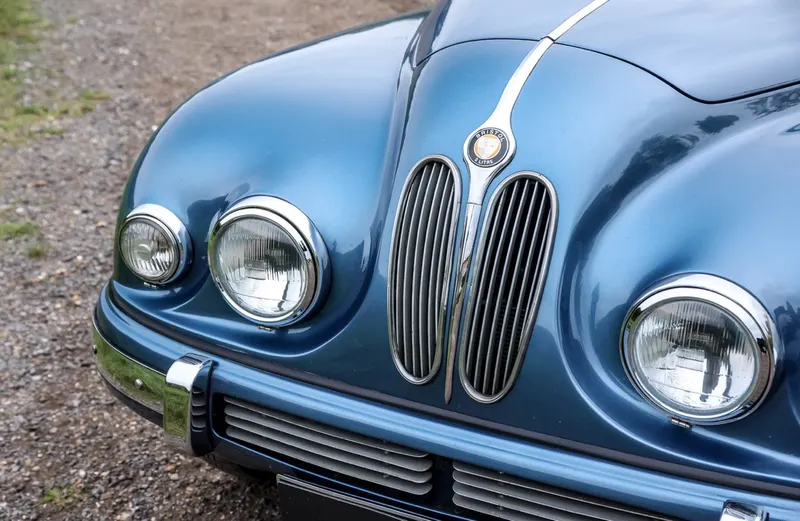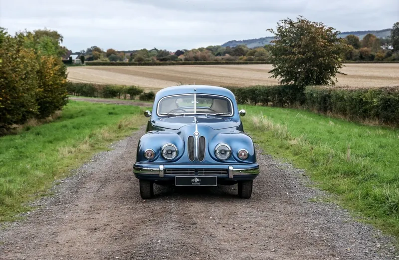 . 2.2 Litre 110 series engine rebuilt by IN Racing with Cosworth pistons and high torque camshaft. . 406 type front cross member and anti-roll bar with IN Racing rebuilt front suspension and rear torsion bar adjusters fitted. . Front disc brakes. . Bristol BWCR gearbox with magnesium remote gear change and Laycock A-type overdrive. . Electronic 123 ignition, with electric fuel pump with regulator. Electric fan fitted with auto fan controller. . Extensive history file with bills in excess of £115k. . Bodywork restoration by Mitchell Motors. The Bristol 401 offered here at Autostorico is a March 1953 example finished in light Blue metallic with Cream leather interior and Brown piping. 401/1192 (Chassis number) was first registered to Kellett (Wools) Ltd, Yorkshire on 21stMarch 1953 and has remained in the United Kingdom passing through several owners. Having been maintained to the highest possible standard this stunning example has undergone a no expense sparred body off chassis restoration and documented mechanical rebuild. Its successfully competed multiple times in the ’Tour Britannia’ and remains in first class condition. Supplied with an extensive history file including current V5 registration document, previous MOT’s, numerous invoices and other related material. Viewing strictly by appointment only.
