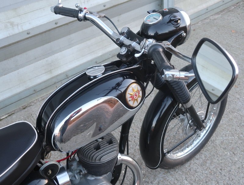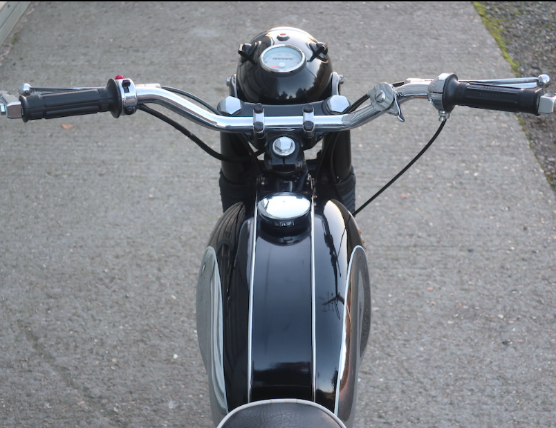 Produced between 1969 and 1971 the B175 was the final incarnation of the Bantam model, the 175cc two stroke engine produced about 12 horse power which was enough to propel the bike to 65 mph through a 4 speed gearbox. This fine restored example was registered 5th Oct.1970 and has had 6 owners in total, currently showing 11,613 miles. Retaining its original engine and registration number it remains in nice condition and is in good running order.
