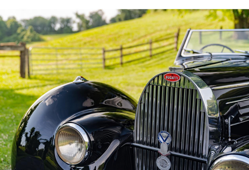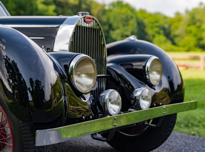 1938 Bugatti Type 57 Stelvio Cabriolet A Matching numbers car with original engine number 496 in situ. - Chassis # 57679 USA Registered. - Engine # 496 - Ordered New By Francis Curzon, The 5th Earl Howe - Featuring A Rich History & Unique Gangloff Design Attributes - Complete Mechanical Restoration Completed by Klopper Engineering Francis Richard Henry Penn Curzon, more formally known as the 5th Earl Howe, was born on May 1st 1884 in Mayfair, London. As a benefactor of a well-healed family with close ties to government, Francis Curzon followed family tradition and joined the Naval Reserve immediately following his education. There he served until the end of World War I, and in 1918 began his career in politics through 1929. Throughout all of this, there was a keen interest in motorcars but his duty to Queen and Country kept him focused. It wasn’t until 1928, at the age of 44 that his racing career started. The Irish Grand Prix introduced Lord Howe to the sport in a Bugatti Type 43, and with such close ties to the Bentley Boys, Lord Howe was soon racing for the Bentley Factory Team. Between 1929 and 1935 Lord Howe entered the 24 Hours of LeMans 6 times. The pinnacle of Lord Howe’s career came in the way of back-to-back wins behind the wheel of an Alfa Romeo. The first in 1930 at the helm of an Alfa Romeo 6C 1750GS where he took a class win at the LeMans 24 hour race. Again in 1931, he was victorious with co-driver Henry Birkin in an Alfa Romeo 8C 2300LM for the overall win. Even though an accident in 1937 rendered him unable to continue racing, he continued his motorsports career in a more political fashion. Lord Howe took a great interest in educating, promoting, and supporting all things motorsport. He became VP of the FIA, delivered numerous speeches at the House of Lords, and even remained president of the British Racing Drivers Club which he co-founded until his passing in 1964. During his lifetime, Lord Howe was behind the wheel of many interesting cars. Some he owned and kept on his estate, some he simply piloted to victory. Vintage & Prestige has the unique opportunity to offer Lord Howe’s 1938 Bugatti Type 57 Stelvio, with coachwork by Gangloff. Chassis # 57679 was invoiced to Whitehouse Motors in July of 1938. Per the Type 57 registry, this example left Molsheim in May of 1938 to be further fitted with coachwork by Gangloff in Colmar. There, it received special touches such as a special ordered hood per the build notes. As well as headlights in the fenders and is reportedly the first Type 57 to be finished in all black from new. 57679 was finished in late June of 1938 with the total invoiced amount being 74,635 Francs. 57679 was then delivered to the Earls Court Motor Show on October 1st then shortly after delivered to its first owner, Earl Howe. A mechanical restoration was completed on 57679 by Klopper Engineering. With such a well-preserved appearance, minimal work was completed on the cosmetic aspects of the car. It still retains what appears to be a very sturdy lacquer paint job that presents nicely with only a few minor imperfections to note. The interior was also left alone, though likely received work at other points in its life. It appears largely original with a lovely patina on the leather and other items. It presents as a beautiful combination of preservation with superb mechanical functionality. Thereafter, 57679 completed multiple tours and rallies from 2012-2015 including the International Bugatti Rally in Vaals in 2012 and Scotland in 2013. It also performed flawlessly during the Transappenica Rally in Italy and Croatia. These merits further solidify its current condition as a strong tour worthy example that can also be respectably shown and ultimately enjoyed no matter the use. Like many great cars, Bugatti’s have a way of capturing history. Some of the most interesting people of our time were drawn to the most unique cars of the period. If a car such as this was able to captivate someone as lively as Francis Curzon. With all of those fabulous racing achievements in the best cars of the day. Then this is a car worthy of any serious collection. A recent expenditure of some US$36,000 has recently been spent upon the car to cure smoking form the valves. Sargent Metal works, the Bugatti experts who perfomred the work noted the following for which bills are on file: Will, we have just finished the valve seal redo on your T57.Here is what I found.The engine block is original and had been redone as Mr. Klopper said and then redid somewhat by him. What we found was that somebody had run copper tubes inside of the oil drain back tubes that are in the block from factory.Factory ones are steel and run through the waterjacket area on each side of the block and serve to drain oil back into the sump from above after lubricating the cam and followers.the factory ones are about 8.5mm id and there are 3 per side.They rot from the outside in as they sit in coolant or water in the block.The copper tubing is then inserted into the bad tube.Problem here is that the id of the copper tubing is now 6mm,down from the 8.5mm. This is a constriction in the oil getting out of the top end and down into the lower parts.So now the oil pools up into the camboxes and raises up and into the base of the valves and springs and guides. The original valves dont have seals like modern cars do,so oil gets pushed down the valve stem and into the combustion chamber,ie smoke....The fix is to remove the cambox covers,the cams,the cam gear covers and then the camboxes. We then pressurize the cylinder with air to hold the valves up and then we compress the springs and remove the keepers and put on a seal around the guide to valve and then use a different cover that can accept the seal underneath it. Do this 16 times and then go all back together with cleaned components and carful to keep the cam timing and all.We then cut the feed jets down a little just to lessen any oil buildup.I have seen this pro