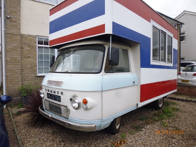 Commer PB, very rare, original box body van, ideal conversion to catering, camper, removals etc. On the button, 1725 engine with overdrive gearbox, starts and drives etc, internal lights and power points for hookup. Roller shutter rear or rear conversion kit supplied. Clear fibreglass original roof. All welding done on chassis whilst body was off. Needs work and finishing off to buyers requirements. Was to become a mobile food van but bereavement put an end to that plan. Owned for last 11 years.