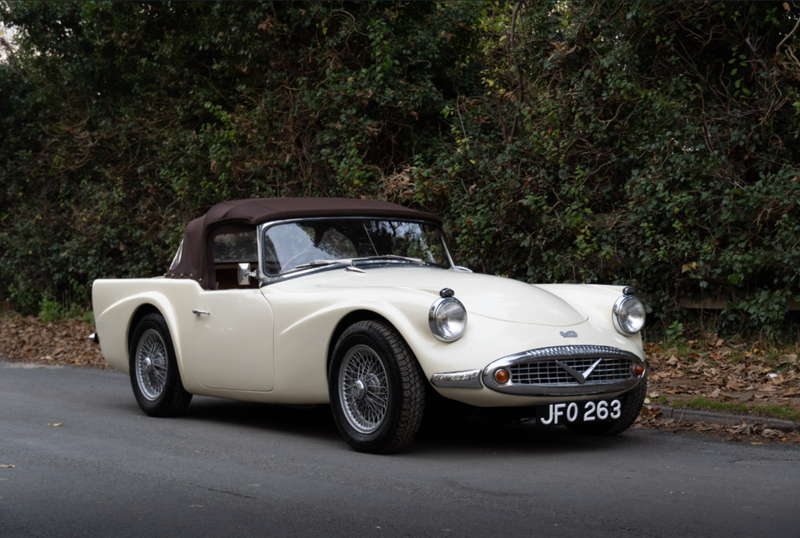 We are delighted to offer this outstanding Daimler Dart onto the market. This has to be one of the most proven overseas long distance touring Daimler's we've owned, and to further enhance the desirability of this car we can also confirm it’s a matching numbers car, still retaining its original colour combination and it boasts some superb modifications to include overdrive, rack and pinion steering and B spec chassis modifications. We first sold this car in 2016 to a regular customer in Scotland, 1000 faultless miles were covered in the Dart and it returned again in 2018 when we supplied it to a local customer. He has also covered around 1000 faultless miles in the Daimler. Prior to 2016, it had been with one owner near Leeds since 2009 and in seven years completed 20,000 miles having toured the Black Forest region of south western Germany, extensive touring of France passing through the Mont Blanc tunnel and trips to Italy touring through the North passing Lake Como and the Stelvio Pass. With overdrive, rack and pinion steering and a truly superb, perfectly running and performing engine and gearbox, this has to be one of the very best for long distance touring and it most certainly does not disappoint on the road with outstanding all round performance. From the Jaguar Daimler Heritage Trust certificate, we can confirm JFO 263 was manufactured on the 3rd May 1960 and supplied new in the UK by Mantle and Boarland. The Dart left the factory in Ivory with Brown trim and has been kept in original colours. We are told the Daimler was purchased new by a U.S serviceman and a Manufactures statement of build letter is included in the file of history confirming the car is of UK origin and was sold out of the UK to the Export market. The car returned to the UK and was back on British roads again by 1995 having had 'B' spec chassis modifications made. When we first supplied the Dart in 2016 our Malton Coachworks workshop facility fitted new front and rear brake pads and discs, new rear wheel bearings and supplied and fitted a brand new windscreen. The owner prior to 2016 had spent substantial money on taking the car to an outstanding level both in terms of cosmetics and mechanical condition and we have receipts for rack and pinion steering, an overdrive unit, track rod ends, re-conditioned radiator, new half shaft seals, poly bushed suspension, re-conditioned water pump, new distributor, new exhaust manifold, engine work to include new piston rings, exhaust valve guides, inlet valve guides, new gearbox seals, diff pinion oil seal, new clutch slave and master cylinder and new fuel pump. Invoices for cosmetic work total over £10,000 to include a full professional re-paint in March 2015 and a full re-trimmed upholstery and new hood in 2010. As result of the above expenditure and careful recent ownership it is no surprise the car is truly magnificent to drive with exceptional performance and handling. The fact the car has covered 22,000 miles and achieved such reliable Continental touring is evidence of the condition. The steering is immensely enhanced from the rack and pinion steering and with its recently overhauled brakes it stops efficiently. The engine ticks over and performs superbly, it holds excellent oil pressure and does not have any smoking on start up like so many Daimler V8's. The gearbox is excellent, robust and effortless to use, the overdrive enables even further relaxed high speed cruising and the car is responsive, quick and fantastic fun. JFO 263 presents superbly with an exceptional paint finish with no crazing. The body is fantastic with impressive panel gaps and the underside is top class with an exceptional chassis. With stunning chrome work, a first-class re-trimmed upholstery, stunning mohair hood plus cover and a highly detailed, first class engine bay this really is a fabulous machine that looks, sounds and performs superbly.