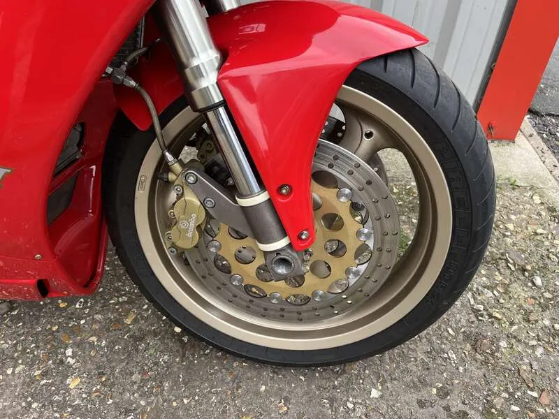 This lot will be auctioned via Iconic Auctioneers, The Iconic Motorcycle Sale at the NEC Classic Motor Show 2025 on Sunday the 9th of November, NEC, Birmingham, B40 1NT. The 916 was a masterpiece penned by Massimo Tamburini, universally regarded as one of the most beautiful and influential motorcycles ever made Powered by a 916cc, liquid-cooled, Desmodromic L-twin engine producing around 109bhp with a distinctive exhaust note Used Ducati’s signature lightweight and stiff tubular steel trellis frame for exceptional handling and a pure sport riding experience Featured an innovative, stylish and race-derived single-sided swingarm to allow for quicker rear wheel changes Introduced the revolutionary underseat dual exhaust system, a design feature copied by nearly every subsequent superbike Dating from 1995 this example presents really well and appears to be in excellent condition Recently serviced (mid 2025) with new timing belts, oil, filter 8,496 miles indicated. UK registered on a V5C. Current MOT valid until 20/07/2026