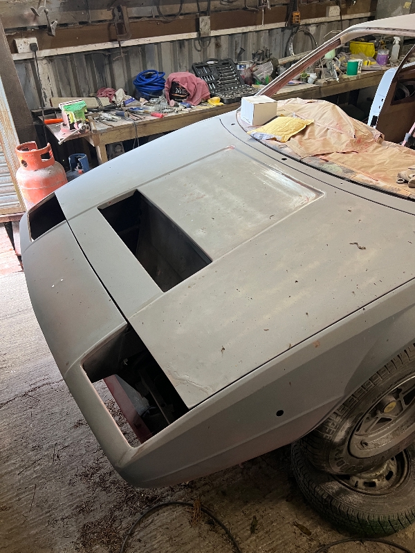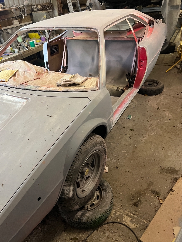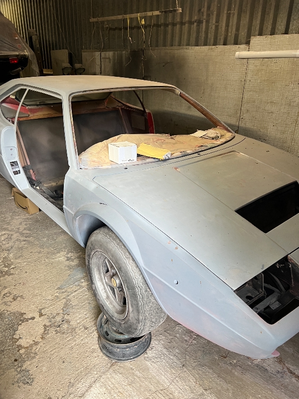 Here is a chance to get into the Ferrari world. Car has been stripped to bare metal and etching primer applied. Selling on behalf of a friend who is not well enough to complete. The car has 36000 miles on clock with service history and MoT history to back it up. Everything is there ( front screen damaged but obtainable so wants spraying and refitting but it will be a superb car when finished.