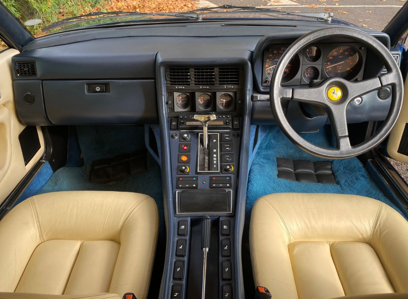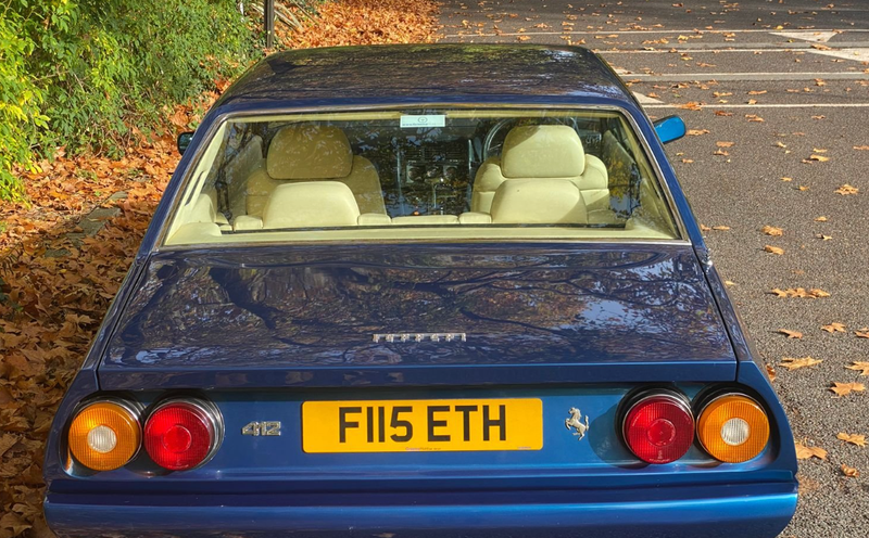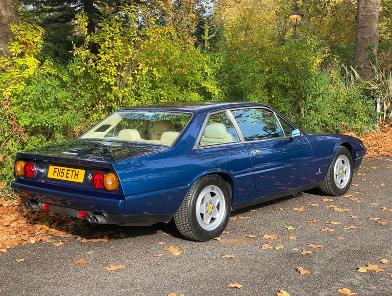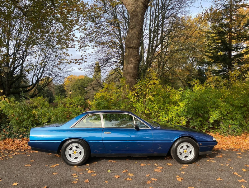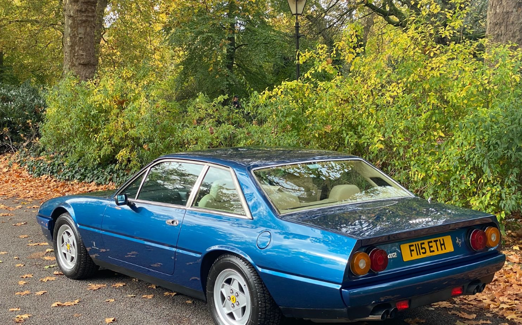 Ferrari 412 31.000 miles only Known to us for years Recent full engine rebuild 1989 Ferrari 412 Auto - 31.000 miles only The 412 is one of the most beautiful coupes ever offered by Ferrari and also one of the nicest to drive too When finished with Blue Chiaro with Crema interior, surely you hit the jack pot! Ferrari thought so, as this particular car was used to show off the elegant lines of the 412 at the London Motor Show at Earls Court She has a super low mileage, with a very thick history folder and more than immaculate condition in every area too We have owned this car on 3 occasions, and are so happy to have her back with us again We have used her over the summer period and she has been, simply, a joy, having run her in after her full engine rebuild (the head gaskets were required, and whilst there the owner thought, let's go the whole way Why not, it's less expensive than servicing his jet ! Anyhow, as you can see, expense is not an and she is in superb condition, having just had her maiden service after the build Everything works, whilst the interior & exterior are in immaculate condition Superb performance from the Columbo designed engine (no cam belts need to be changed) using the familiar Ferrari V12 lay out Capacity was upped from the previous models, now with 4942cc giving 340bhp & a similar torque output of 333 lb /ft - all of which equates to a very balanced power delivery all through the rev range Performance was more than acceptable for a full 4 seat Grand Tourer, with 60mph coming up in the mid 6 second bracket and a top speed of over 150mph Only 54 UK RHD 412 were registered here and this makes them a serious contender for the last under valued Ferrari on the block We love her