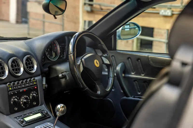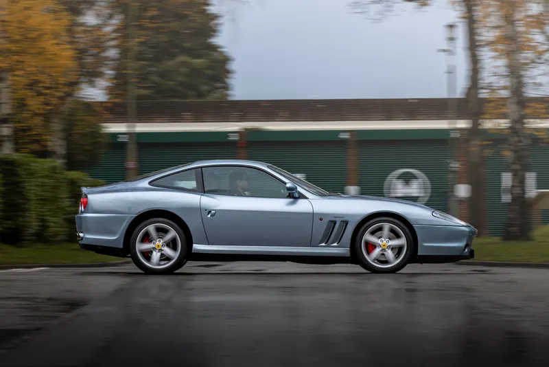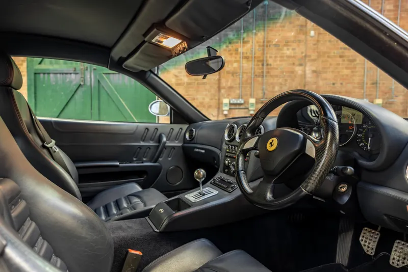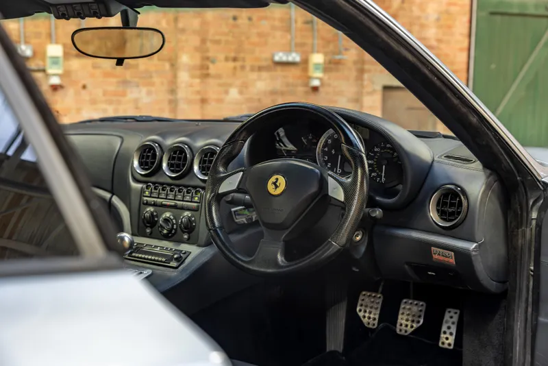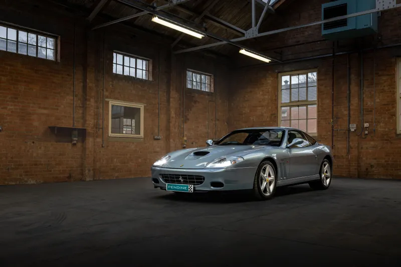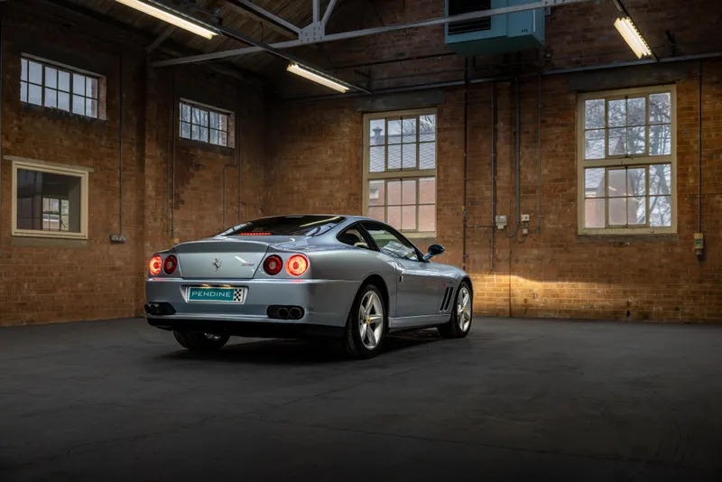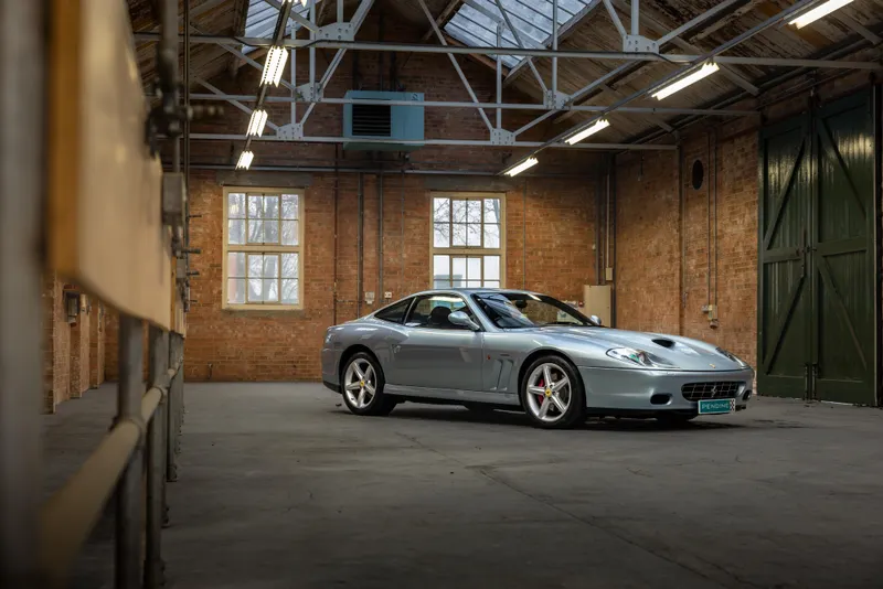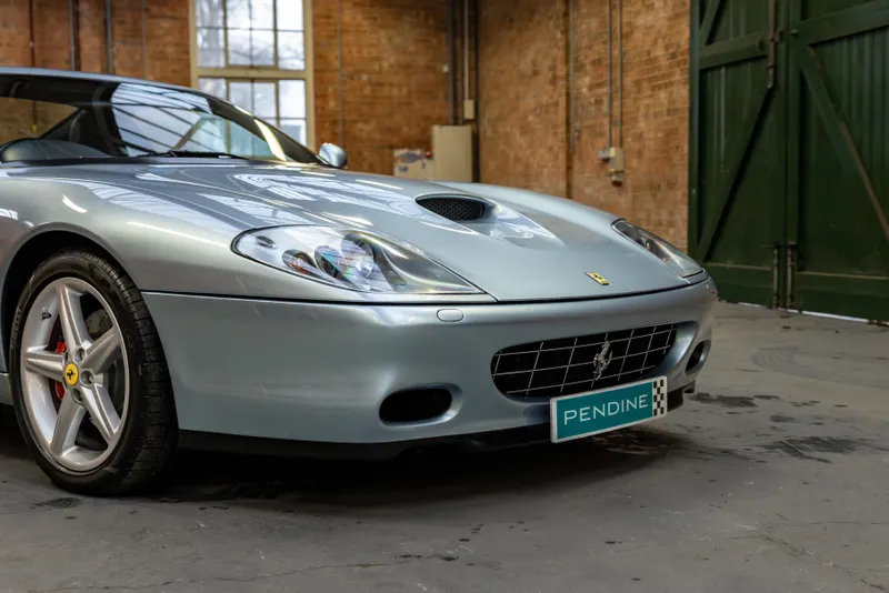The Ferrari 575M Maranello represents a particularly significant chapter in Ferrari’s modern history. Introduced in 2002 as the evolution of the much-loved 550 Maranello, the 575M refined the front-engined V12 formula with increased power, subtle chassis improvements and a more contemporary interior, while preserving the elegance and usability that defined Ferrari’s flagship GT. At its heart sits a 5.7 litre naturally aspirated V12 producing 508 bhp and 588 Nm of torque, driving the rear wheels and delivering a 0–60 mph time of 4.7 seconds and a top speed of 202 mph. While Ferrari heavily promoted its F1 automated manual gearbox during this period, the traditional open gated six-speed manual transmission remained available to those who knew what they wanted. Only a very small percentage of buyers chose it, a decision that has shaped how these cars are regarded today. With just 69 right-hand drive manual examples delivered, the 575M manual marks the end of an era for Ferrari. A large capacity naturally aspirated V12 paired with a proper manual gearbox is a combination that has become deeply significant to enthusiasts and collectors, not simply because of its rarity but because it delivers a driving experience that Ferrari no longer offers. Despite its performance, the 575M remains a remarkably usable grand tourer. It is refined, comfortable and effortless over distance, yet when paired with the manual gearbox, it becomes a far more engaging and rewarding car to drive. Delivered and first registered via Maranello Ferrari in April 2003, this example is superbly specified and beautifully maintained. It is fitted with the highly desirable six-speed manual gearbox and the sought after Fiorano Handling Package, which transforms the driving experience through revised suspension with lower and stiffer springs, a thicker anti roll bar, uprated brakes and revised wheel geometry. Finished in elegant Grigio Alloy, the car presents superbly. It sits on its original five spoke 18 inch alloy wheels and is supplied with a fitted red Ferrari indoor car cover. Within the last two years the paintwork has benefitted from professional detailing and ceramic coating as part of a wider exterior refresh, helping to preserve its finish. The interior is trimmed in dark blue leather and features optional factory fitted Daytona sports seats. The door cards, dashboard and seats are all finished in matching deep blue leather, complemented by deep blue carpets with matching overmats. Equipment includes electric seats with two memory functions for the driver, electric windows and mirrors, air conditioning and the original Becker sound system with six CD changer. A Parrot hands free system has also been installed. Importantly, the common issue of sticky buttons has been resolved with replacement switches fitted by Ferrari, meaning all controls present in excellent condition. A recent interior refurbishment and refresh has further enhanced the cabin. The original Ferrari toolkit in its tan leather folder and the original Ferrari inflation kit are both present. The most recent major service was completed by Ferrari specialist Bob Houghton in November 2025 at a cost exceeding £13,000. This included a comprehensive cambelt service along with the replacement of both front shock absorbers, ensuring the car is fully up to date and ready to be enjoyed immediately. In addition, a further £7,750 has been spent within the last two years on exterior and interior refurbishment work, leaving the car in exceptional condition throughout. With its highly desirable specification, elegant colour combination and comprehensive service history, this 575M is both beautifully presented and mechanically sorted. For the enthusiast or collector seeking one of the last truly analogue V12 Ferraris, it represents a compelling and increasingly sought-after opportunity. Available now for viewing and demonstration at Pendine’s Bicester Motion showroom. Service History 18/11/03 – Maranello Ferrari Surrey at 7,027 miles 28/10/04 – Carrs Ferrari Exeter at 15,053 miles 21/02/06 – R&D Automotive Ferrari Specialist at 24,439 miles 06/09/07 – Graypaul Ferrari Edinburgh at 27,336 miles 06/08/08 – Graypaul Ferrari Edinburgh at 33,580 miles 26/04/10 – Graypaul Ferrari Edinburgh at 36,800 miles 09/05/12 – Graypaul Ferrari Edinburgh at 44,973 miles 31/10/13 – Graypaul Ferrari Edinburgh at 49,359 miles 18/10/16 – Graypaul Ferrari Nottingham at 53,880 miles 31/07/20 – Shiltech Ferrari Specialist Loughborough at 56,379 miles 12/09/22 – Shiltech Ferrari Specialist at 57,156 miles 25/11/25 – Bob Houghton Ferrari Specialist at 57,379 miles
