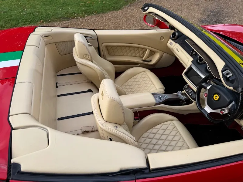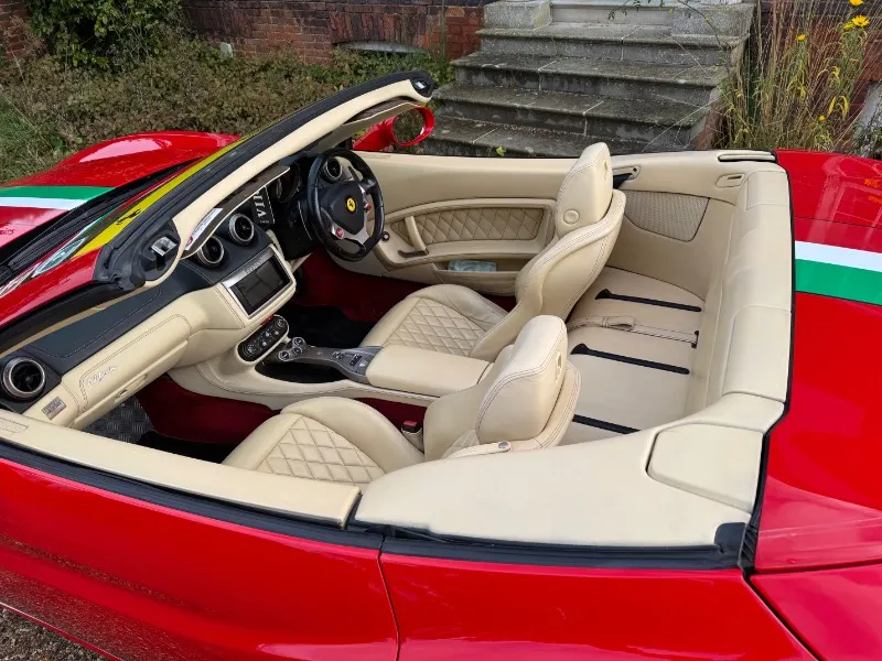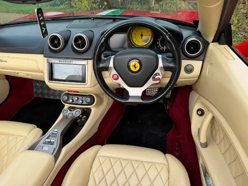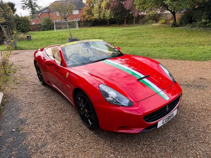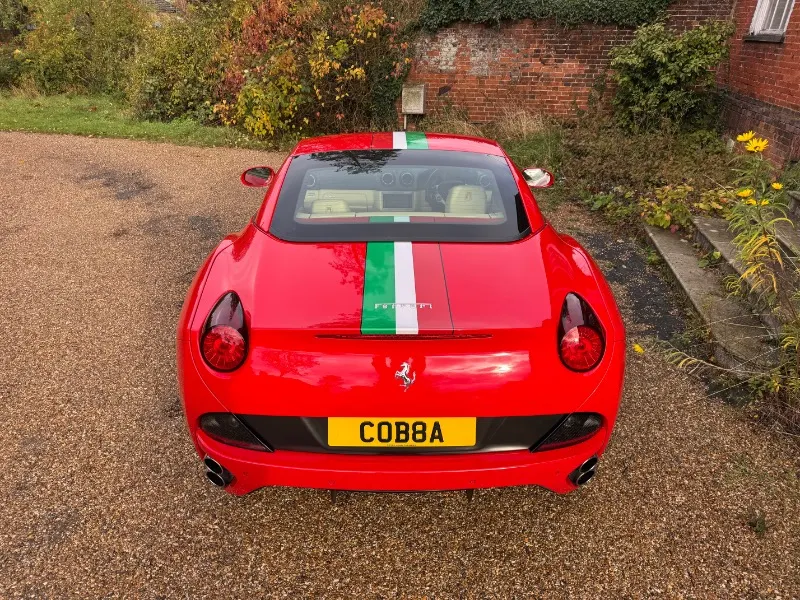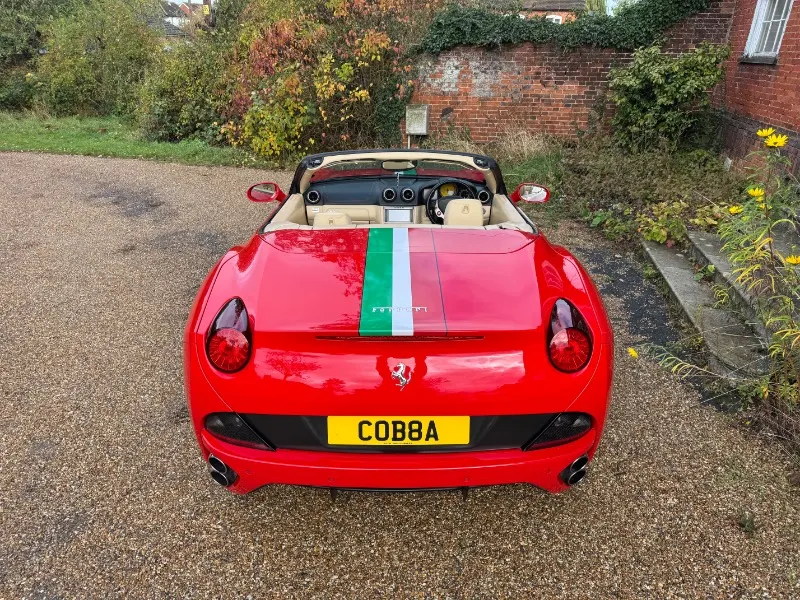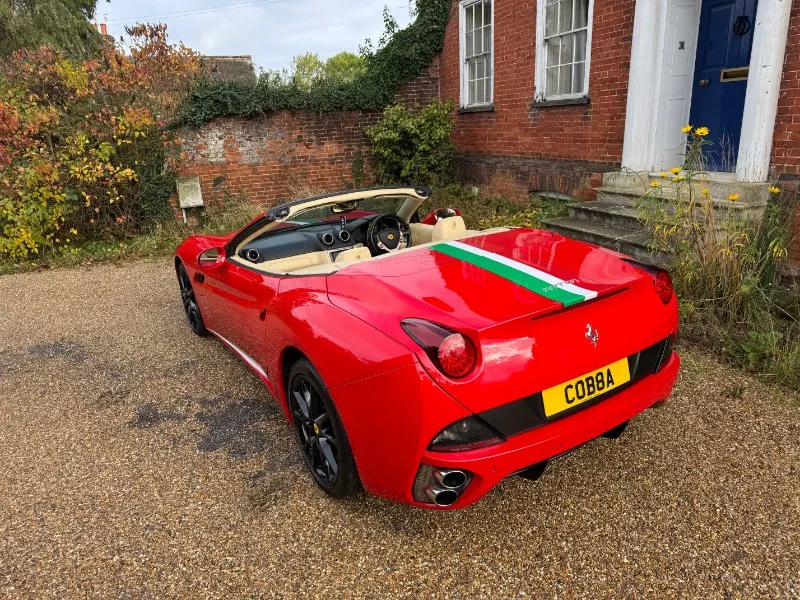 Ferrari California 4.3 F1 DCT Automatic Registered 31/03/2010 Only 36000 miles Finished in the unmistakable Rosso Corsa Red with Crema leather interior Removable graphics Scuderia metal shield badges . Diamond stitched leather interior with stitched and embossed head rests Full electric memory seats with heated seats, Sat nav and blue tooth phone preparation, Auto dimming rear view mirror, Front and rear parking sensors 20” Alloy wheels freshly finished in gloss black Giallo Modena brake callipers Electric folding convertible hardtop roof Powered by a naturally-aspirated 4.3 litre V8 engine producing 454hp/358lb ft with a surprising low kerb weight of 1,603kg giving it a 3.9sec 0-62 time and a top speed of 193mph. Full detailed Ferrari history is present with 11 main dealer services. And recent Ferrari specialist service A fabulous to drive useable Ferrari that represents fantastic value for money. (Private number plate not included) £59995