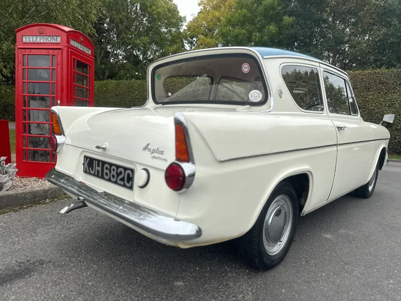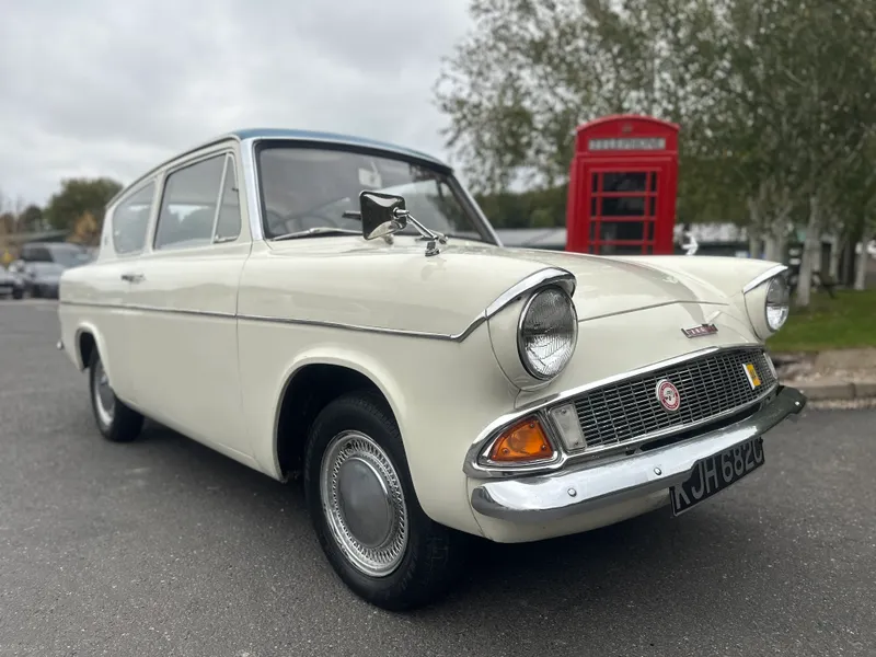 1965 Ford Anglia 105E Saloon Classic Charm, One Keeper! An unmissable opportunity to own a piece of British motoring history this Ford Anglia 105E Saloon, finished in timeless white, is a true survivor and a delight to behold. Originally manufactured in July 1965 and first registered overseas, this car has since made its way back to the UK and is now correctly registered as a historic vehicle. The V5 shows just one keeper, a rare and desirable feature that adds to its provenance. This Anglia is in absolutely lovely condition for its age, clearly cherished and well looked after. From the iconic reverse-rake rear window to the period interior, it’s a head-turner and a conversation starter wherever it goes. Key Details: 1. 0L (1000cc) engine – smooth, economical, and full of character Declared manufactured in 1965 Historic vehicle – tax and MOT exempt V5 present and showing just one registered keeper Originally registered overseas, now UK registered with age-related plate Drives beautifully and presents very well inside and out This car would make a fantastic show car, weekend cruiser or addition to any classic collection. With values on the rise and examples like this getting harder to find, it’s a great time to snap up this charming piece of Ford history. Contact us for more information or to arrange a viewing. You won’t be disappointed!