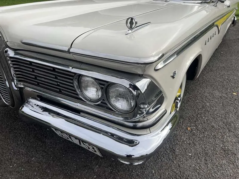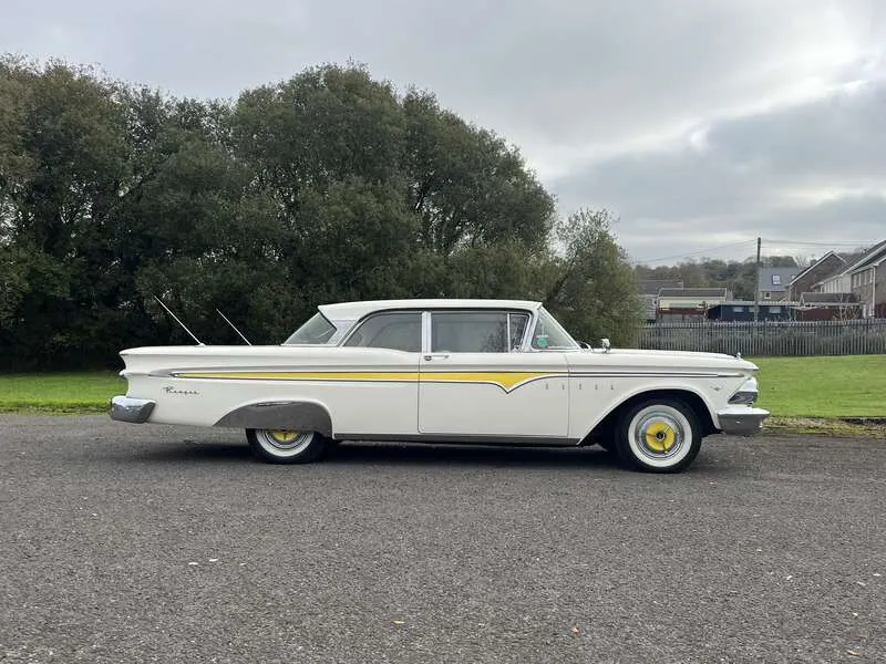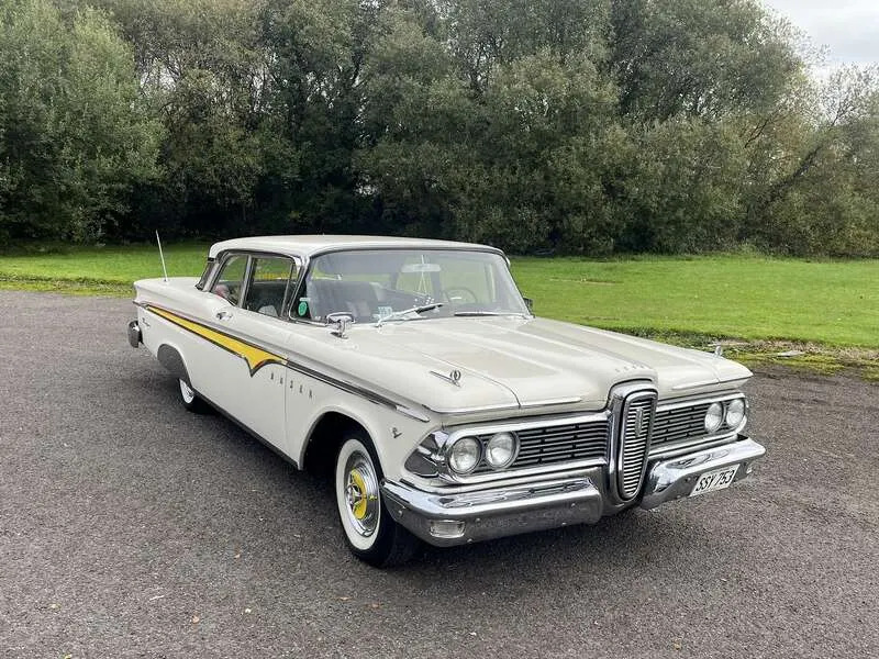 This lot will be auctioned via Iconic Auctioneers, The Classic Sale at the NEC Classic Motor Show 2025 on Sunday the 9th of November, NEC, Birmingham, B40 1NT. Manufactured in 1959, this first generation, facelift Edsel Ranger two-door saloon is fitted with the economical 3.7-litre straight-six Ford 'Mileage Maker' mated to a column shift 3-speed automatic An expensive footnote in the Ford Motor Company’s mid-century production history, the Edsel was intended as a fourth brand, but was discontinued after just three years The classic car enthusiast, however, adores rarity and this car was later owned by the CEO of the Edsel Owners Club of America, and later bought directly from his family by Eddie 'Mr Edsel' Clarkson who registered it into the UK on 15/01/1997 Purchased from Mr Clarkson’s widow by our vendor in 2019 joining his collection of American cars Regularly displayed and in demand with filmmakers, it even featured in Harrison Ford’s last appearance as Indiana Jones Imported with some 38,000 miles, the car has covered some 10,500 miles since and is presented to auction with an MOT valid until 30/01/2026, a long list of spares and a workshop manual A rare car, keenly estimated, with an impeccable provenance and even used by Wikipedia in their entry on the model