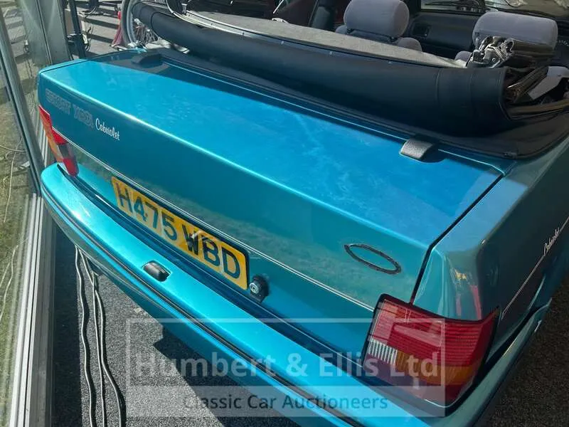 1990 FORD ESCORT 1.6I CABRIOLETMake: FordModel: Escort 1.6L CabrioletRegistration Plate: H475 WBDYear of Manufacture: 1990Mileage: 58000Mileage Type: MilesMOT: Will have 12 months at point of saleDrive: RHDTransmission: ManualFuel Type: PetrolEngine Size: 1597Engine Number: LL43880Body Type: CabrioletChassis Number: 43880Registered Former Keepers: 1Interior: GreyColour: BlueDoors: 2Seats: 4This vehicle is located near Burslem, Stoke-on-trent, ST6 from where it will need to be collected.Motorscan report and videos available on request.Viewing is by appointment, please contact the office to arrange. n/a