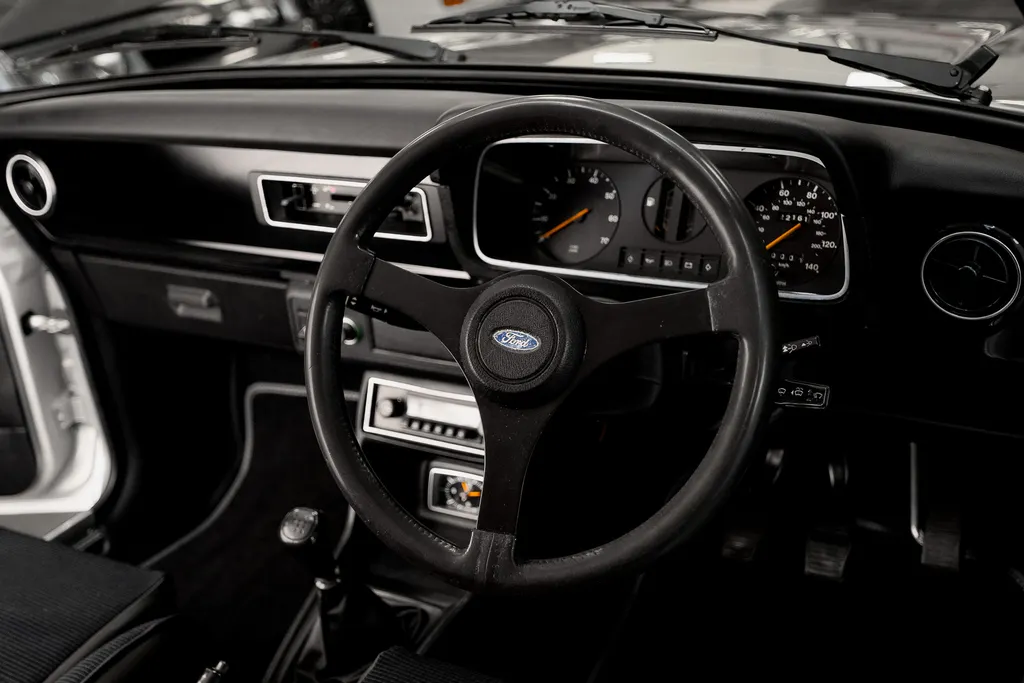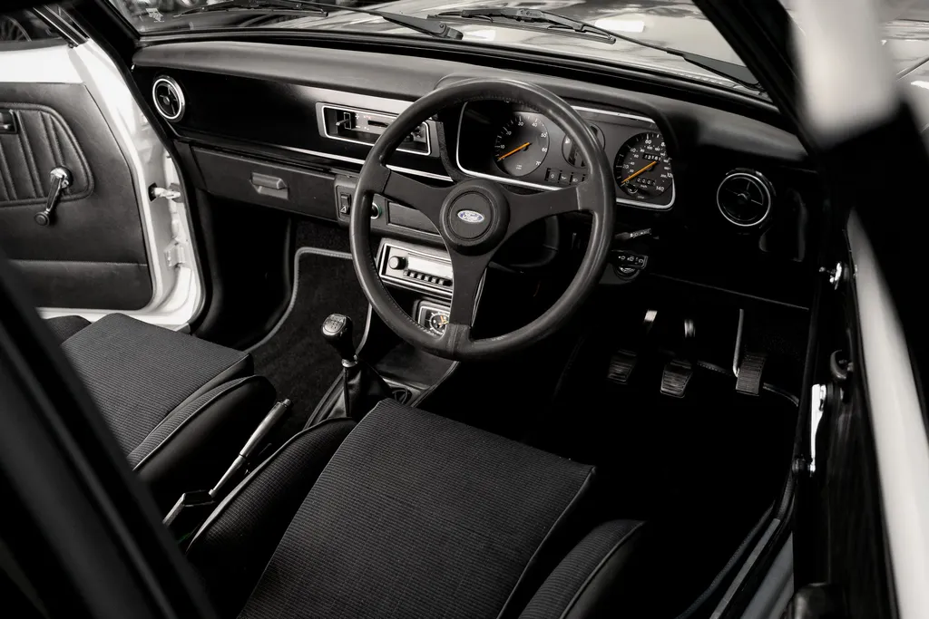 FOR SALE JF CLASSIC CARS are delighted to present a highly sought after and exceptionally well-preserved 1980 Mk2 Ford Escort Harrier Registered January 1980, A model recognised today as one of the most desirable special edition Escorts ever produced. Created to celebrate Ford’s motorsport success and based upon the popular Mk2 Escort, the Harrier was built in extremely limited numbers, making surviving examples rare and truly valuable to enthusiasts and collectors alike DESCRIPTION The Ford Escort Harrier occupies a very special place in the heritage of the Mk2 Escort range produced only for a short period between late 1979 and early 1980, it was offered exclusively as a celebratory special edition to acknowledge Ford’s continuing motorsport success, Only around 1,500 Harriers were ever manufactured, and of those, just 500 were produced in Strato Silver, the rarest and most sought-after colour specification of all. The Harrier was not just a colour-and-trim package it represented Ford’s last special edition Mk2 Escort before the transition into the front-wheel-drive Mk3 era. Today, a correct Harrier is considered one of the most desirable non-RS Mk2 variants, highly regarded by enthusiasts and commanding respect within the Ford collector community. The combination of limited production, short manufacturing window, and rare Strato Silver allocation positions this example as a standout investment opportunity one of the very few remaining cars that retains the authenticity and originality required to satisfy even the most knowledgeable aficionado. EXTERNAL This Mk2 Harrier presents with an exceptionally well-preserved exterior that reads as both authentic and highly desirable. Finished in the optional dealer Strato Silver, the paint displays a uniform gloss shine from nose to tail and the panel gaps are pin-sharp throughout a clear sign of careful ownership and correct preservation. At the front a bold black-slatted grille sits proudly, perfectly centred with the blue-oval Ford badge, and the original Hella headlamps remain crystal clear and entirely free from chips or damage. The front corner bumpers sit true and unmarked, flowing into the body with factory precision. Running the length of each flank are the Harrier’s unique three-tone blue body stripes, applied crisply and free from lifting or discolouration, giving the car its distinctive and correct period appearance. All external trims and badging are clean, crisp and correctly positioned, the door-mounted rear view mirrors retaining their original fit and finish The triple tinted glazing throughout is unscratched while the surrounding door and window rubbers remain supple and fresh not perished or hardened as is often seen on cars of this age. To the rear, the black wrap-around bumper sits straight and true and the boot spoiler aligns perfectly with the body, both showing the sort of condition associated with a low-use, cherished example. The rear light lenses are clear, chip and fade-free, completing an exterior that is consistent, correct and highly presentable. In short, this Harrier’s outward appearance is a textbook example of careful custodianship a rare and very special survivor INTERIOR Stepping inside this Mk2 Escort Harrier is like opening the door to a 1980 true period-correct, time-warp cabin that remains remarkably original. The Harrier-specific black Beta cloth seats present in very good condition throughout, the bolsters still offering that snug, supportive embrace the model is known for, with no sagging, splitting or excessive wear Iconic fishnet front headrests sit proudly atop the seats, and the rear bench is unmarked, looking as though it has seen minimal use over the past four decades. Both the front tilt mechanism and the rotary seat-adjustment wheel operate correctly, allowing smooth movement and confirming the car’s unmolested mechanical interior setup. The black door cards front and rear remain tidy and free from damage, housing original door furniture including manual wind-down windows and the unmistakably period manually-adjustable driver’s door mirror control wonderfully simple and charmingly analogue. Underfoot, the black carpet is clean and well-preserved, helped greatly by the early fitment of protective over-mats The dashboard remains as Ford intended minimalistic, functional, and full of seventies character. The glovebox sits low on the passenger side, with a round adjustable heater vent positioned just above. Slide-toggle ventilation controls sit centrally flanked by original push-button switchgear for hazards, rear screen heater, brake warning function and cigarette lighter all operating as expected. Ahead of the driver, the binnacle houses the essentials with clarity and simplicity tachometer to the left, fuel and temperature gauges centrally placed, and the speedometer to the right showing 22,161 miles. All obligatory warning lights illuminate and extinguish correctly on start-up. A final round heater vent to the right side completes a dashboard that is refreshingly honest, original and free from unnecessary modification. The three-spoke flat-face steering wheel presents very well while the four-speed manual gear lever and surround sit neatly and comfortably within the centre console operating precisely with the familiarity only a Ford gearbox offers. To finish, the cabin is complemented by its original Ford push-button radio, still in place the final detail in a cockpit that remains wonderfully pure, highly authentic and increasingly difficult to find in this condition. An interior not only preserved but celebrated exactly as the Harrier should be. ENGINE & TRANSMISSION Under the bonnet lies the factory-correct 1598cc Kent Crossflow engine, breathing through its original induction and presenting exactly as Ford intended. Start-up is crisp and clean, settling quickly into a steady idle without hesitation or smoke. Power delivery is robust, linear and willing, pulling strongly through 
