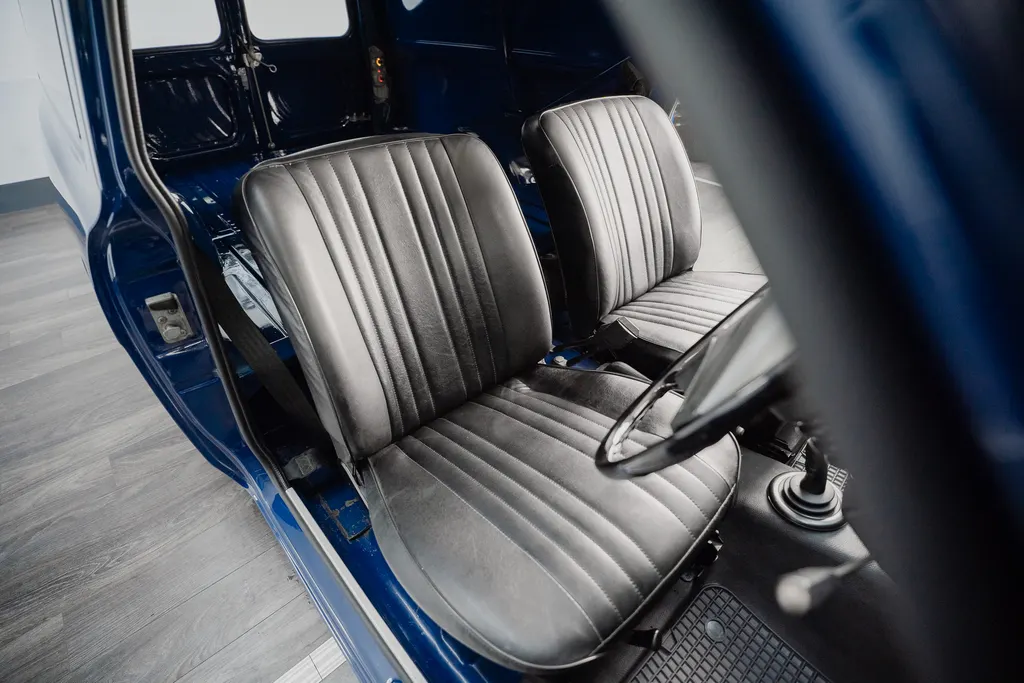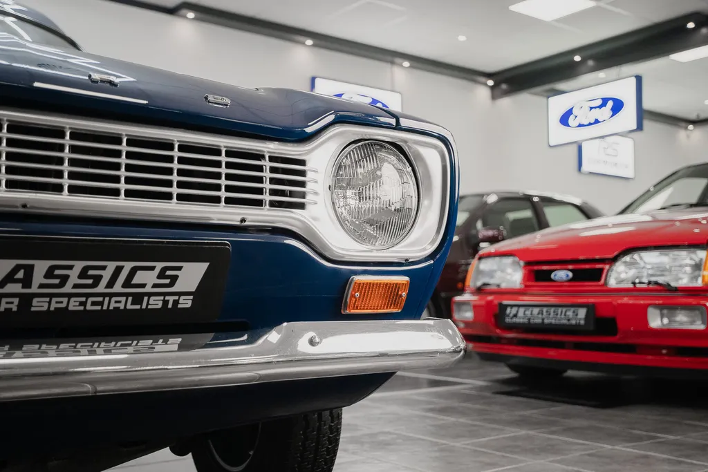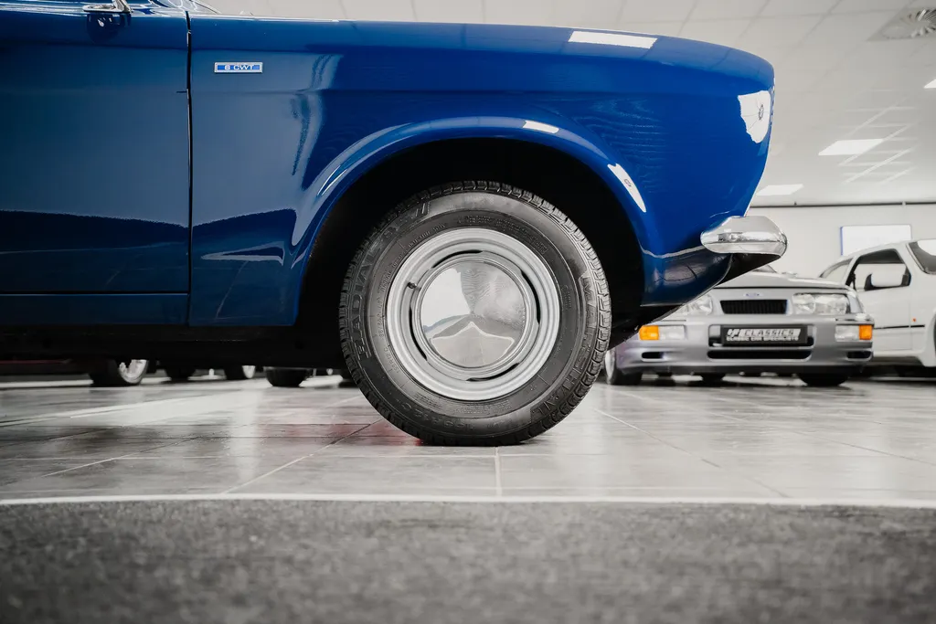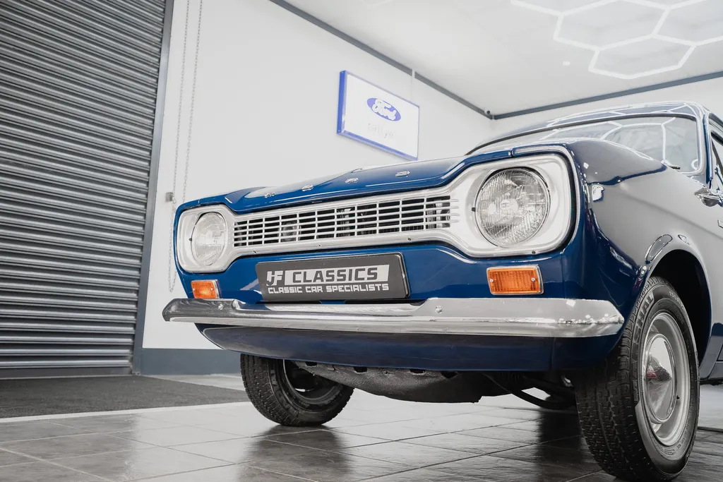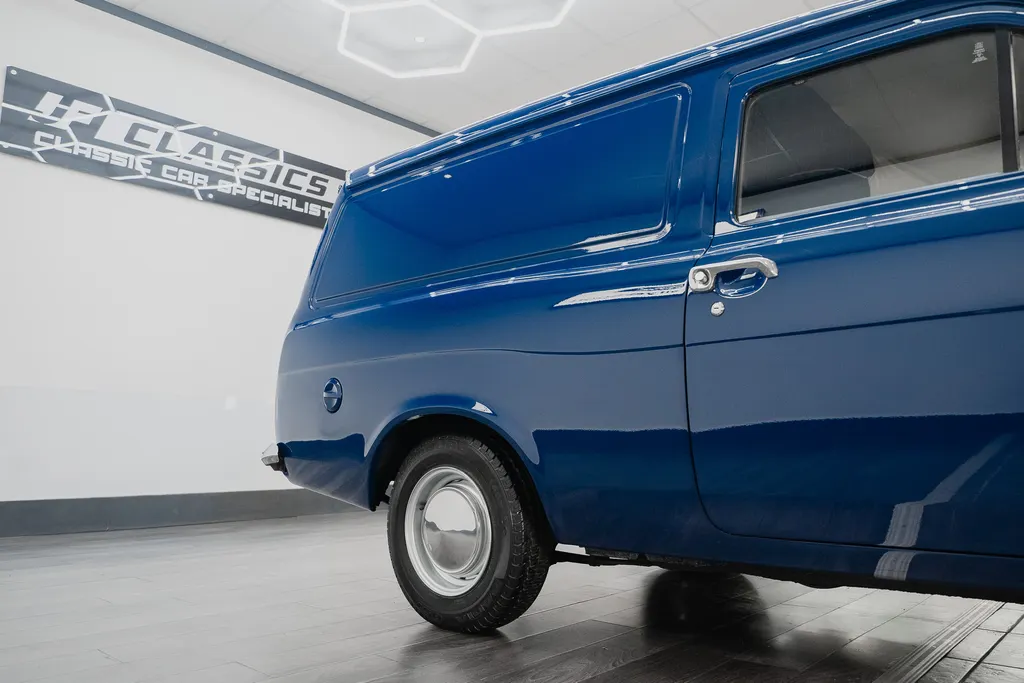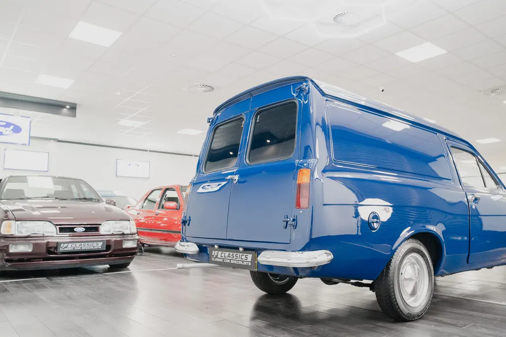 FOR SALE JF Classic Cars are pleased to offer a rare and increasingly hard-to-find 1974 Ford Escort Mk1 Van 6-cwt, With just three previous keepers, this example represents a genuine survivor from an era when the Escort was a cornerstone of British motoring and light commercial life DESCRIPTION The Ford Escort Mk1 was introduced to the UK market at the end of 1967, making its public debut at the Brussels Motor Show in January 1968, where it replaced the long-serving Ford Anglia. The Escort quickly proved itself to be a sales success along with cementing its place in automotive history. The van variant, introduced in April 1968, utilised largely new body panels unique to the commercial model, with the notable exception of the rear doors, which were carried over from the Anglia-based vans. Built for durability and practicality, the Escort Van became a familiar sight in trades, fleets and government service across the UK EXTERNAL This Mk1 Escort Van presents beautifully, retaining straight, uniform body panels exactly as Ford intended. Finished in Ford Marine / Royal Blue (Code G), the paintwork remains bright and glossy front to rear, complementing the van’s simple, purposeful lines The rear barn doors, carried over from the Anglia, operate correctly and are fitted with original chrome door handles. Both front and rear chrome bumpers sit straight, bright and true, while the original headlamps, front indicators and rear light clusters remain fitted a pleasing sign of originality rarely seen on surviving examples along with the legendary full frontal grill External rubbers present free from tarnish and fade along with glazing remaining periord, original and correct along with the lettering to the bonnet and badging to the rear Taken as a whole, the exterior of this Mk1 Ford Escort Van presents as an honest and well-preserved example, retaining the correct proportions, finishes and detailing that define these early light commercials. It carries itself with a genuine period presence, free from over-restoration, and displays a level of originality that is becoming increasingly difficult to find. The straight bodywork, correct trim and sympathetic presentation allow the vehicle’s character and history to speak for themselves, making it an ideal candidate for a collector who values authenticity as highly as appearance. INTERNAL The cabin is refreshingly simple and entirely functional, presenting well for its age. The front seats, permanently fixed to the shell are as per factory specification, trimmed in black vinyl period correct and in very good condition The spare wheel is neatly stowed behind the passenger seat beneath the rear load floor, maintaining practicality and originality. Flooring is in good condition throughout having no rips or tears. The dashboard and controls remain minimal, original and intact, featuring directional heater vents, slider heater controls, windscreen wiper control, pull out choke control and the large twin binnacle housing the speedometer and fuel gauge All push button switches remain original and work as they should, Coloum mounted indicator stalk working fine. The original dashboard and three-spoke steering wheel complete a cabin that remains pleasingly period-correct. The rear load area remains pleasingly in collector grade condition and provides a further indication of how carefully this Escort Van has been treated throughout its life. The loading floor, inner panels and door apertures all present very well ENGINE & TRANSMISSION Under the bonnet sits the correct Ford 1098cc Kent crossflow four-cylinder engine, a simple, robust and time-proven unit that played a key role in Ford’s success throughout the late 1960s and early 1970s. In standard form, as it remains today, the engine produces approximately 55bhp and delivers a smooth, dependable power output well suited to the lightweight 6-cwt Escort Van. The engine bay presents in very good clean condition, original ancilleries displaying preserved and loved previous ownership Fuel is delivered via the correct single-venturi Autolite downdraught carburettor, offering crisp throttle response and reliable cold and warm running. The engine pulls cleanly through the rev range, with no hesitation or undue noise, and remains remarkably tractable in everyday use Mated to the engine is the four-speed all-synchromesh manual gearbox, which selects gears positively and without protest, delivering smooth take-up and progressive acceleration. On the road, the drivetrain feels well balanced and period-correct, offering an engaging and surprisingly lively driving experience that perfectly complements the Escort’s light commercial roots WHEELS, TYRES & BRAKES This Escort Van rides on its correct pressed steel 12-inch asymmetrical well-base wheels, an important detail that underlines the originality of this 6-cwt van. Each wheel is finished in period-correct trim and complemented by chrome centre caps, maintaining an authentic factory appearance. The wheels are shod with 145 R12 tyres all round, each displaying even wear and ample remaining tread, contributing to stable and predictable road manners. Braking is handled by a hydraulically operated drum system front and rear, as originally specified for the light commercial Escort. While simple by modern standards, the system is well matched to the vehicle’s modest weight and delivers progressive, confidence-inspiring stopping power when driven as intended. Pedal feel is consistent and reassuring, reflecting correct operation and sympathetic use over its lifetime. Suspension is of traditional Escort Mk1 design, with MacPherson struts and coil springs to the front, combined with telescopic dampers, providing a compliant yet controlled ride. At the rear, a live axle located by semi-elliptic leaf springs delivers durability and load-carrying capability while maintaining the characteristic Escort handling balance. Together, the suspension, steering and braking systems work harm