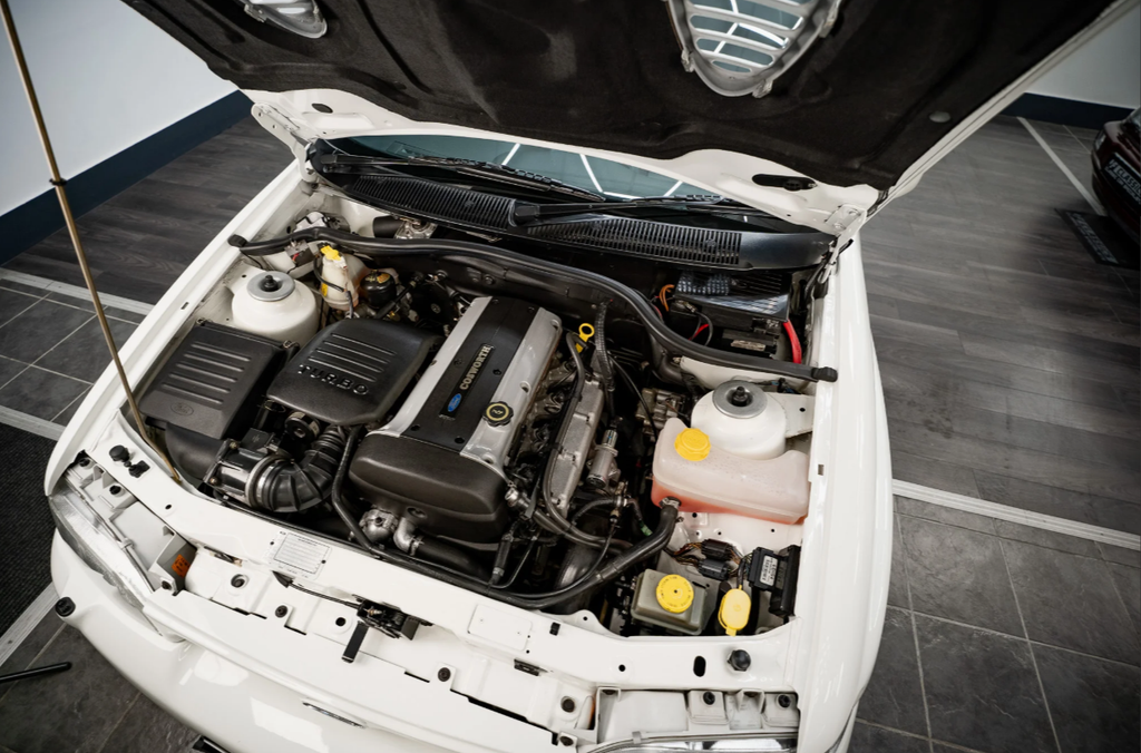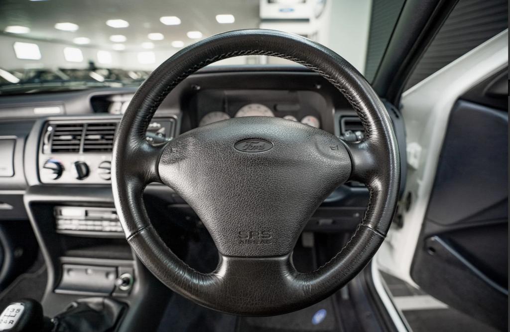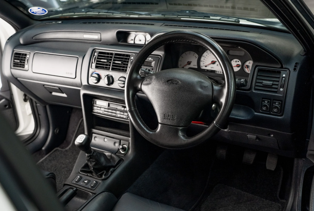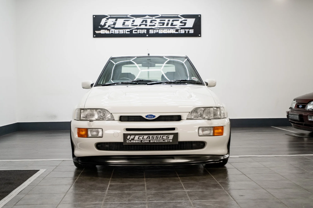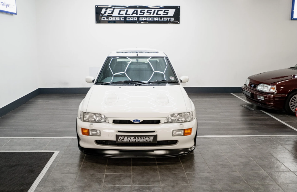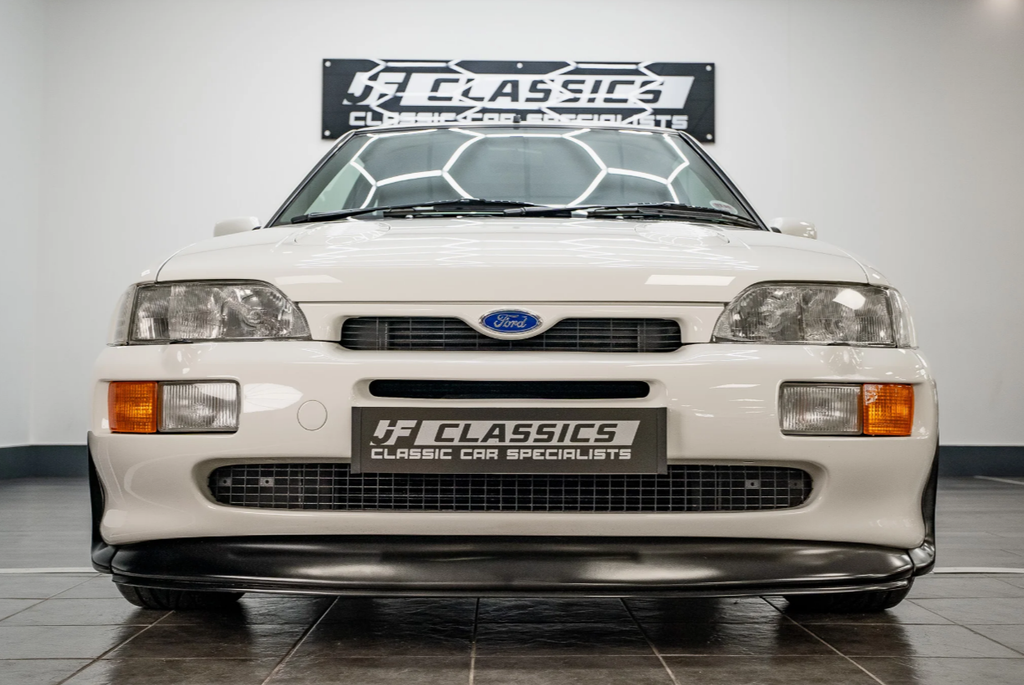 FOR SALE JF CLASSIC CARS are delighted to offer for sale an exceptionally rare and highly collectable 1995 Ford Escort RS Cosworth Small Turbo 'Aero Delete' model finished in iconic Diamond White and displaying an astonishingly low 12,462 miles from new DESCRIPTION First registered on 01/08/1995, this striking example represents the pinnacle of Ford’s fifth-generation Escort performance lineage. Built during the Escort’s production era of 1992–1996, the RS Cosworth was engineered from day one as a true Group A World Rally Championship homologation model, conceived with no compromise and developed by Ford’s Special Vehicle Engineering division. Crafted in collaboration with Karmann, who handled the specialised body construction, the RS Cosworth became an instant icon thanks to its motorsport pedigree, advanced aerodynamics, and explosive turbocharged performance. This particular car is among the rare and highly coveted Small Turbo Escort RS Cosworths, forming part of the final evolution and widely considered the most refined and best-mannered version for road use yet still every inch the rally-bred thoroughbred Ford intended. A beautifully preserved, collector-grade example that represents one of Ford’s greatest performance legends EXTERNAL Finished in Ford Diamond White (Paint Code B3), this RS Cosworth presents in outstanding condition, with a deep, uniform gloss that highlights the crisp lines and distinctive Cosworth profile. One of few factory colours ever offered on the model, Diamond White remains one of the most iconic and desirable finishes for any Escort Cosworth pure, clean, and unmistakably Ford Motorsport. The body-coloured front bumper with its contrasting black lower splitter remains superbly presented, complemented by the functional louvred bonnet vents and wing-mounted air extraction grilles, all designed to enhance cooling and aerodynamic efficiency. The signature aerodynamic rear wing, paired with the lower boot spoiler, stands proudly and remains a defining hallmark of the Cosworth’s rally-bred heritage. This Small Turbo example features the larger-style door mirrors, visually echoing the earlier Large Turbo cars. All exterior trims, original glazing, mouldings, and badges are in excellent condition, while the paintwork across every panel carries a rich shine with no dulling or distortion. A beautifully preserved exterior that reflects both the car’s low mileage and exceptional care INTERNAL As a LUX-optioned Escort RS Cosworth, this example offers one of the most refined and desirable cabin specifications available, presented here in truly exceptional condition. You are greeted by beautifully preserved perforated Raven leather Recaro sports seats, offering superb support with no sagging, creasing, or undue wear an unmistakable hallmark of its ultra-low mileage with the rears looking like they have never been sat in! The cabin is further enhanced by deep-pile luxury carpets and matching carpet-lined door bins, all of which remain clean, rich in colour, and wonderfully preserved. The specification reflects Ford’s flagship intent for the Cosworth, featuring the original Factory Model 2007 RDS radio/cassette system, opening rear quarter windows, electrically operated and heated door mirrors, Ford’s renowned ‘Quickclear’ heated windscreen and heated washer jets, a three-spoke leather steering wheel, electric sunroof, electric windows, central double locking with tailgate release, and a lights-on warning function. Rear passengers benefit from a centre armrest and head restraints, further enhancing comfort. Instrumentation is another highlight, with the desirable electroluminescent cluster displaying beautifully, alongside gauges for oil pressure, turbo boost, and voltage, as well as a quartz digital clock with ambient temperature. Subtle interior illumination, including map reading lights and glove box lighting, completes the upscale environment. Overall, the interior of this Escort RS Cosworth remains a beautifully preserved and luxurious space, unspoilt originality exactly as Ford intended ENGINE & TRANSMISSION Powering this rare Escort RS Cosworth is the legendary 2.0-litre 16-valve turbocharged YBT engine, a unit engineered specifically for motorsport and refined for road use. Under the bonnet sits the formidable Garrett AiResearch T35 turbocharger, delivering rapid spool-up, strong mid-range punch, and the unmistakable Cosworth character that defined a generation of performance Fords. This factory-correct setup produces an impressive 217 bhp at 6250 rpm, enabling explosive acceleration and a thrilling, uncompromised driving experience. Power is channelled through the robust MT-75 five-speed manual gearbox, offering a precise, mechanical shift feel that perfectly complements the car’s rally-bred nature. Traction and stability are handled by the iconic Ferguson permanent four-wheel drive system, featuring the characteristic 34/66 front-to-rear torque split that gives the RS Cosworth its planted front end and wonderfully adjustable rear balance. The result is exceptional grip, predictable handling, and the unmistakable rally-car confidence for which these cars are celebrated The drivetrain performs with exceptional refinement, with gear engagement feeling clean and accurate through every shift. Power delivery is seamless across the rev range, and the engine runs cleanly with no hesitation, smoke or fuss at idle, on boost, or during overrun. This is a wonderfully tight, well-mannered example that behaves exactly as a low-mileage, carefully preserved Cosworth should WHEELS, TYRES & BRAKES This exceptional and rare Escort RS Cosworth sits on its factory-original Ronal soft-spoke 8 x 16 Ford alloy wheels presented in outstanding, untouched condition clear evidence of its low mileage and careful preservation. Mounted to these are 225/45/16 Toyo Proxes tyres on all four corners, each displaying even, healthy tread depth and maintaining the correct Coswor