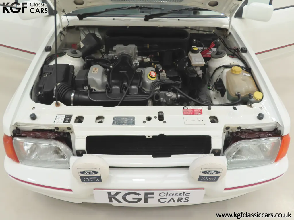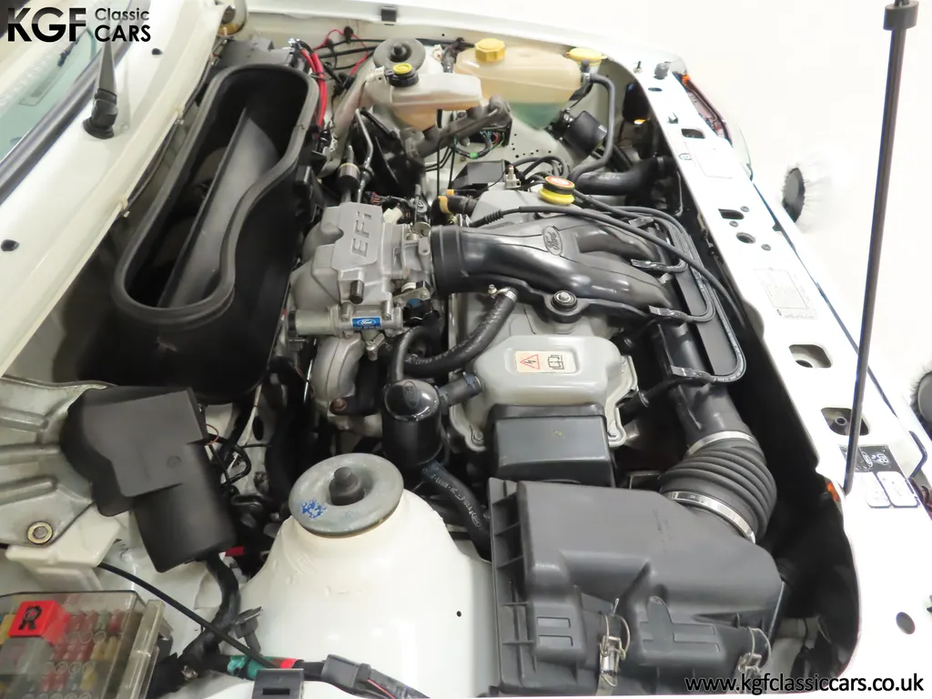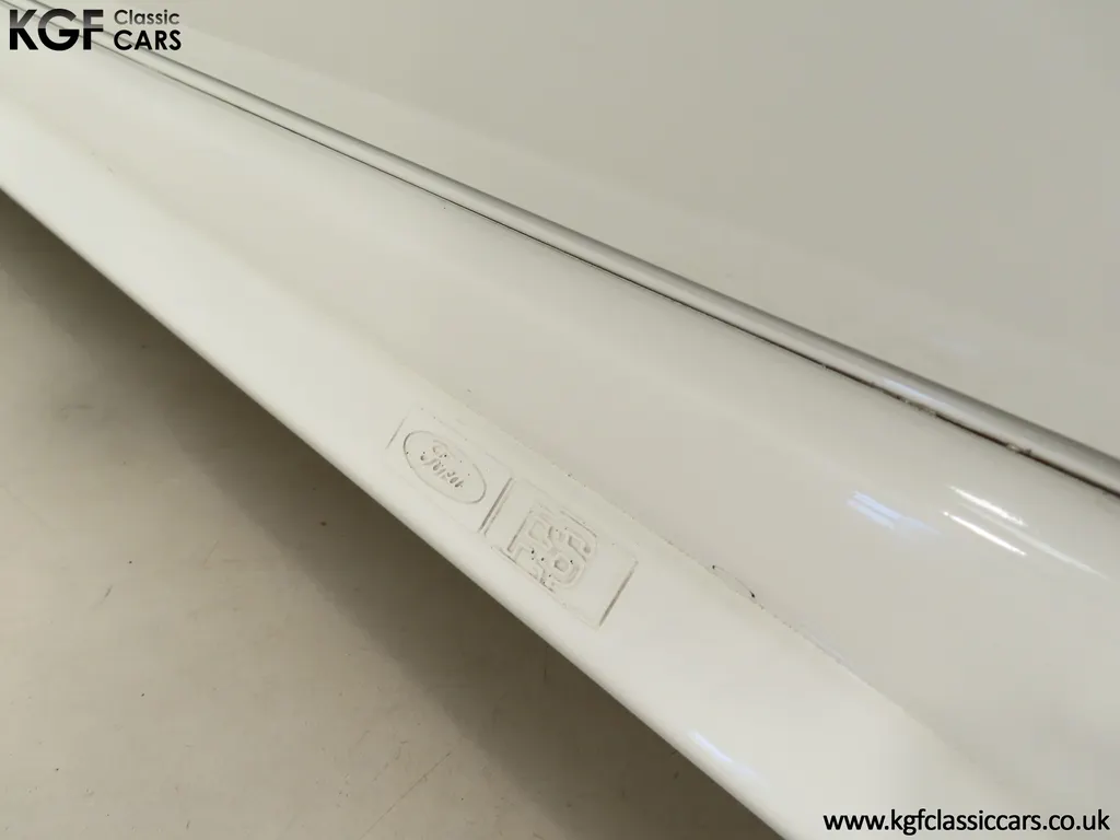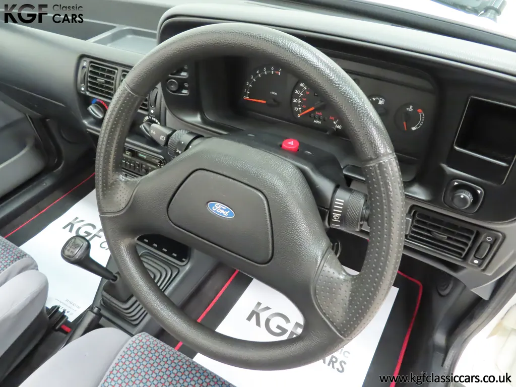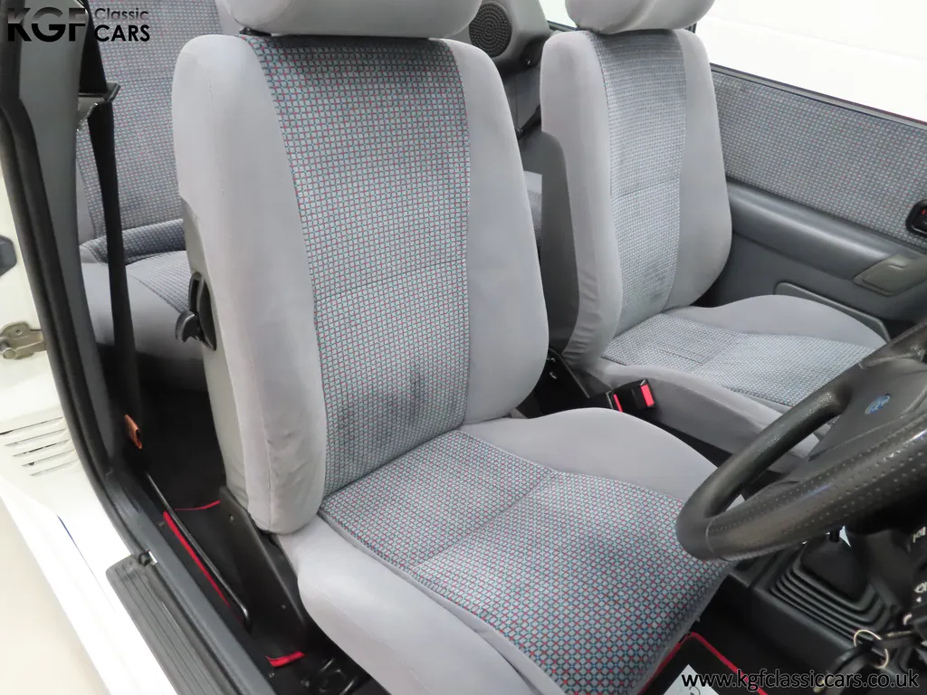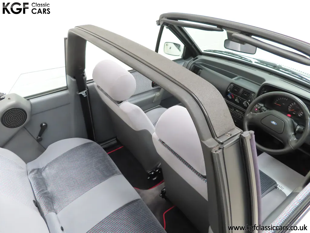 FOR SALE A retro icon Ford Escort XR3i Cabriolet 90-Spec with humongous history. EQUIPMENT 90-Spec body-coloured bumpers with protective red inserts, front spoiler, body-coloured door mirrors, driving lamps, white fast folding fully insulated vinyl roof with heated glass window, white hood cover, integral black roll bar, Quickclear heated front screen, electrically controlled and heated door mirrors, folding rear seats, lockable glovebox, wind-down rear quarter windows, cigar lighter, quartz digital clock, tachometer, Ford Model 2005 radio/cassette with anti-theft coding, four speakers and electric aerial. Factory Options: Alloy wheels size 6 x 14in. Dealer Options: Genuine RS Bodykit with side skirts and rear spoiler. Accessories: Toad CAT 1 alarm with microwave sensor, carpet mats, driving lamp covers. EXTERIOR This deliciously retro XR3i Cabriolet represents an original and unspoilt example of Fords iconic soft-top. Finished in striking Diamond White, (Code BK3), the paintwork boasts a fabulous uniform finish that clearly shows just how much the car has been cherished. All body panels are factory fitment with clearly defined inner wings stamps and the bodywork and shut lines are beautifully straight. Light touched in marks are visible upon close inspection but are entirely forgiven on such an original example as are the slightly faded XR3i decals. The Ford RS bodykit was fitted from new with RS logos clearly visible and the underside is remarkably well preserved. The white soft-top roof is beautifully clean, remains perfect in condition, fit and operation. The matching colour keyed hood cover for use when the hood is lowered is present and spotless. Factory Sigla glass and Ford light clusters remain fitted. INTERIOR A fun and practical option of retro soft-top motoring with space for five and a generous boot! The supportive sports seats trimmed with Zolda fabric in Shadow colour scheme, (Code LU), are in good condition with some very small holes to each front seat, barely noticeable. Door card shrinkage and scratched inner door handles are very common for the model, yet thankfully, there is only minor evidence on this example. The soft top headlining is very clean with no stains, rips or loose material and the heated rear glass screen free from scratches. The dashboard and switchgear are in superb order and all functions and controls operate including the standard Ford 2005 radio/cassette with electric aerial and the roof mounted digital clock. ENGINE & TRANSMISSION A delightfully crisp, responsive and free-revving 1.6 OHC (CVH) engine features electronic fuel injection with Ford’s own EEC IV engine management system (as fitted to later cars replacing the Bosch system). This increased power by 3bhp to give 108bhp to achieve an improved top speed of 116mph and 0-60mph in 9.7 seconds. The engine bay presentation is excellent with original factory stickers, labels and plates intact even on the slam panel! The car performs brilliantly and an expensive stainless steel exhaust replicating the original to give the characteristic rasp! The five-speed gearbox is light and precise and aids the enthusiastic driving XR owners are known for! WHEELS, TYRES & BRAKES Optional extra alloy wheels size 6 x 14in are in pristine condition and are shod in matching branded Goodyear Efficient Grip tyres covering little over 1,000 miles since being fitted in 2022. Stored inside the spare wheel is the original jack. The diagonally split dual-line servo assisted brakes stop the car straight and steady. HISTORY FILE Date of registration of this late 90 Spec example was the 4th July 1991 by Ford Main Dealer, Central Motor Company (Leicester) Ltd. Ownership of the car has been traced right back and the previous owner bought the car in 2016, the lady keeper prior to him having owned the car for around 20 years. The history file is humongous and dates back to when the car was new with masses of paperwork including MOT records dating back to the first in 1994. There are also service book records since the first service carried out in late 1991. Part of the impressive vehicle history is that the car was featured with the previous owner in the April 2018 issue of ClassicFord magazine whereby a prime example was required for a four-page ‘Buying Tips’ article. This very car was used in the feature and several copies of the magazine are in the folder. All handbooks are included as well as both seats of keys with alarm fobs and a Ford range brochure from 1990. In November 2025, the car was serviced and the cambelt and water pump were replaced. Now offered for sale due to the fastidious owner downsizing his collection of classic 1980’s cars, motorbikes and iconic memorabilia such as an unused Sinclair C5! Look no further for a beautifully cherished unspoilt example ready to use and impress at classic car shows and retro outings! MOT December 2026, HPI clear.