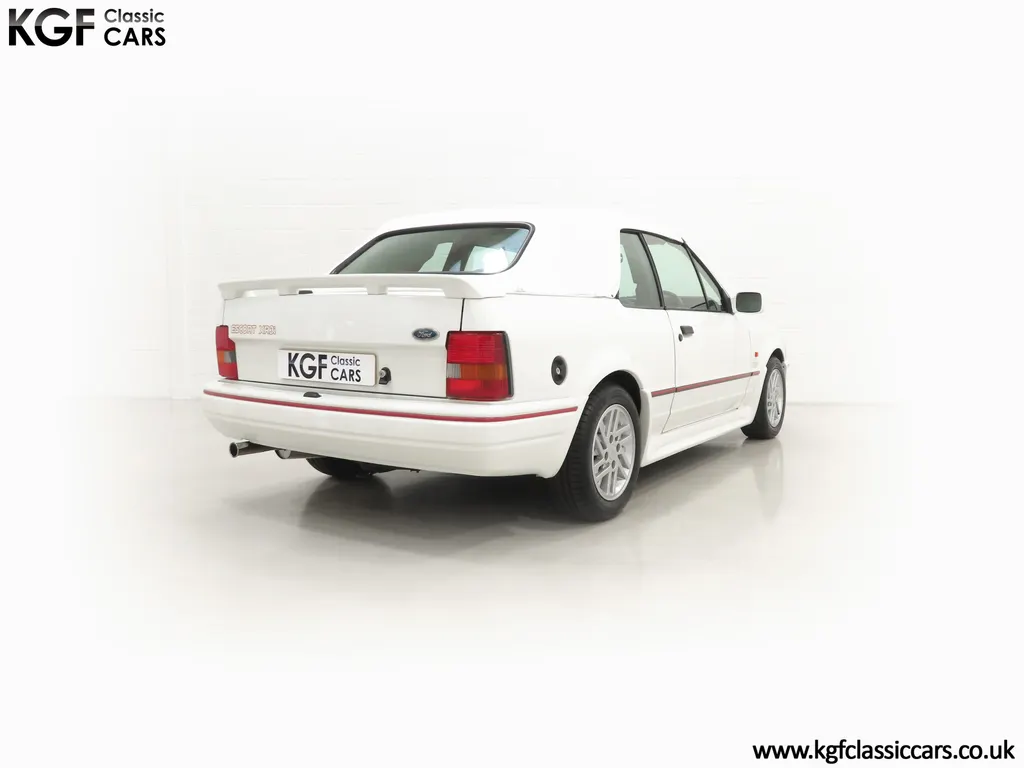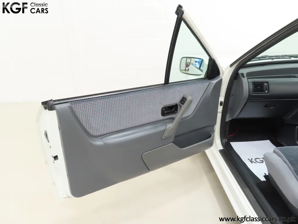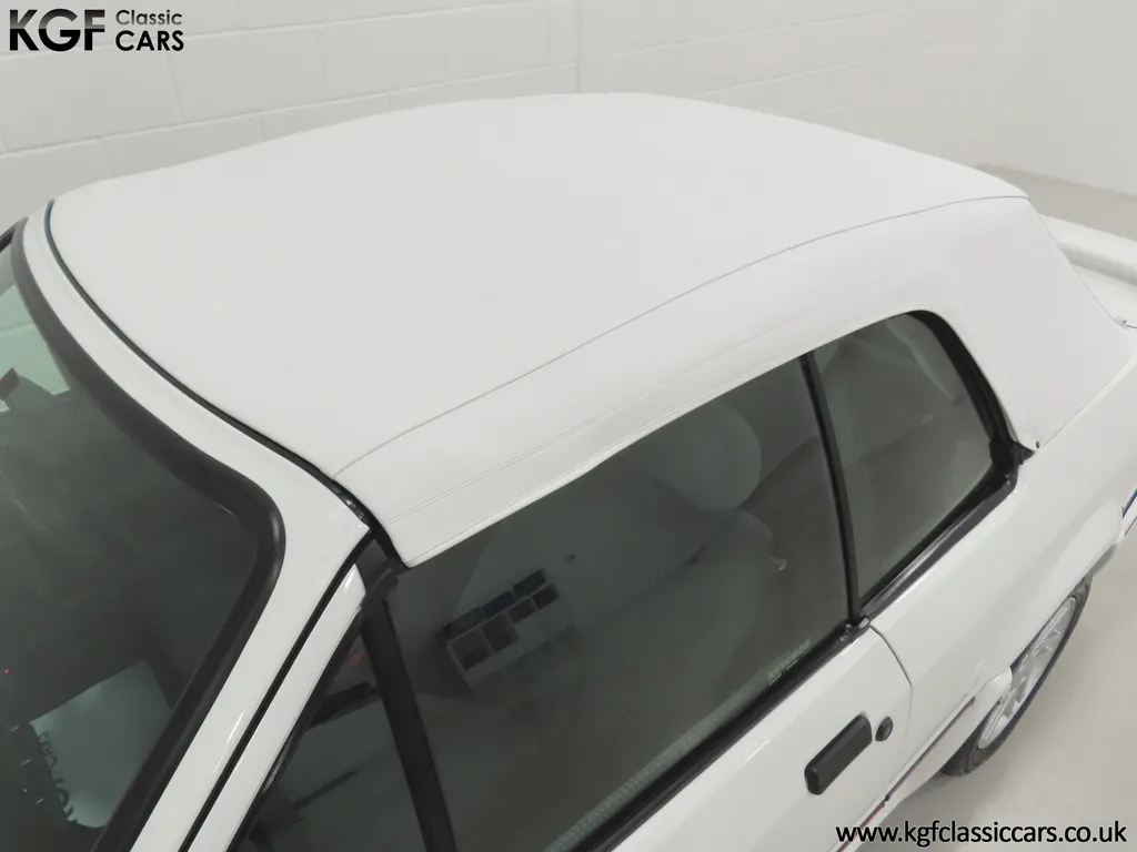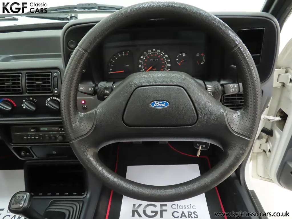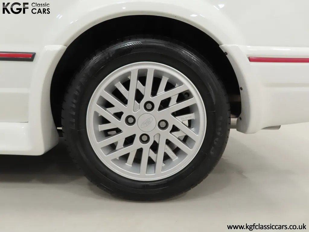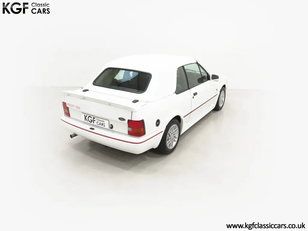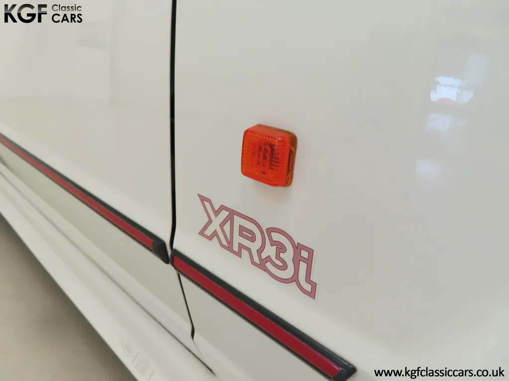 FOR SALE A retro icon Ford Escort XR3i Cabriolet 90-Spec with humongous history. EQUIPMENT 90-Spec body-coloured bumpers with protective red inserts, front spoiler, body-coloured door mirrors, driving lamps, white fast folding fully insulated vinyl roof with heated glass window, white hood cover, integral black roll bar, Quickclear heated front screen, electrically controlled and heated door mirrors, folding rear seats, lockable glovebox, wind-down rear quarter windows, cigar lighter, quartz digital clock, tachometer, Ford Model 2005 radio/cassette with anti-theft coding, four speakers and electric aerial. Factory Options: Alloy wheels size 6 x 14in. Dealer Options: Genuine RS Bodykit with side skirts and rear spoiler. Accessories: Toad CAT 1 alarm with microwave sensor, carpet mats, driving lamp covers. EXTERIOR This deliciously retro XR3i Cabriolet represents an original and unspoilt example of Fords iconic soft-top. Finished in striking Diamond White, (Code BK3), the paintwork boasts a fabulous uniform finish that clearly shows just how much the car has been cherished. All body panels are factory fitment with clearly defined inner wings stamps and the bodywork and shut lines are beautifully straight. Light touched in marks are visible upon close inspection but are entirely forgiven on such an original example as are the slightly faded XR3i decals. The Ford RS bodykit was fitted from new with RS logos clearly visible and the underside is remarkably well preserved. The white soft-top roof is beautifully clean, remains perfect in condition, fit and operation. The matching colour keyed hood cover for use when the hood is lowered is present and spotless. Factory Sigla glass and Ford light clusters remain fitted. INTERIOR A fun and practical option of retro soft-top motoring with space for five and a generous boot! The supportive sports seats trimmed with Zolda fabric in Shadow colour scheme, (Code LU), are in good condition with some very small holes to each front seat, barely noticeable. Door card shrinkage and scratched inner door handles are very common for the model, yet thankfully, there is only minor evidence on this example. The soft top headlining is very clean with no stains, rips or loose material and the heated rear glass screen free from scratches. The dashboard and switchgear are in superb order and all functions and controls operate including the standard Ford 2005 radio/cassette with electric aerial and the roof mounted digital clock. ENGINE & TRANSMISSION A delightfully crisp, responsive and free-revving 1.6 OHC (CVH) engine features electronic fuel injection with Ford’s own EEC IV engine management system (as fitted to later cars replacing the Bosch system). This increased power by 3bhp to give 108bhp to achieve an improved top speed of 116mph and 0-60mph in 9.7 seconds. The engine bay presentation is excellent with original factory stickers, labels and plates intact even on the slam panel! The car performs brilliantly and an expensive stainless steel exhaust replicating the original to give the characteristic rasp! The five-speed gearbox is light and precise and aids the enthusiastic driving XR owners are known for! WHEELS, TYRES & BRAKES Optional extra alloy wheels size 6 x 14in are in pristine condition and are shod in matching branded Goodyear Efficient Grip tyres covering little over 1,000 miles since being fitted in 2022. Stored inside the spare wheel is the original jack. The diagonally split dual-line servo assisted brakes stop the car straight and steady. HISTORY FILE Date of registration of this late 90 Spec example was the 4th July 1991 by Ford Main Dealer, Central Motor Company (Leicester) Ltd. Ownership of the car has been traced right back and the previous owner bought the car in 2016, the lady keeper prior to him having owned the car for around 20 years. The history file is humongous and dates back to when the car was new with masses of paperwork including MOT records dating back to the first in 1994. There are also service book records since the first service carried out in late 1991. Part of the impressive vehicle history is that the car was featured with the previous owner in the April 2018 issue of ClassicFord magazine whereby a prime example was required for a four-page ‘Buying Tips’ article. This very car was used in the feature and several copies of the magazine are in the folder. All handbooks are included as well as both seats of keys with alarm fobs and a Ford range brochure from 1990. In November 2025, the car was serviced and the cambelt and water pump were replaced. Now offered for sale due to the fastidious owner downsizing his collection of classic 1980’s cars, motorbikes and iconic memorabilia such as an unused Sinclair C5! Look no further for a beautifully cherished unspoilt example ready to use and impress at classic car shows and retro outings! MOT December 2026, HPI clear.